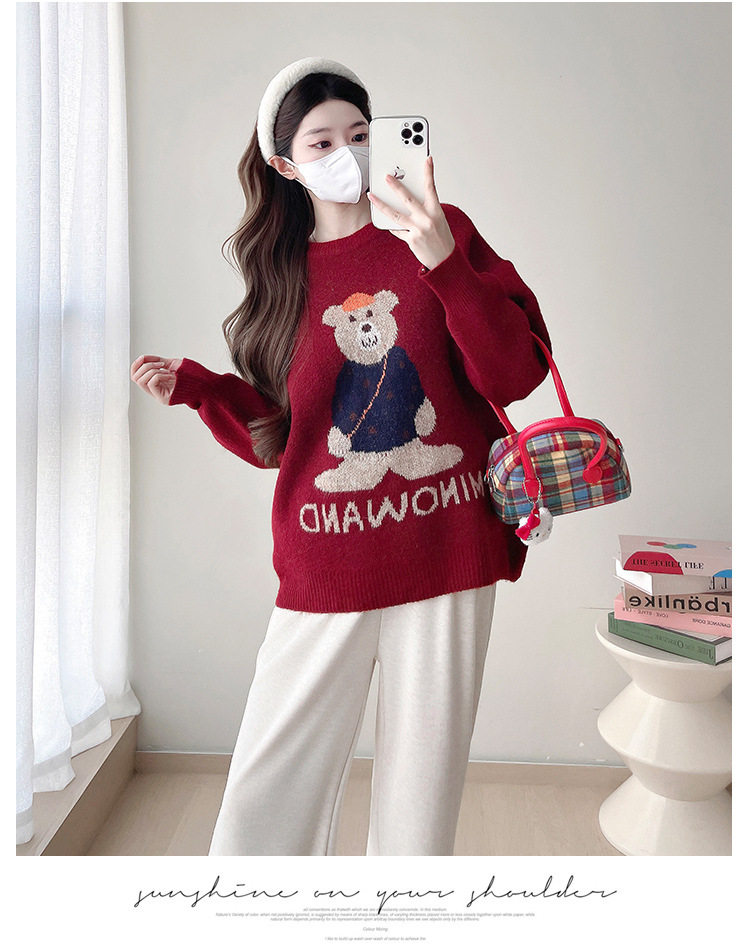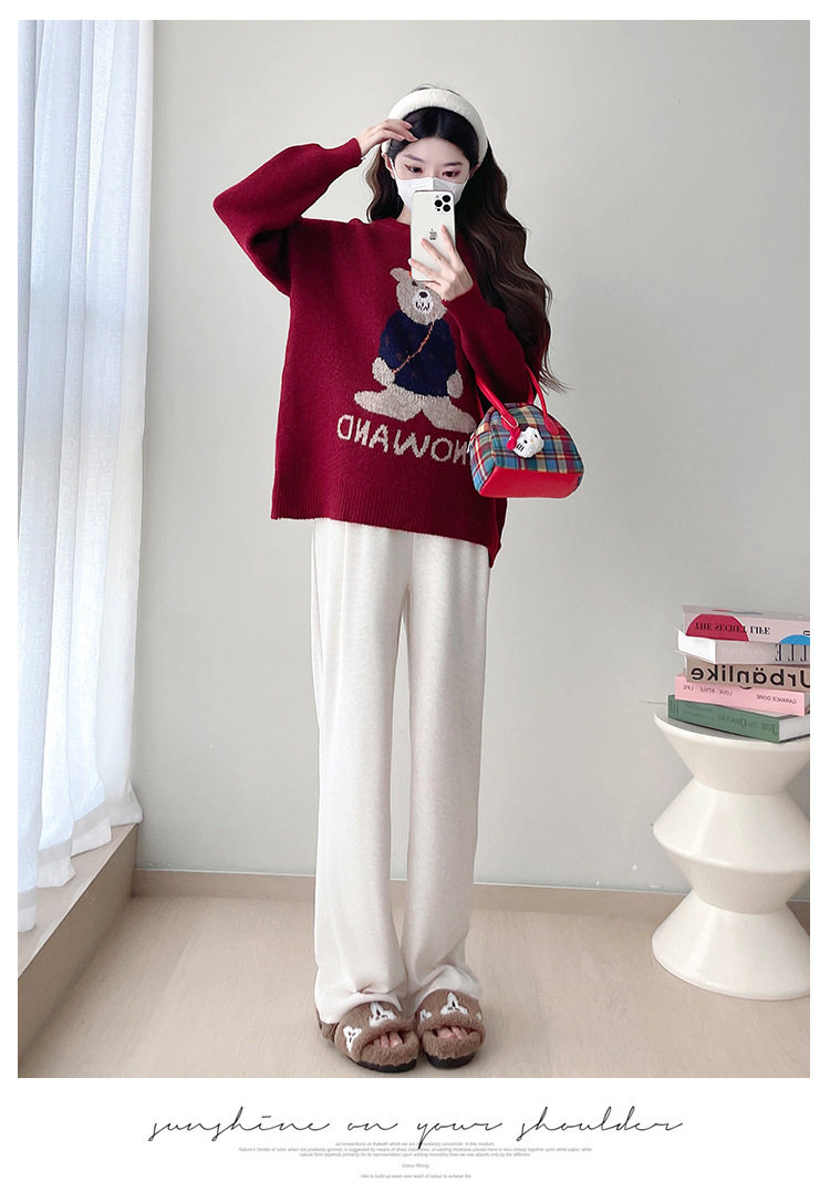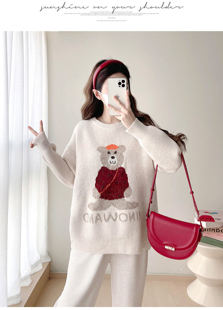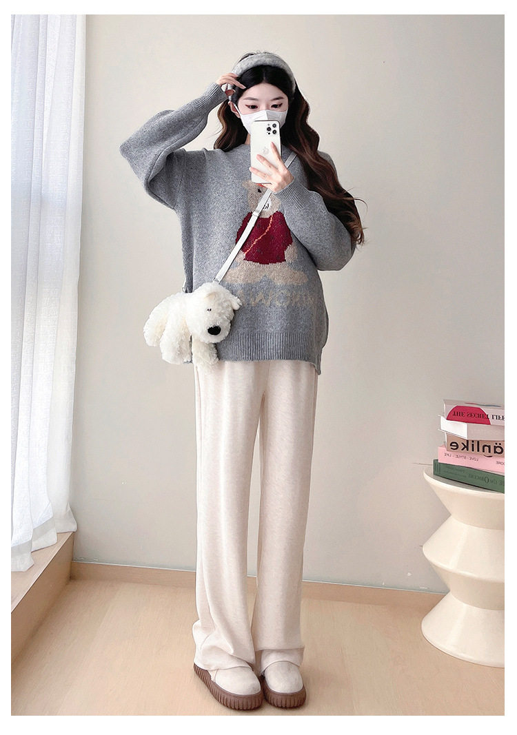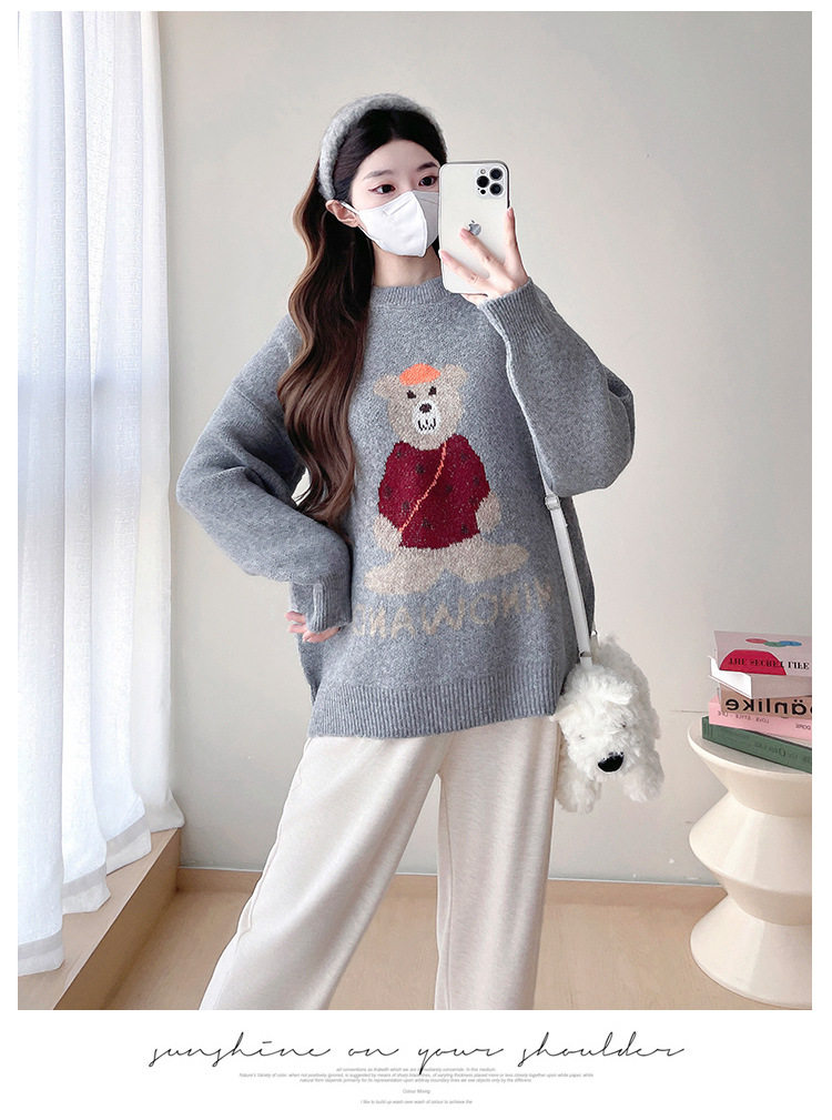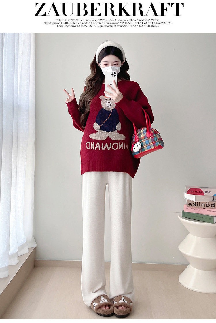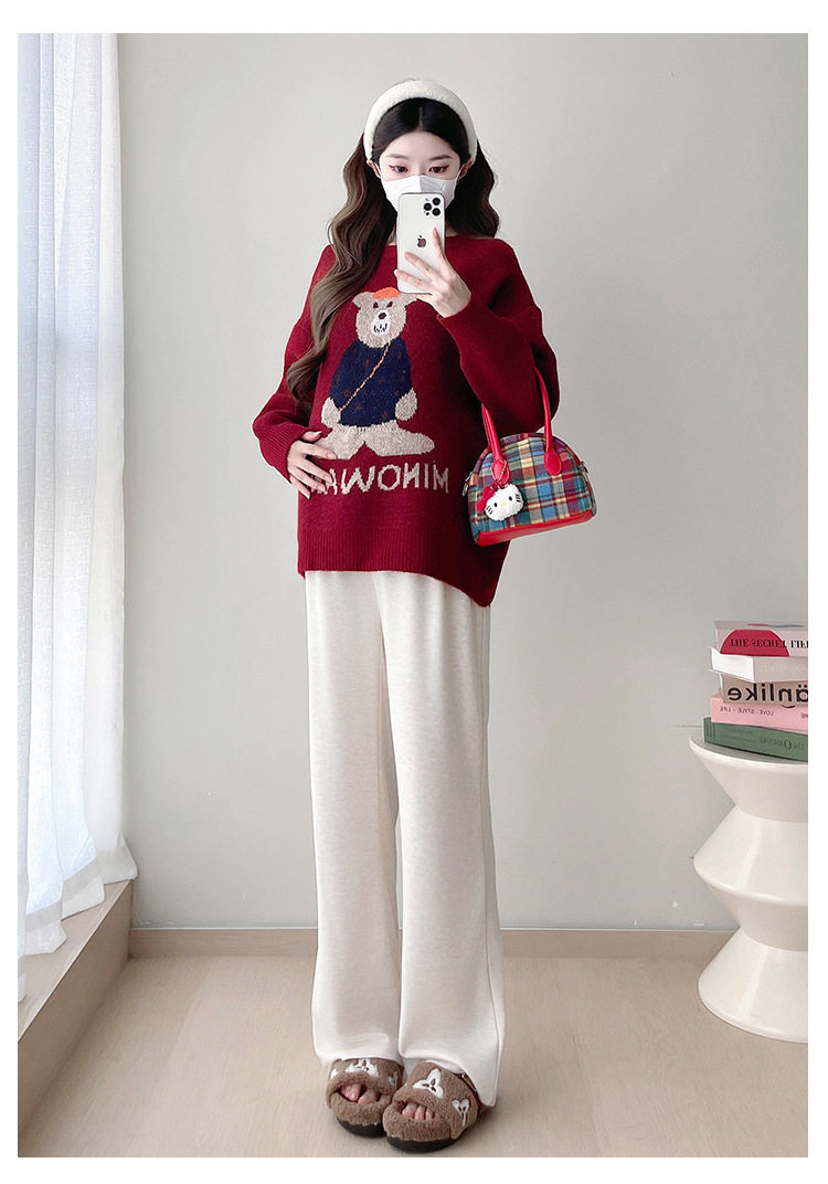 Pregnant Women's Autumn and Winter Sweater suit 2024 New Bear Thickened Loose All-match Knitted Shirt Casual Two-piece Set
