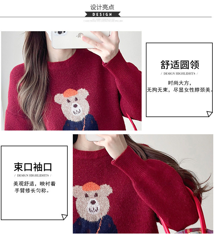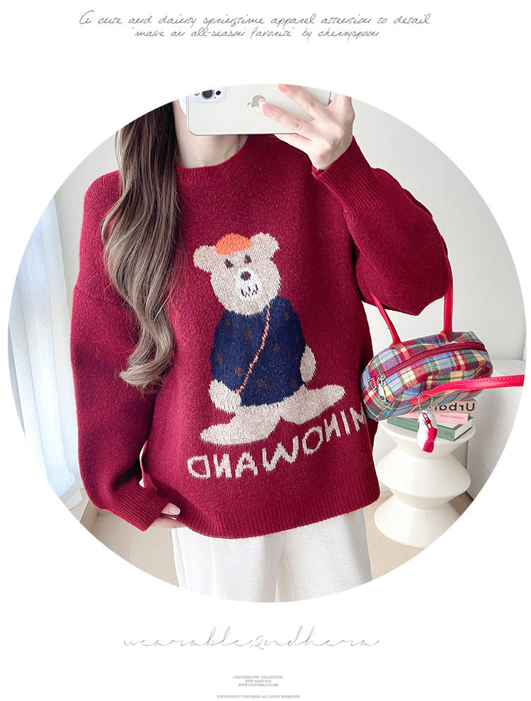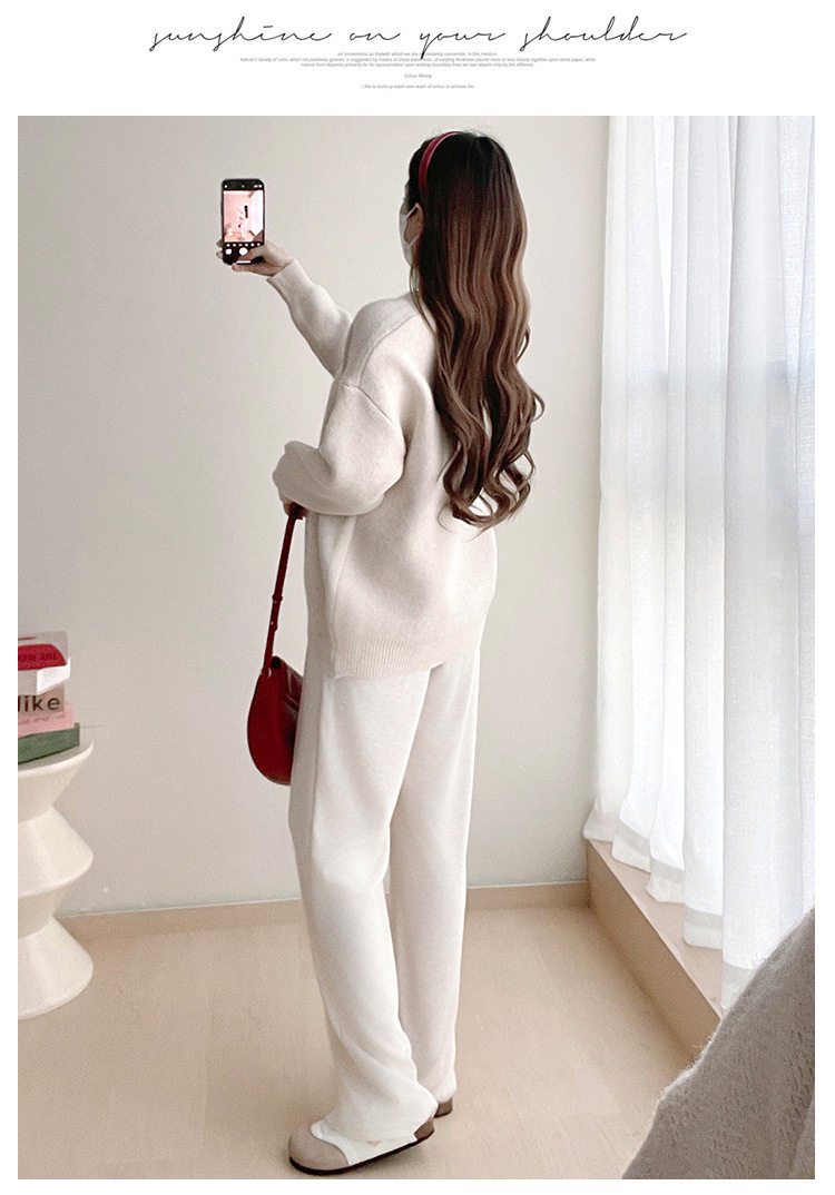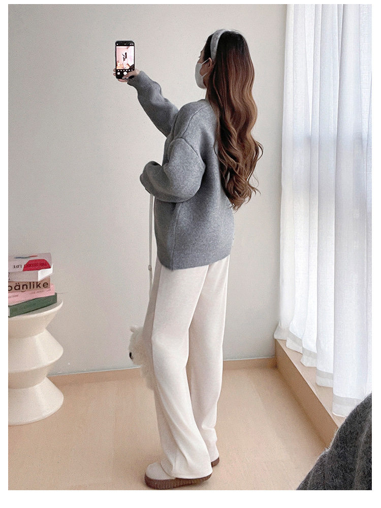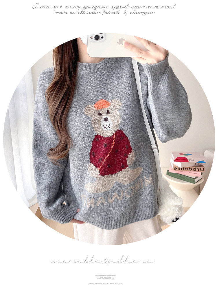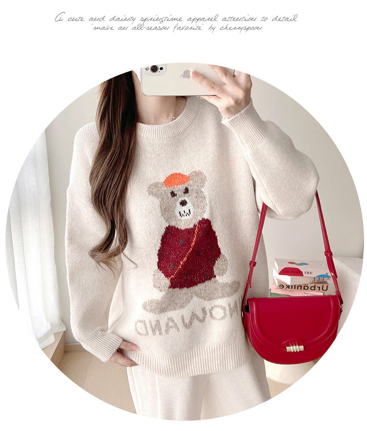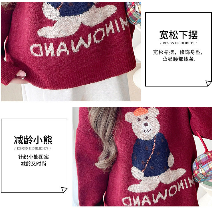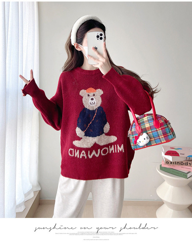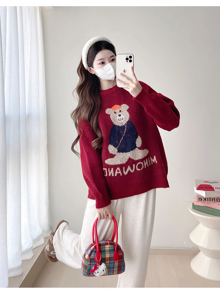 Pregnant Women's Autumn and Winter Sweater suit 2024 New Bear Thickened Loose All-match Knitted Shirt Casual Two-piece Set