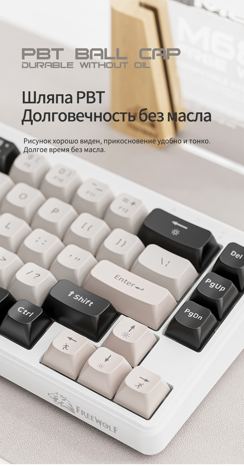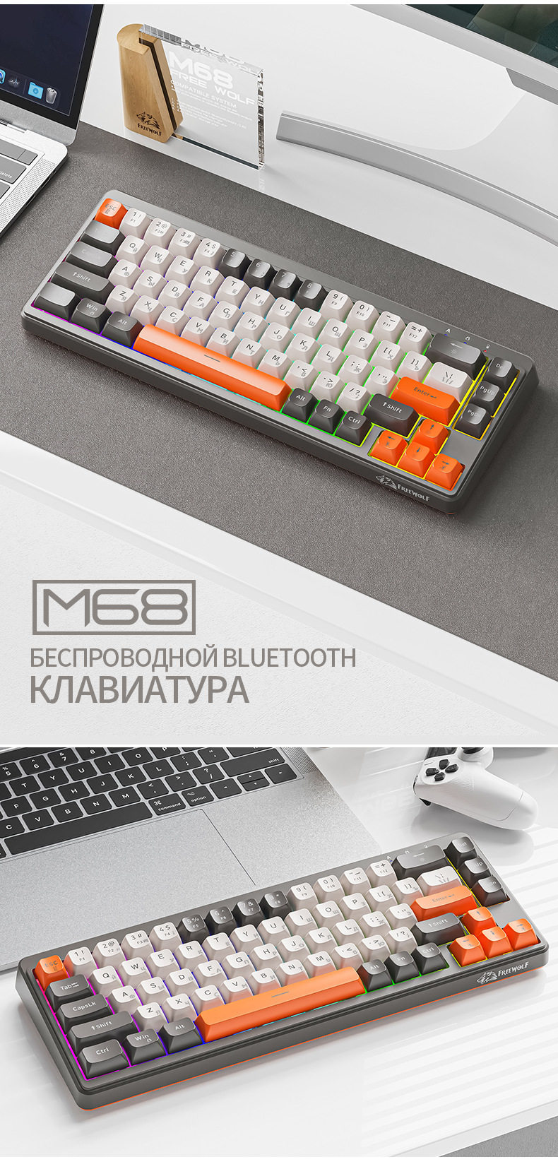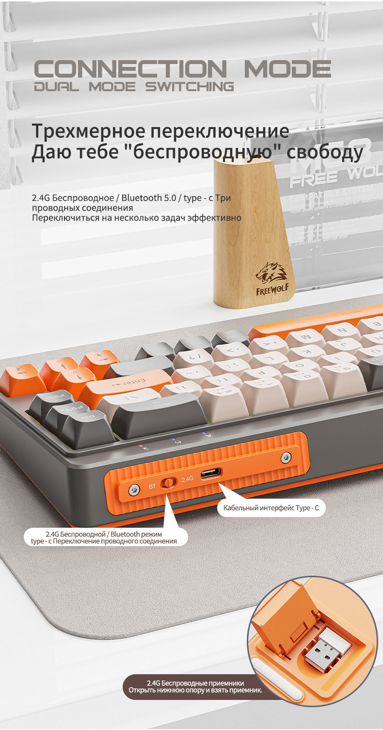 Free Wolf M68 Russian Wireless Bluetooth Three-Mode Mechanical Feel Russian Keyboard Game Silent Russian