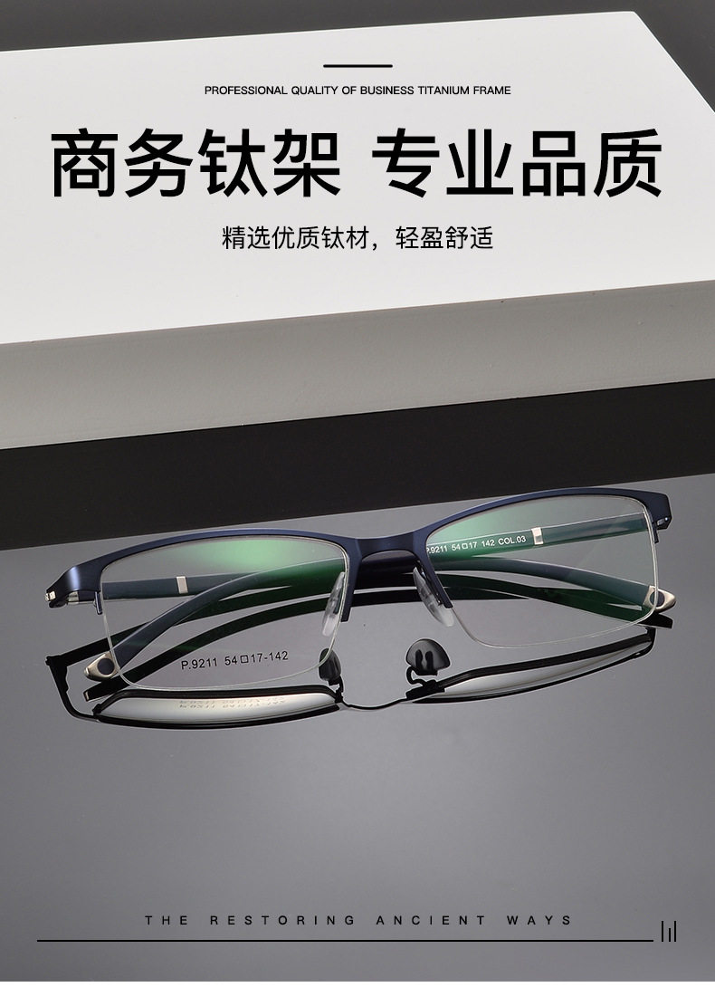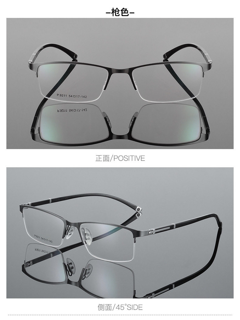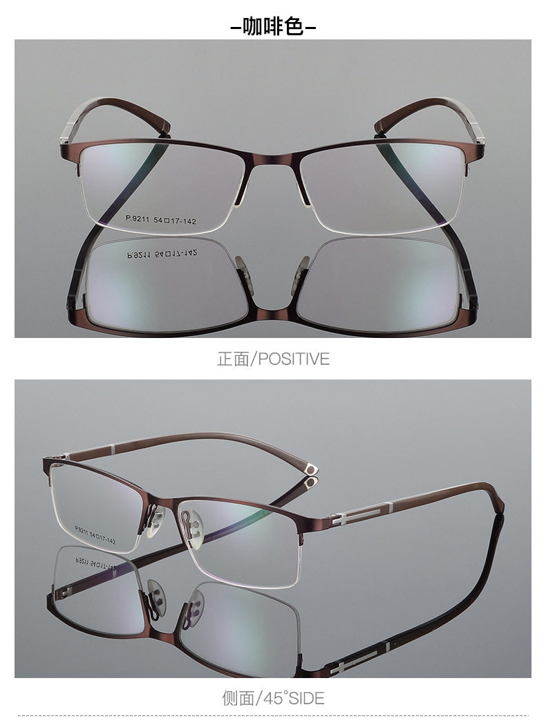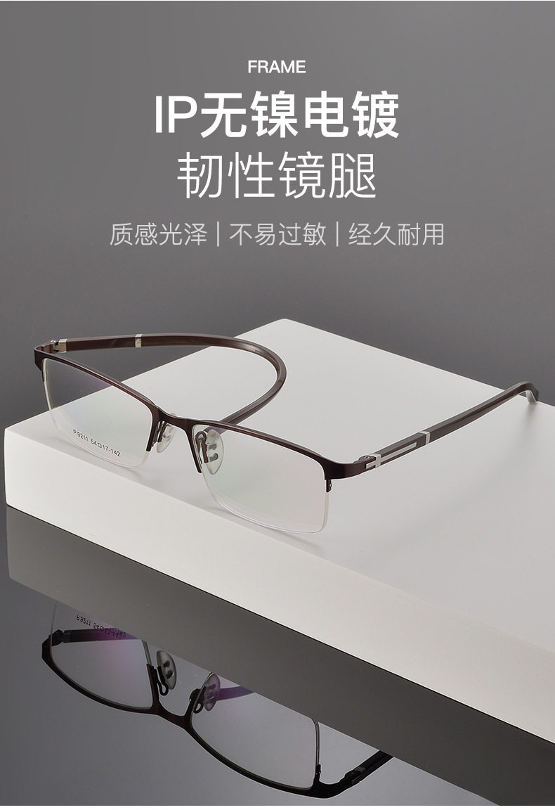 Porsche Business Half Frame Glasses Frame Men's Glasses Frame Titanium Alloy Myopia Glasses Men's Metal Frame Men's