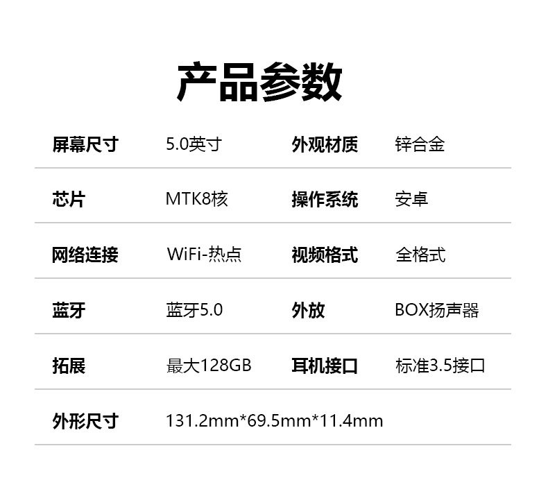 | Packing list | Host, headphones, data cables, silicone sleeves |