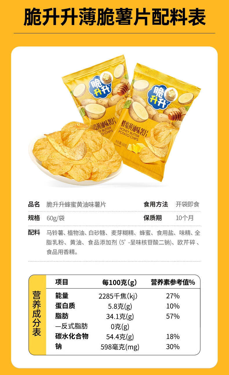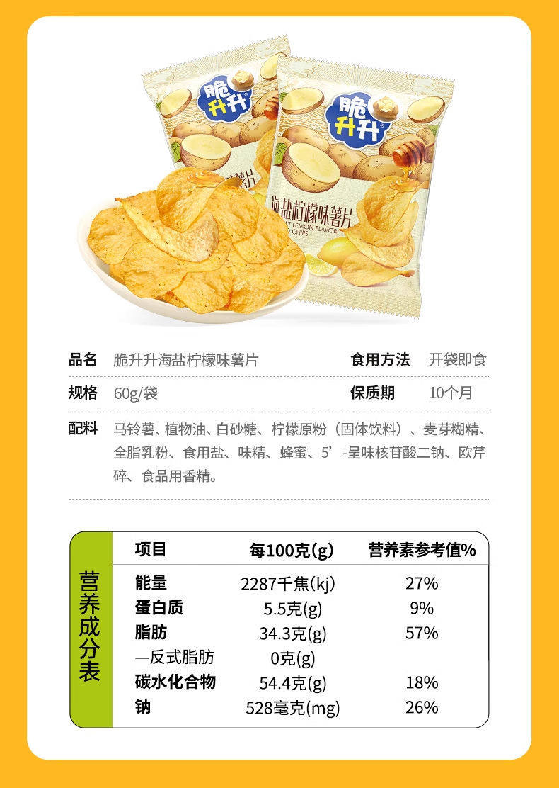 Crispy Crispy Potato Chips 60g Honey Butter Sea Salt Lemon Flavor Leisure Puffed Food Wholesale