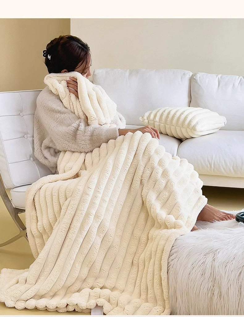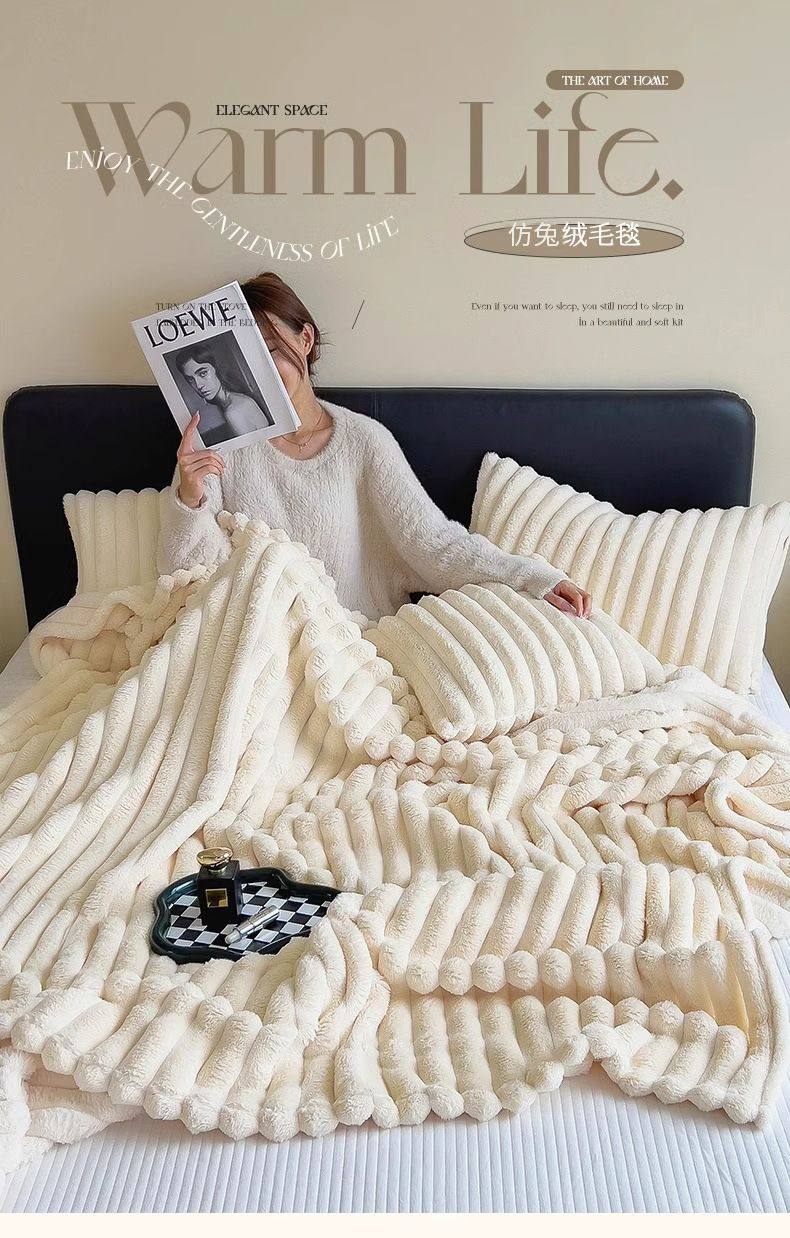 Cross-border Thickened Imitation Rabbit Fleece Blanket High Weight Flannel Warm Blanket Milk Fleece Blanket Nap Blanket Gift Blanket