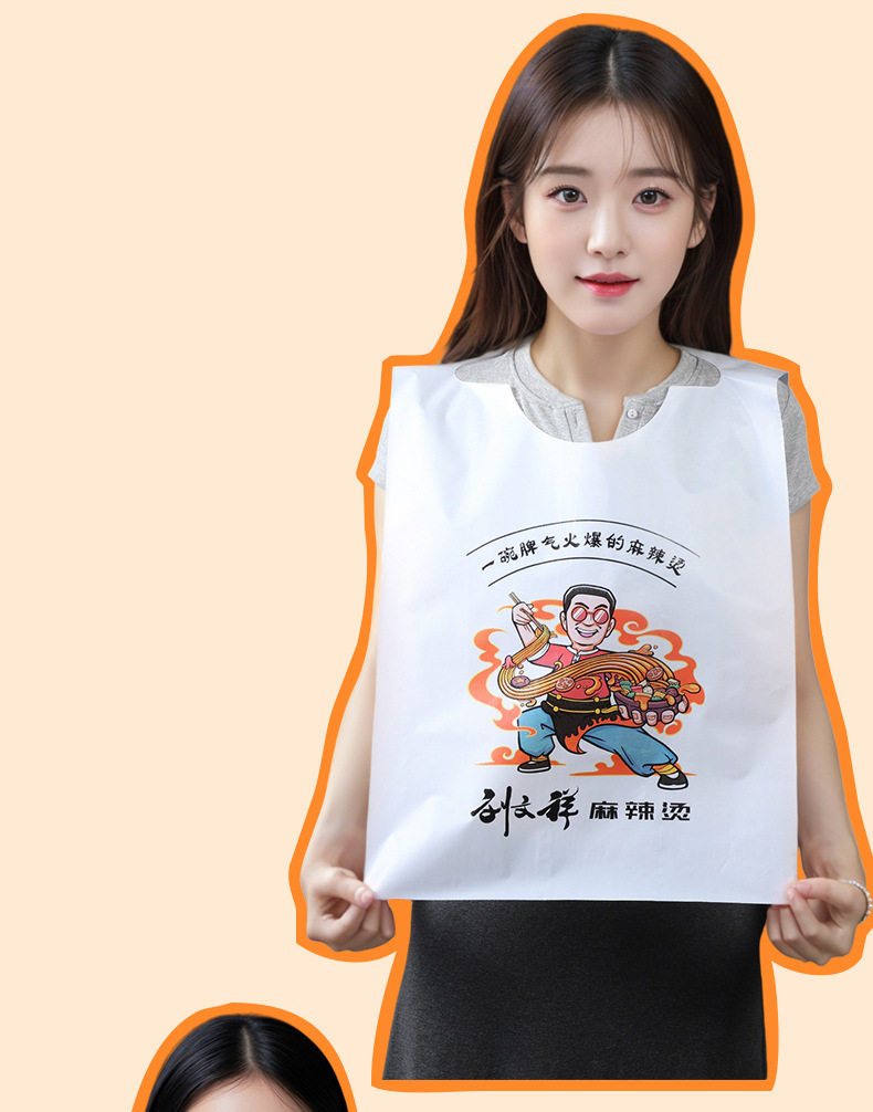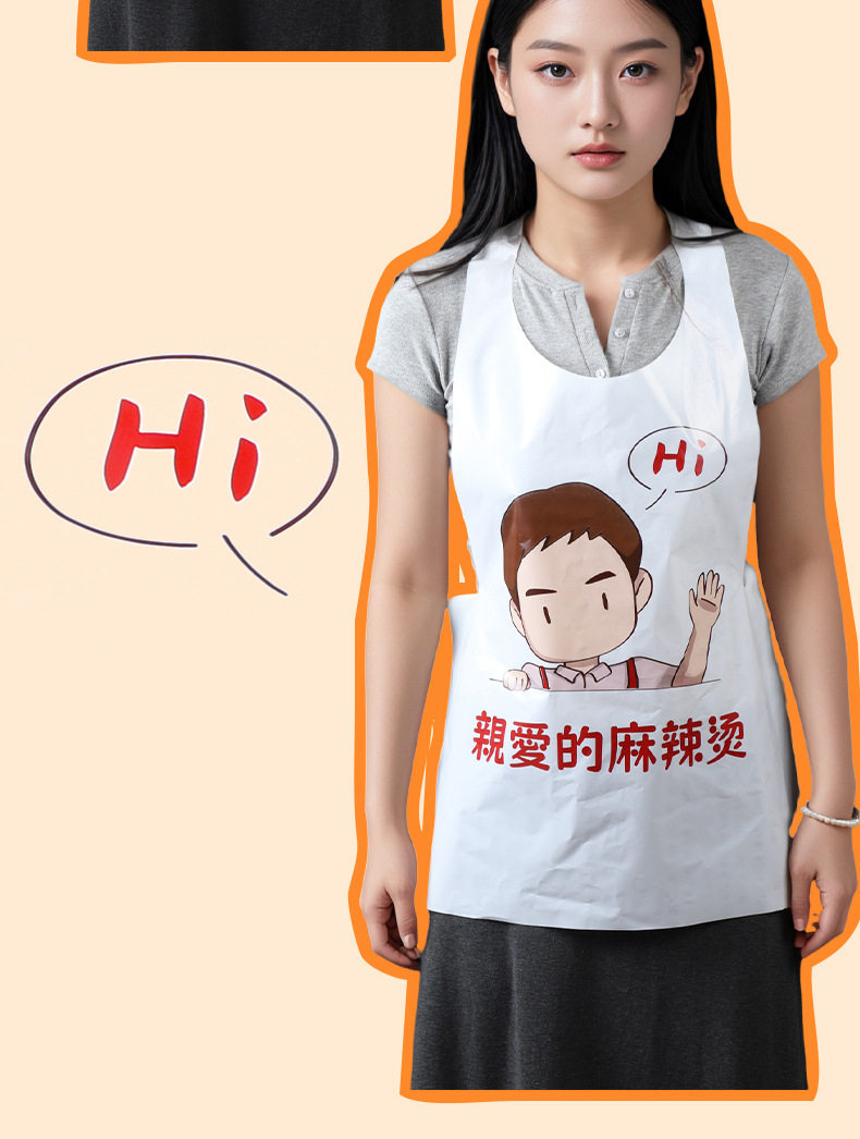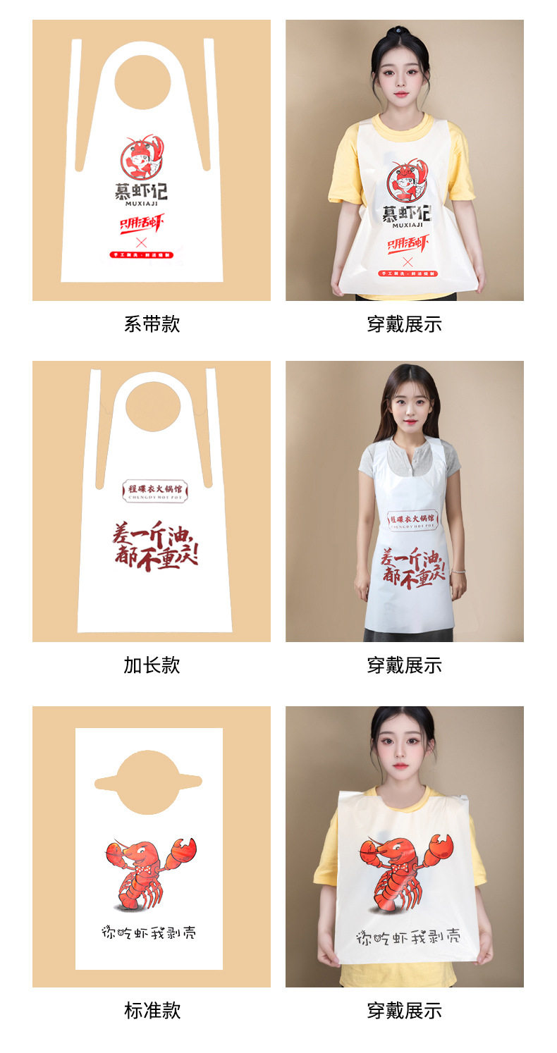 Customized Disposable Apron for Guest Catering Hot Pot Restaurant Takeaway Crayfish Oil-Proof and Waterproof Painting Plastic Apron