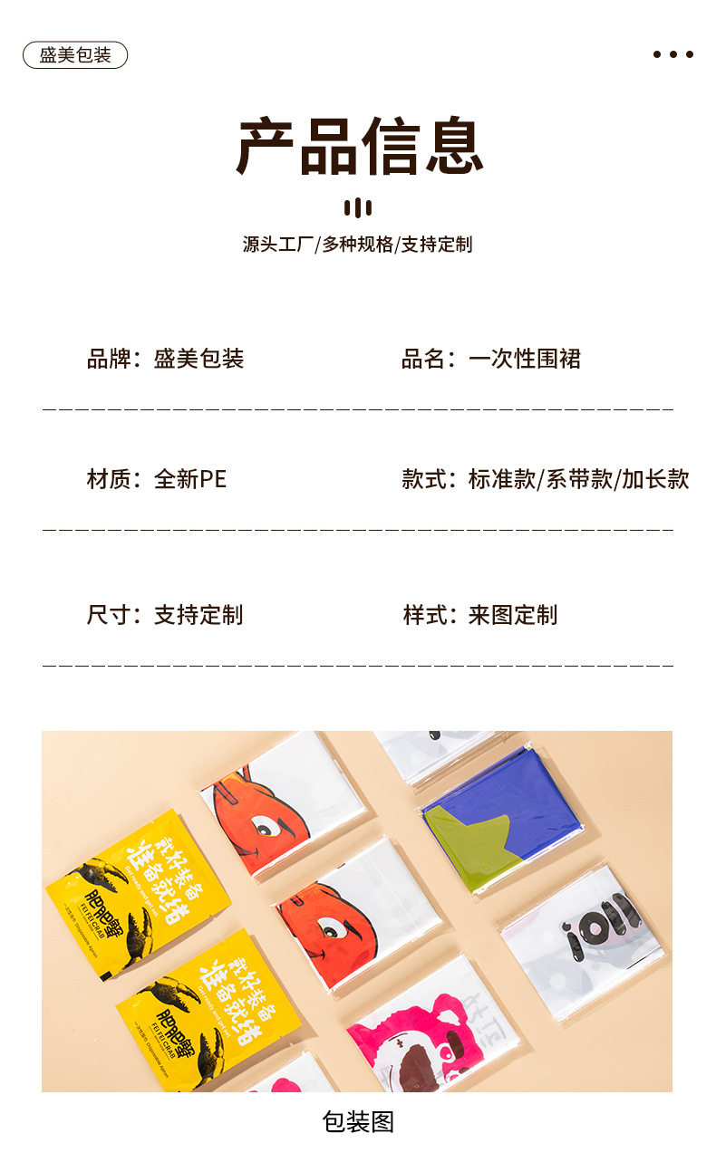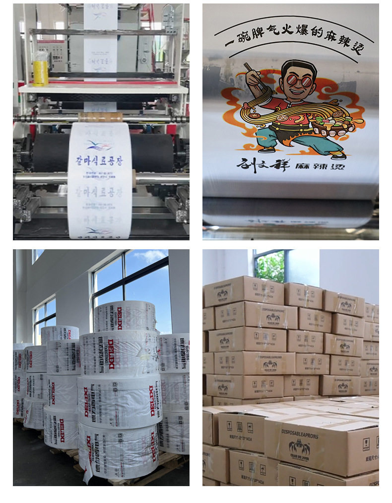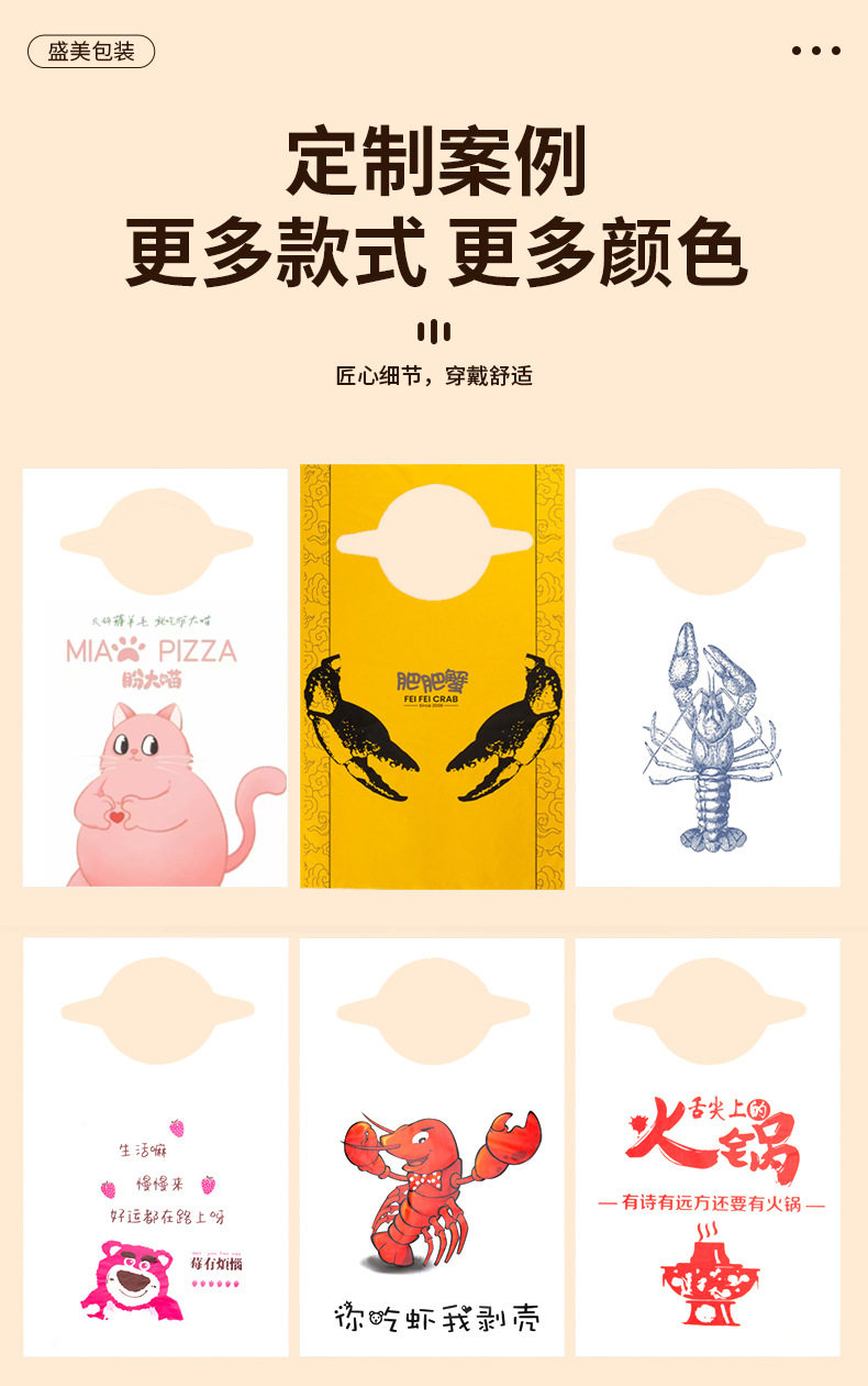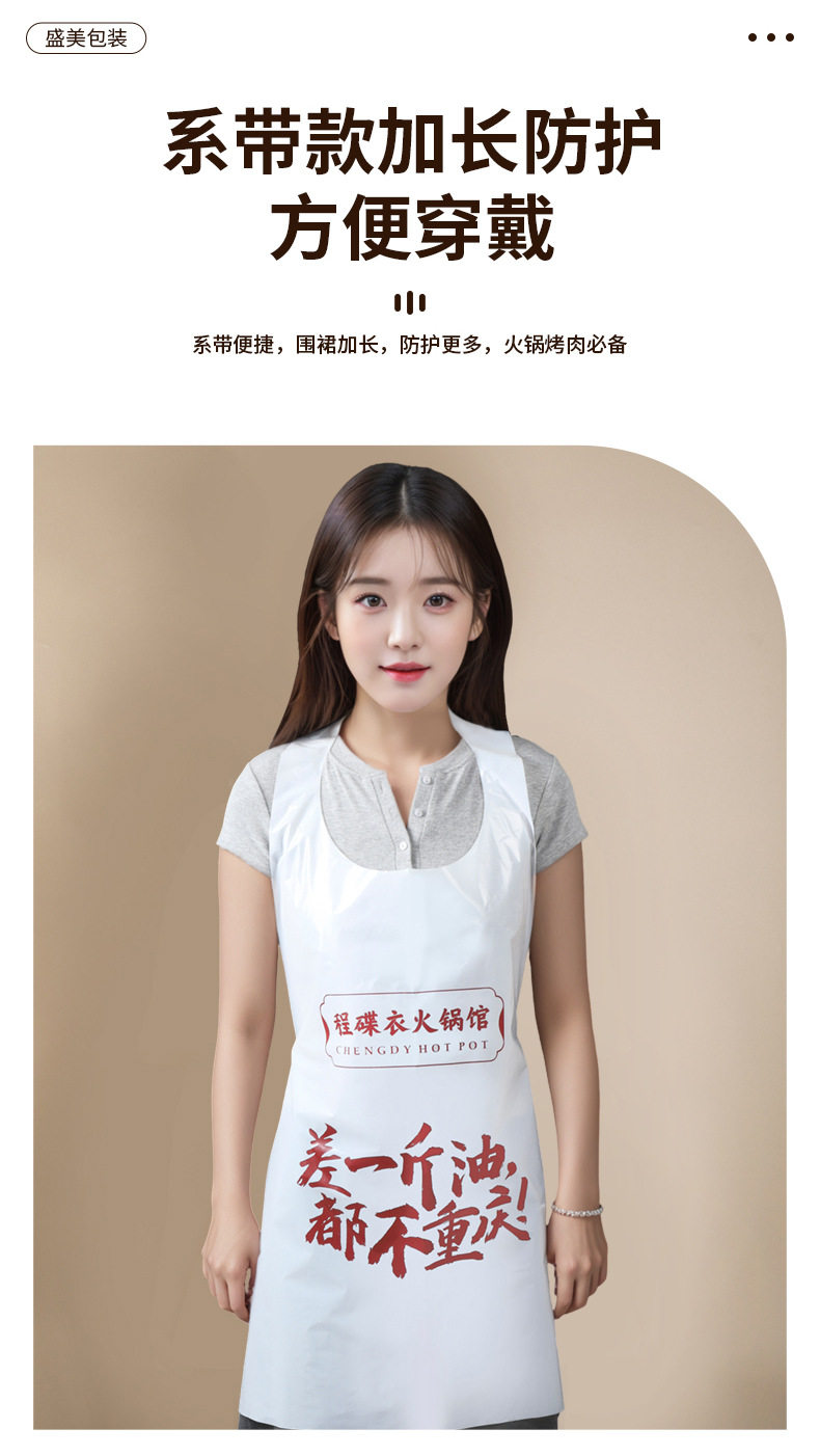 Customized Disposable Apron for Guest Catering Hot Pot Restaurant Takeaway Crayfish Oil-Proof and Waterproof Painting Plastic Apron