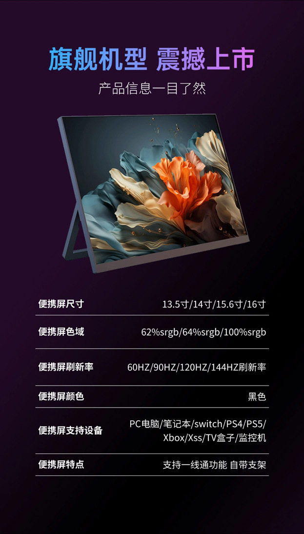16-inch portable display 4K ultra-clear notebook computer external sub-screen PS4/PS5 expansion convenient sub-screen