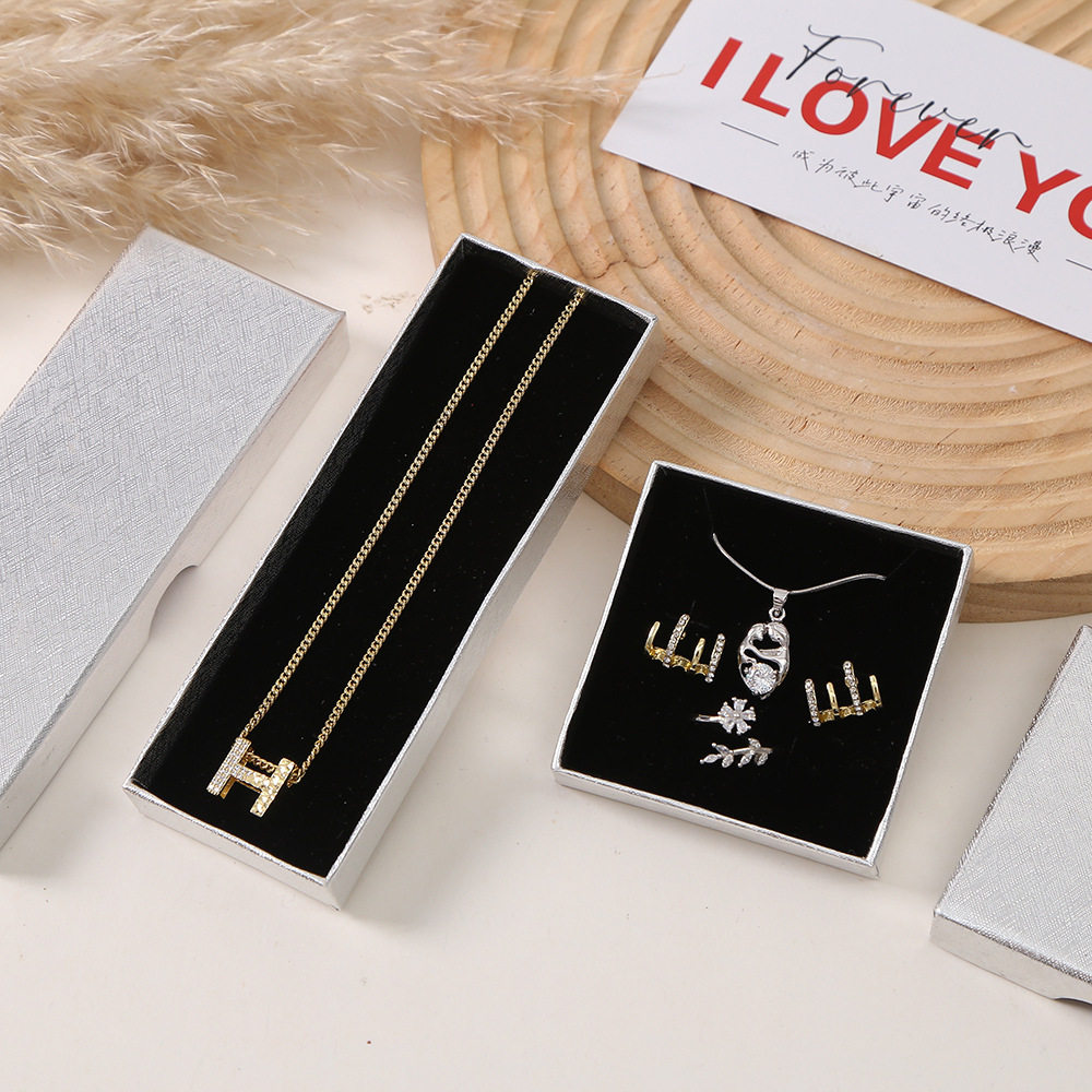 Cross-Border Thin Jewelry Box with Lid, Patterned Ring Packaging Box, Bracelet, Paper Gift Box 1.5cm