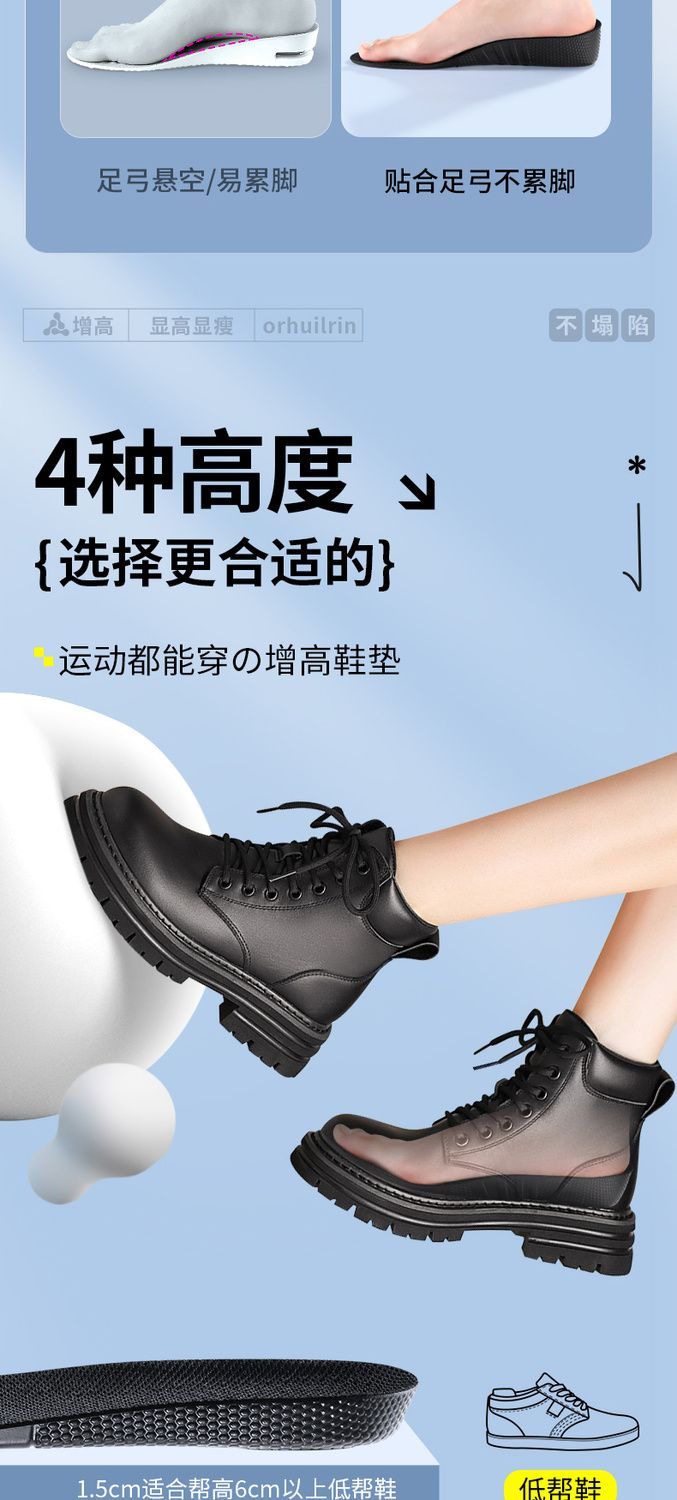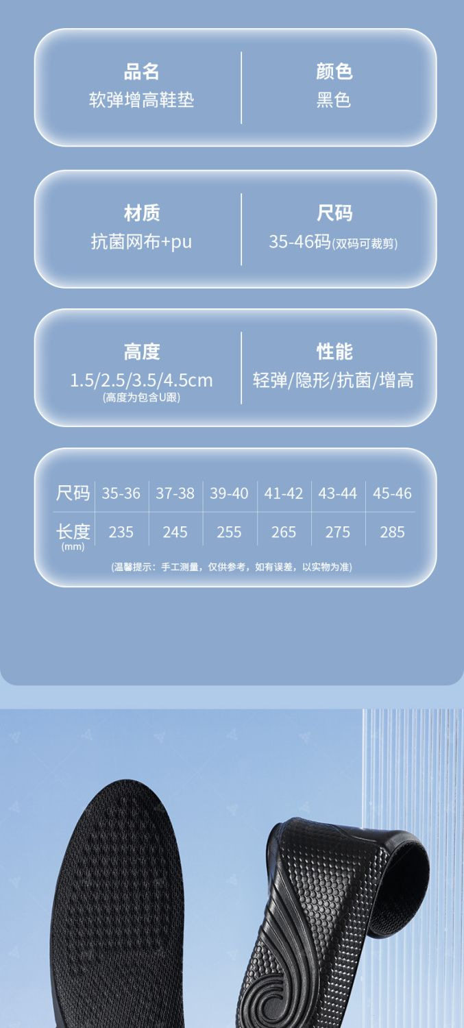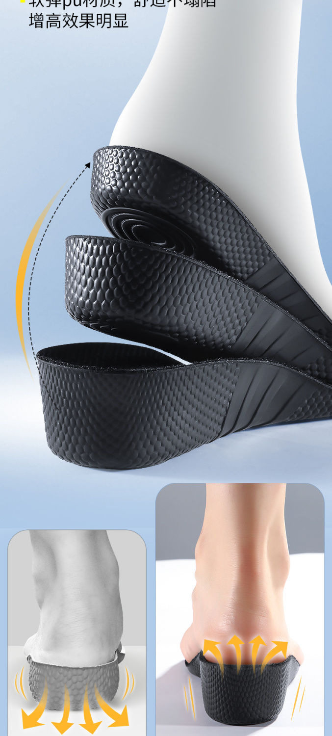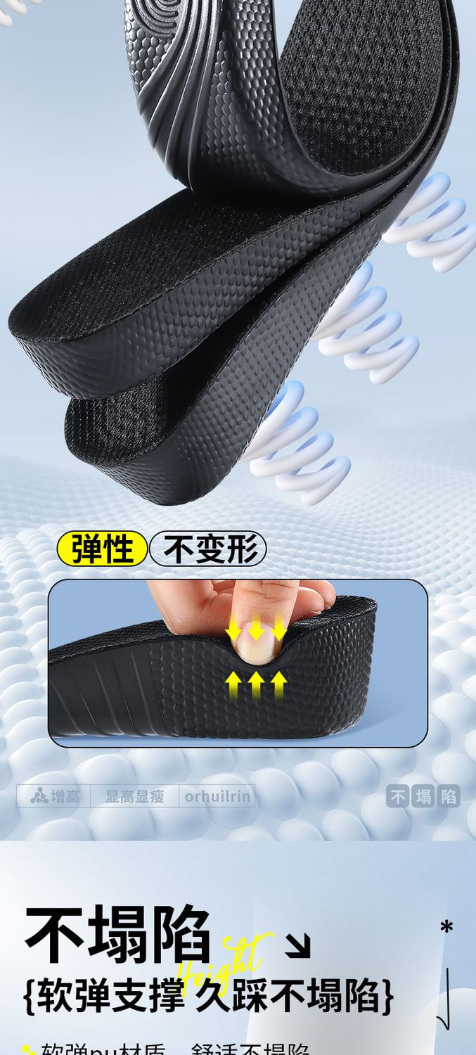 Pu Inner Height-Increasing Breathable and Comfortable Insoles for Men and Women's Martin Boots, Full Insole Height Increase of 2.5cm
