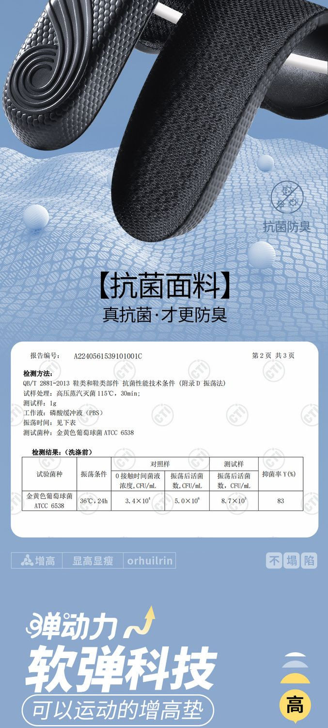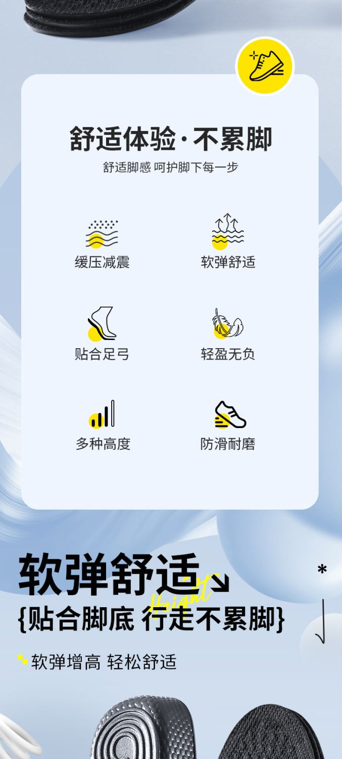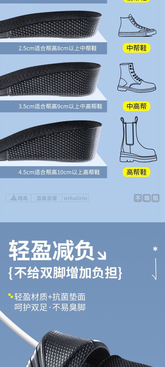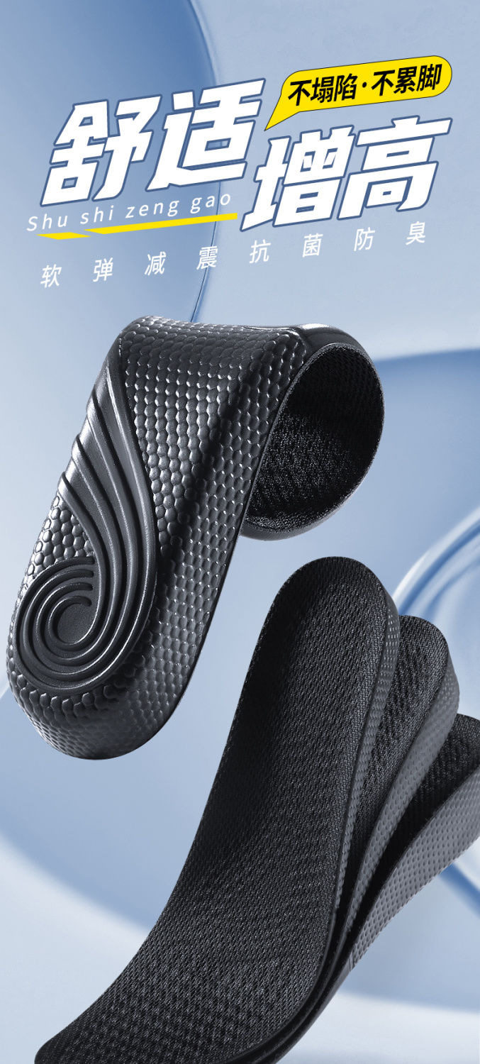 Pu Inner Height-Increasing Breathable and Comfortable Insoles for Men and Women's Martin Boots, Full Insole Height Increase of 2.5cm