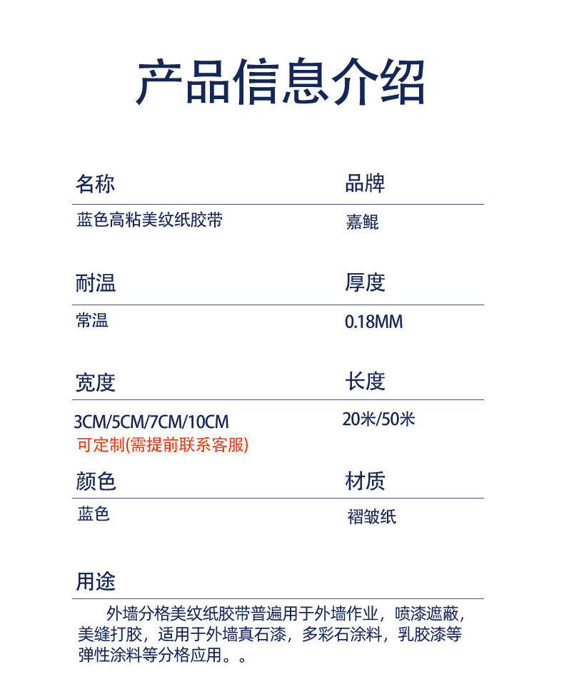 | Specification model | 5mm wide; 20m long,5mm wide; 50m long,8mm wide; 20m long,8mm wide; 50m long,10mm wide; 20m long,10mm wide; 50m long,12mm wide; 20m long,12mm wide; 50m long,15mm wide; 20m long,15mm wide; 50m long,18mm wide; 20m long,18mm wide; 50m long,20mm wide; 20m long,20mm wide; 50m long,24mm wide; 20m long,24mm wide; 50m long,30mm wide; 20m long,30mm wide; 50m long,30mm wide; 10m long,40mm wide; 20m long,40mm wide; 50m long,50mm wide; 20m long,50mm wide; 50m long |