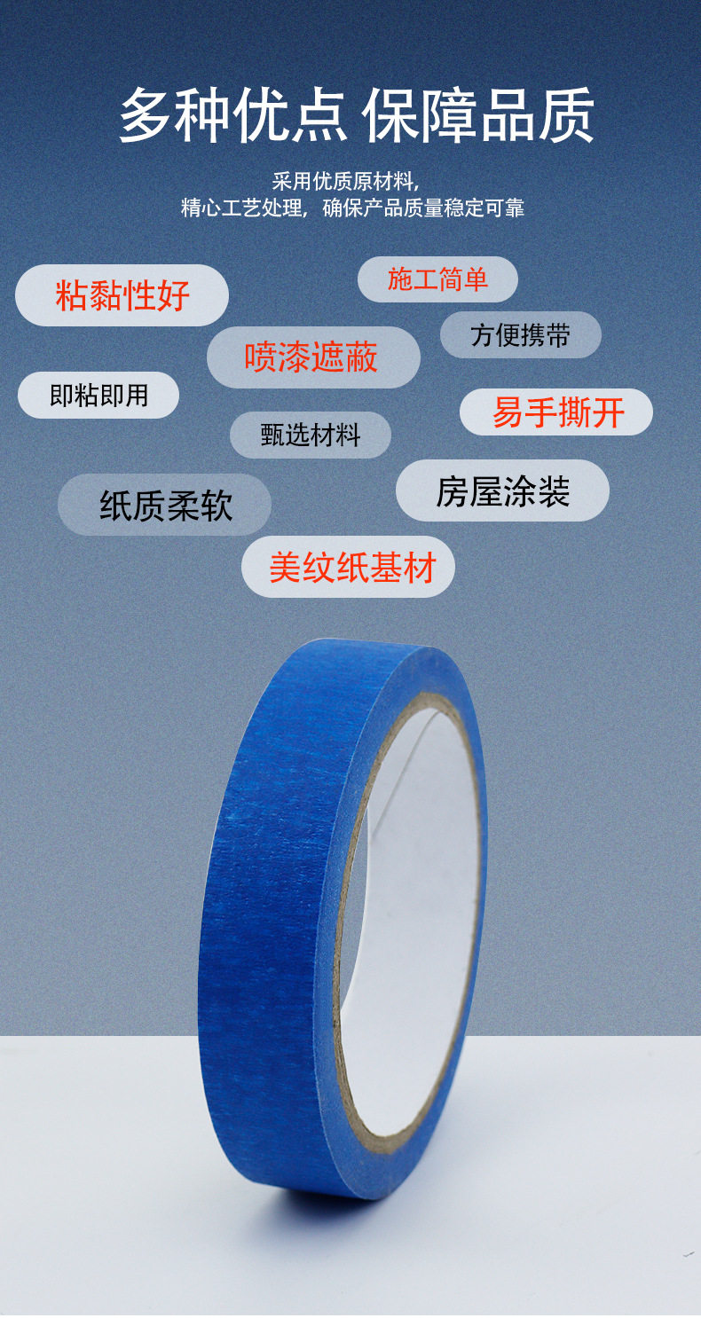 Blue masking paper tape wholesale does not leave glue high temperature resistant steam art oil painting adhesive paper masking decoration paint protection