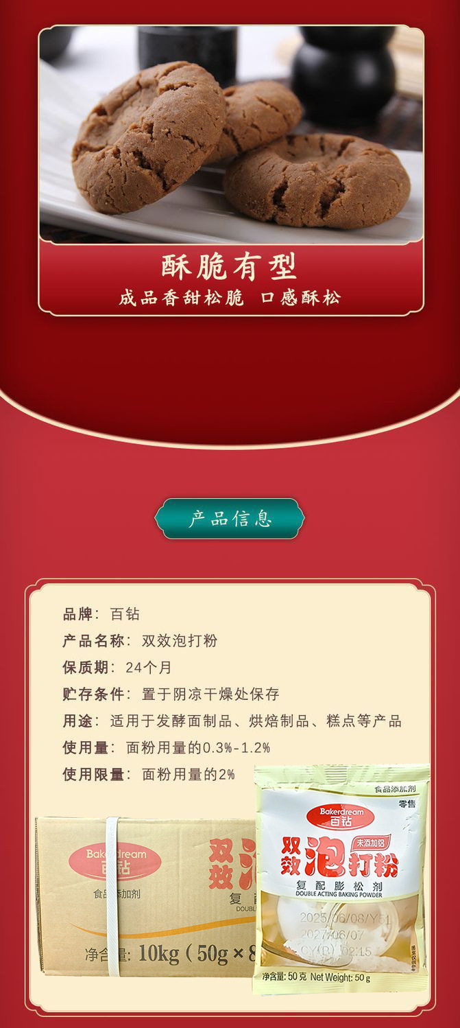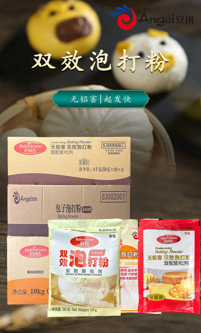 | Packaging specifications | Angel hundred diamond double effect baking powder 50g*20 bags,Angel hundred diamond double effect baking powder 50g*10 bags,Angel hundred diamond double effect baking powder 50g*5 bags |