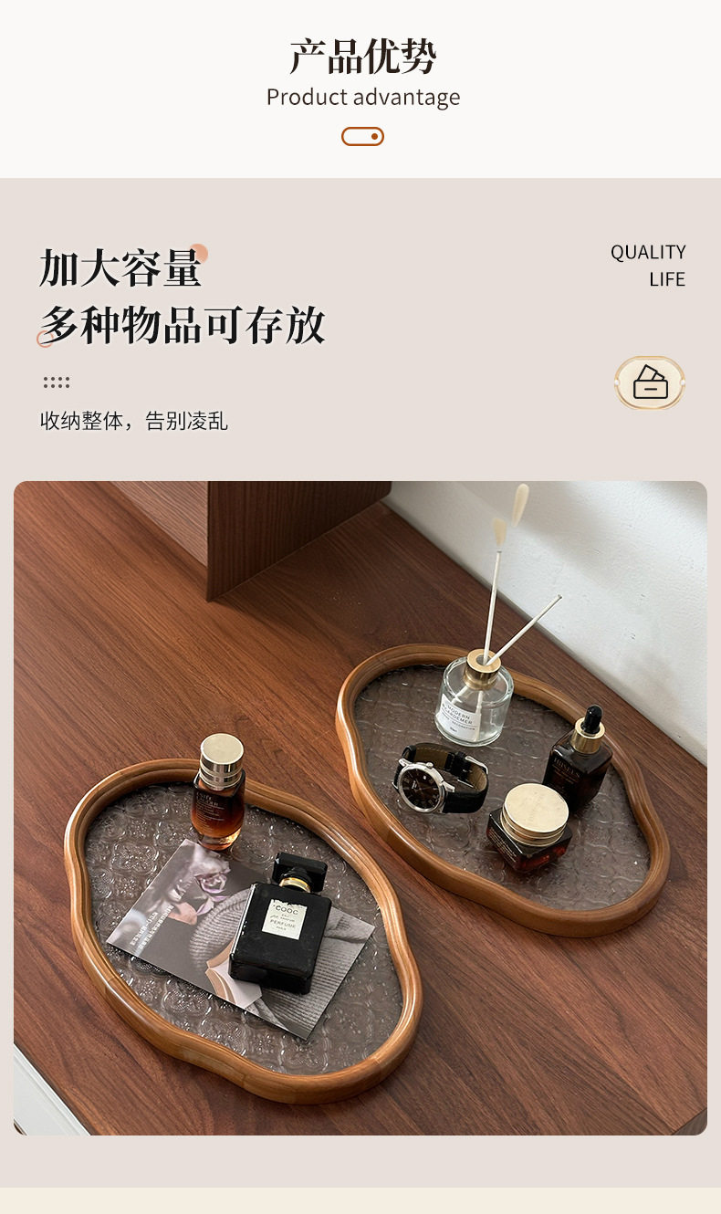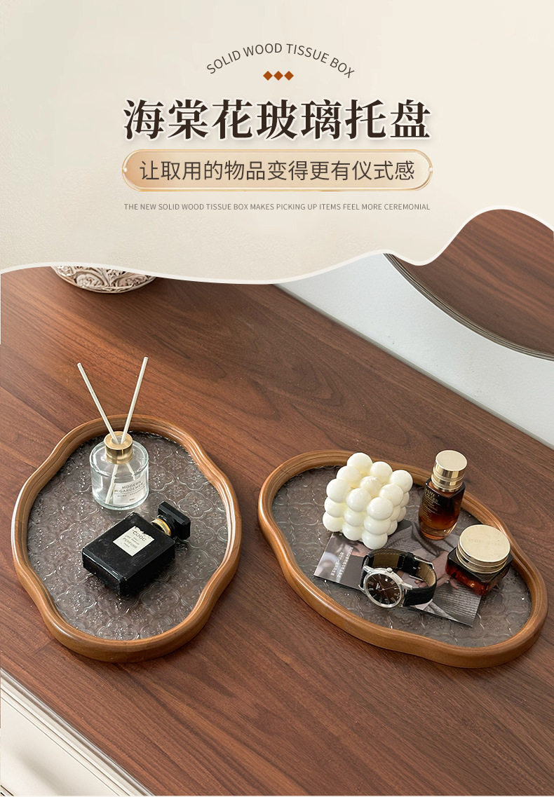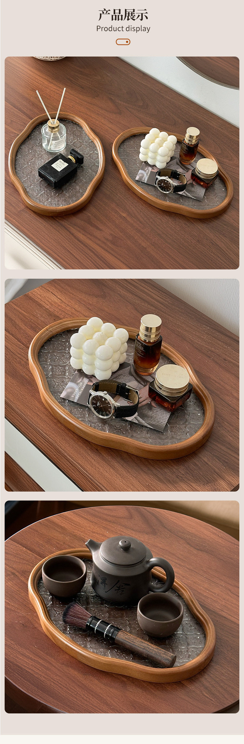 Tea Tray Desktop High-End Oval Begonia Glass Wine Glass Tea Water Play Fruit Tea Set Tray Chinese Snack Tray