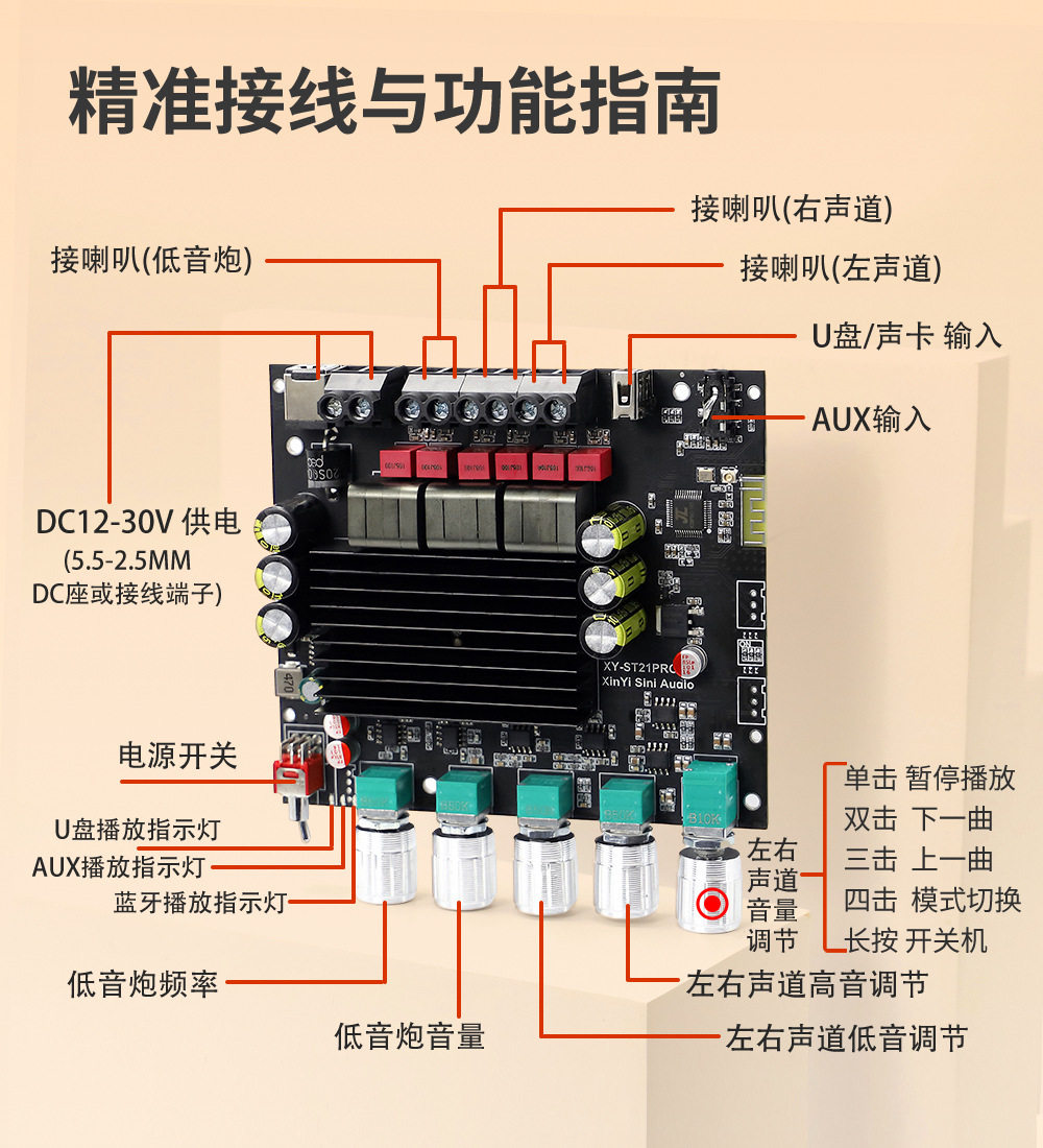ST21PRO Bluetooth Digital Power Amplifier Board 2.1 Channel 100W * 2 200W Subwoofer TPA3221 Super 3116