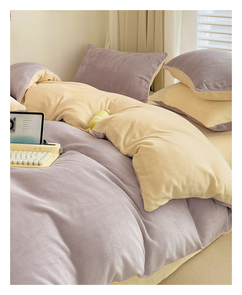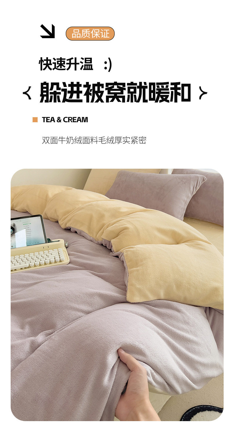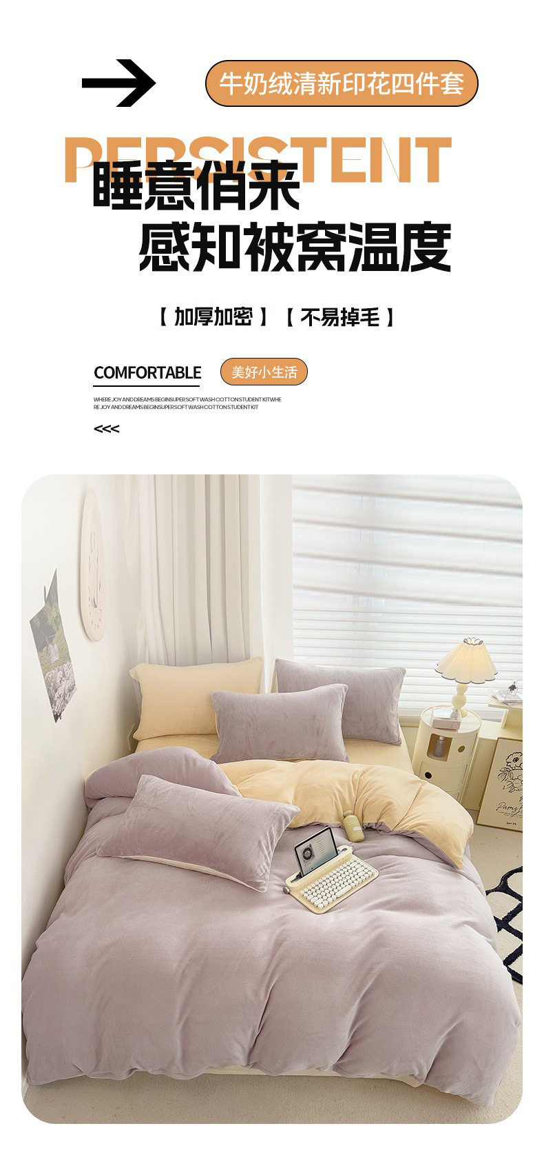High Weight Milk Velvet Four-piece Set fleece-lined Thickened Crystal Velvet Quilt Cover Student Dormitory Warm Velvet Bed Sheet Three-piece Set