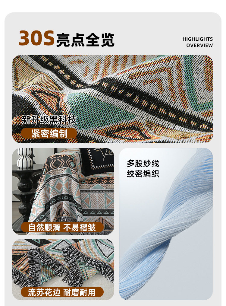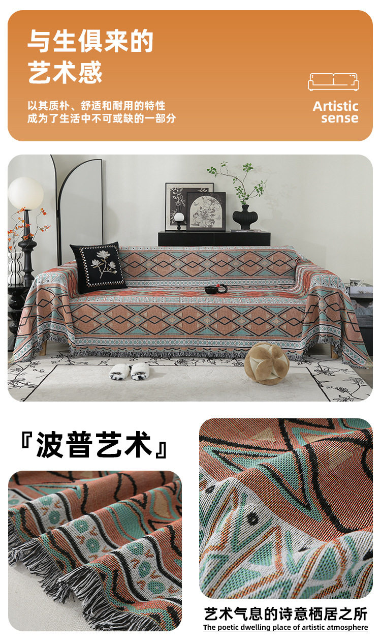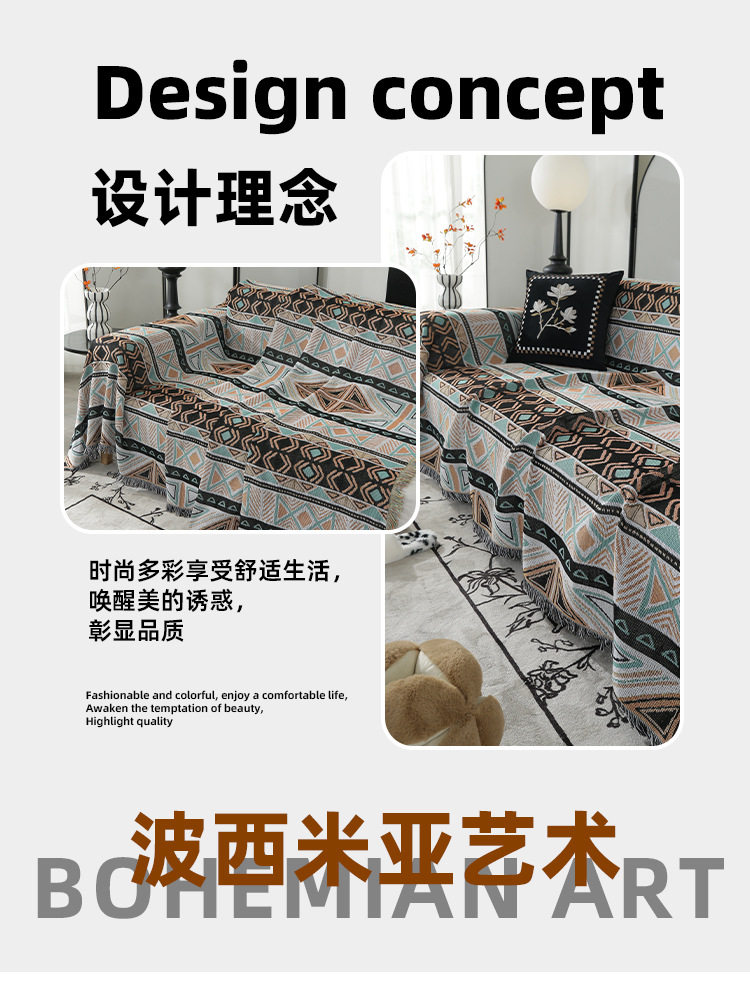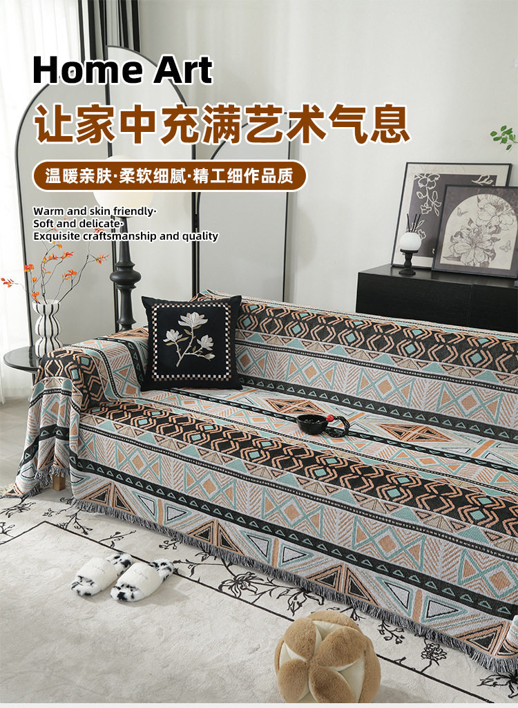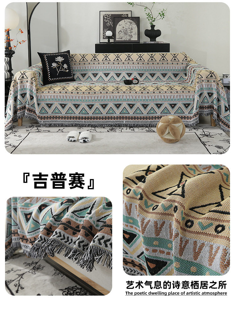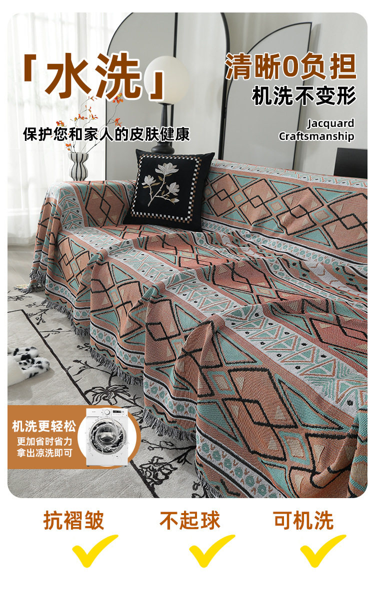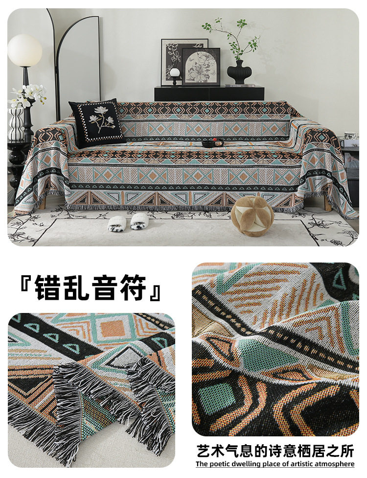 B&B Sofa Cover, Bohemian Sofa Cover, Full Cover, Suitable for All Seasons, Retro Thread Blanket, Anti-Cat Scratch Sofa Cushion