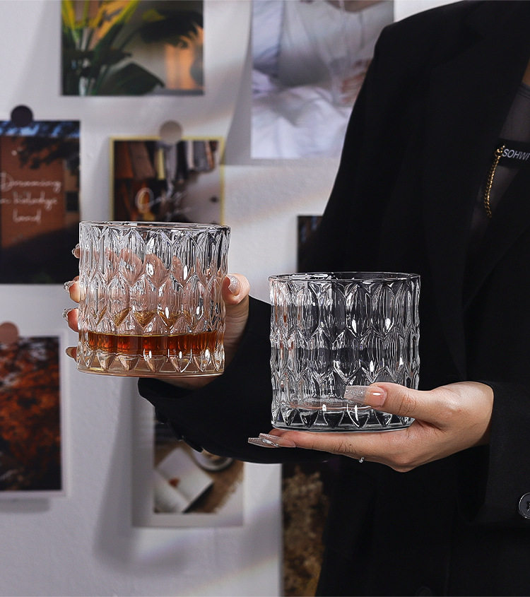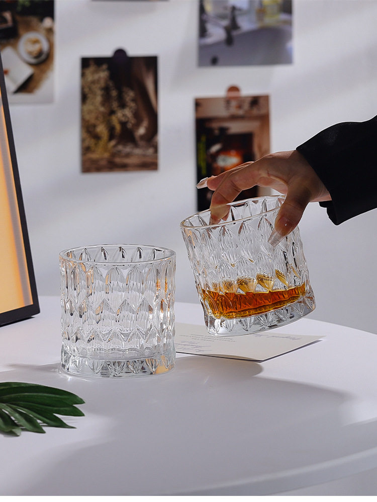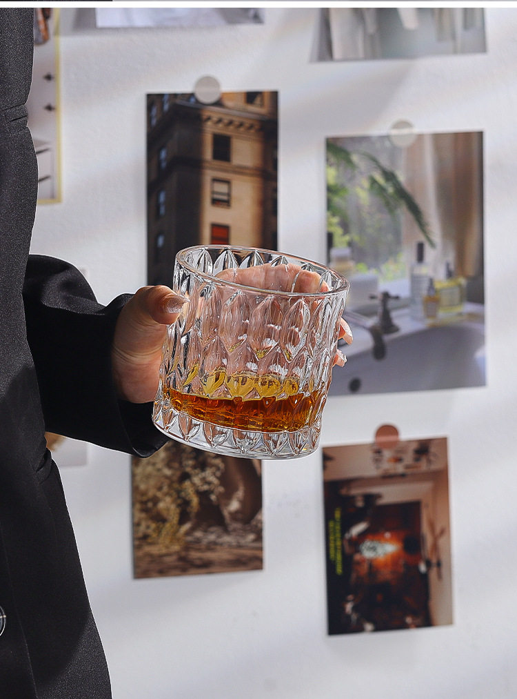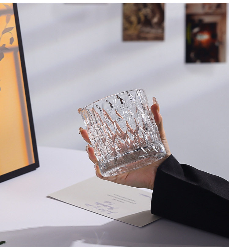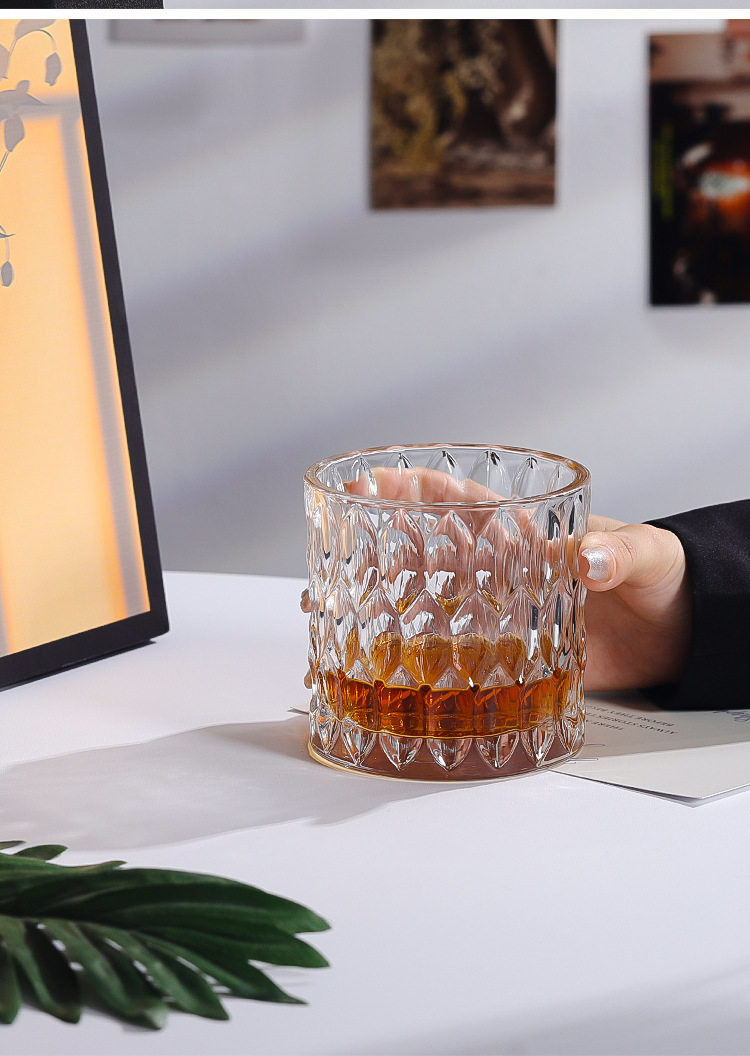 Niche Ins Vintage Light Luxury Rhomboid Large Capacity Glass Water Cup Advanced Sense Coffee Cup Whisky Wine Cup
