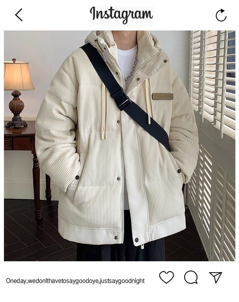NASA90 White Duck Down Jacket Men's Winter New Warm and Handsome Casual Corduroy Fashion Brand Couple Jacket
