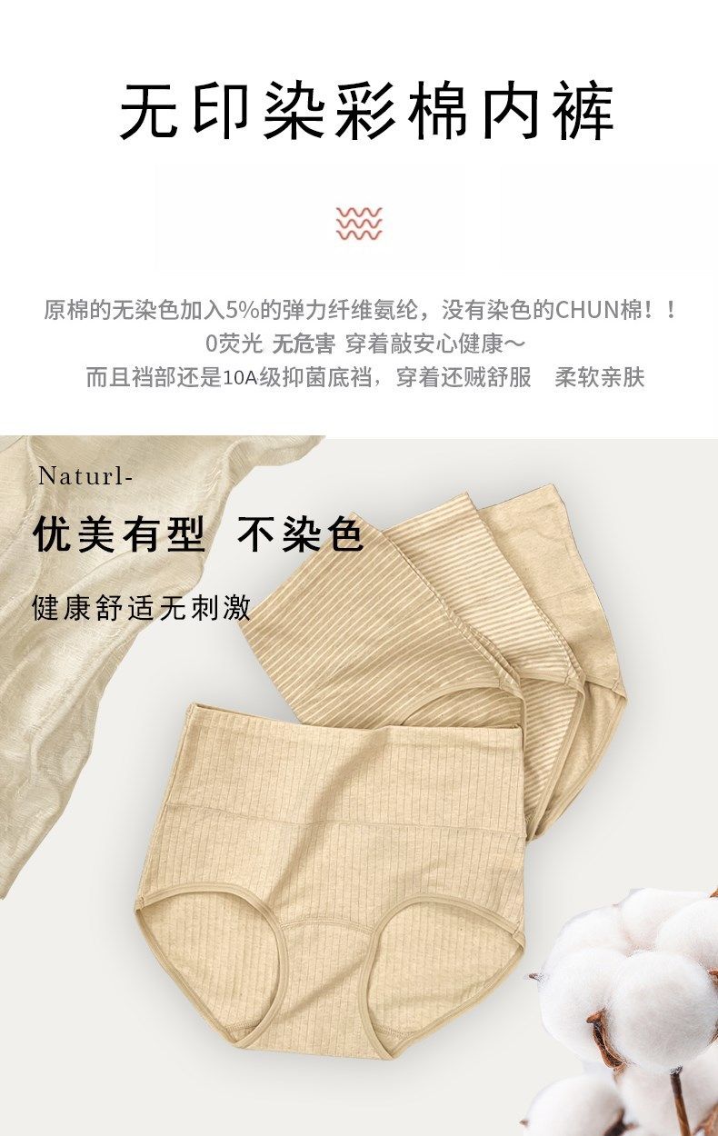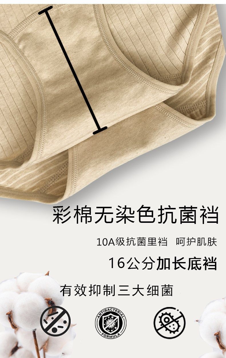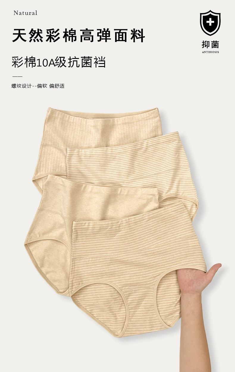 100% Cotton Extended Low-Rise Xinjiang Colored Cotton Underwear, 10A Grade Antibacterial, No Printing or Dyeing, High-Waisted, Breathable and Comfortable Women's Underwear