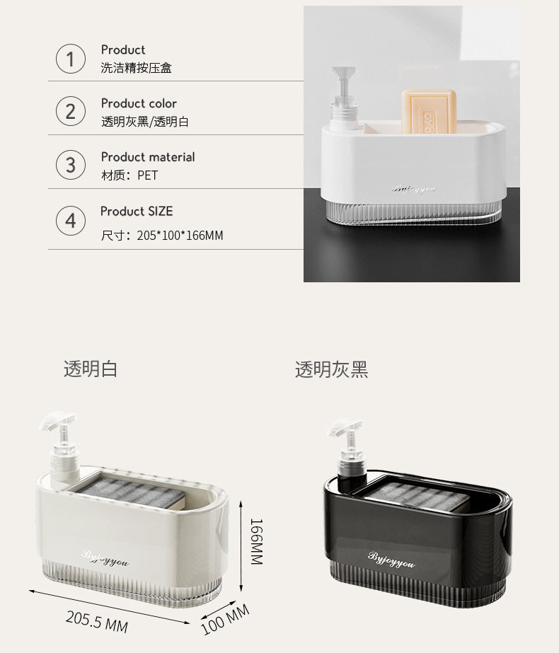 | Color | Dishwashing liquid press box-transparent white,Dishwashing liquid press box-transparent gray and black |