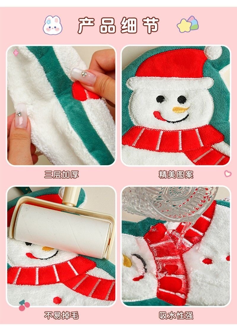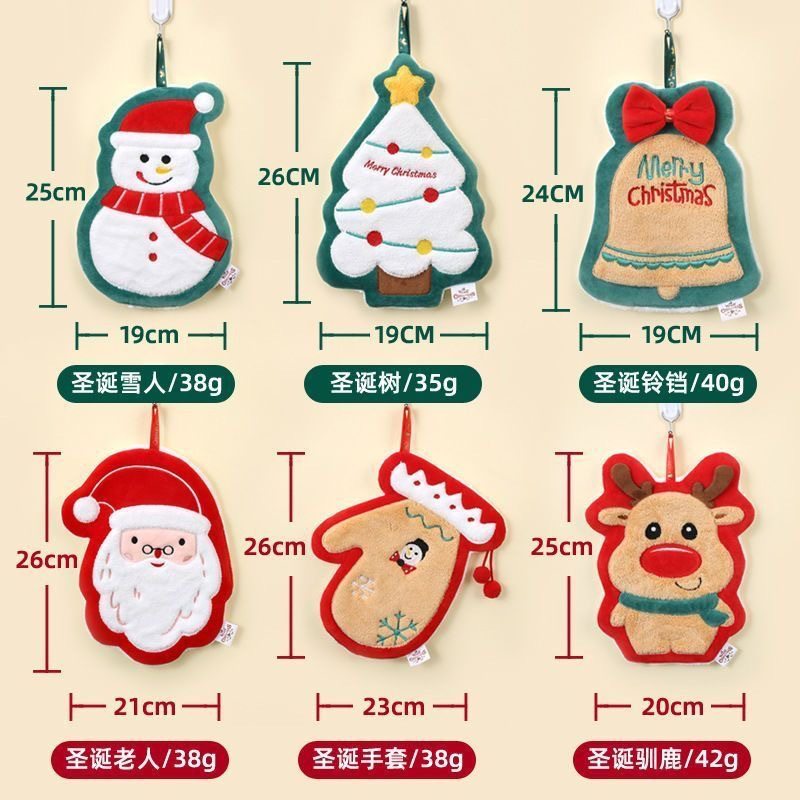 | Color | Star hanging towel,Dinosaur hanging towel,Carrot hanging towel,Watermelon hanging towel,Christmas series-snowman,Christmas series-bells,Christmas series-elk,Christmas series-gloves,Christmas series-santa claus,Christmas series-christmas tree,Cheese,Toast,Cookies,Donut,Christmas tree,Christmas bells,Santa claus,Christmas crown,Big red lantern,New year gong drum,New year red envelope |