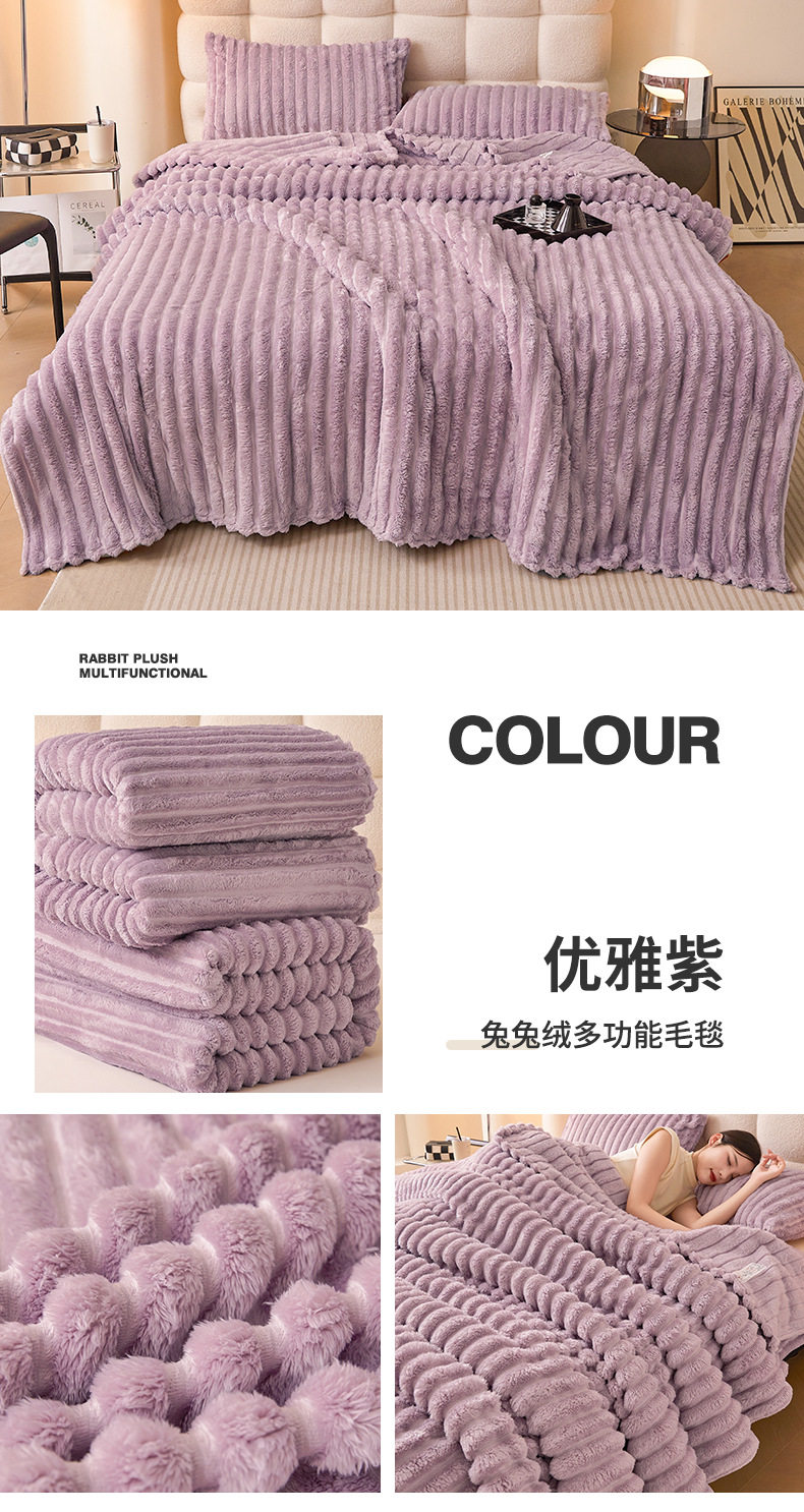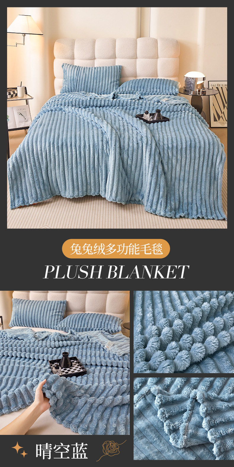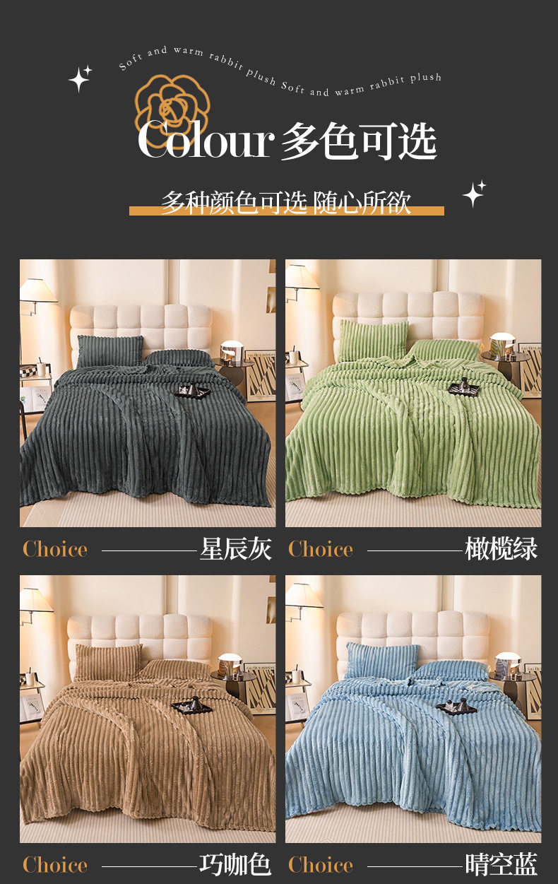 Autumn and Winter Solid Color Rabbit Fur Plush Blanket, Thickened and Warm Milk Velvet Nap Blanket, Cross-Border Foreign Trade Live Broadcast Flannel Blanket