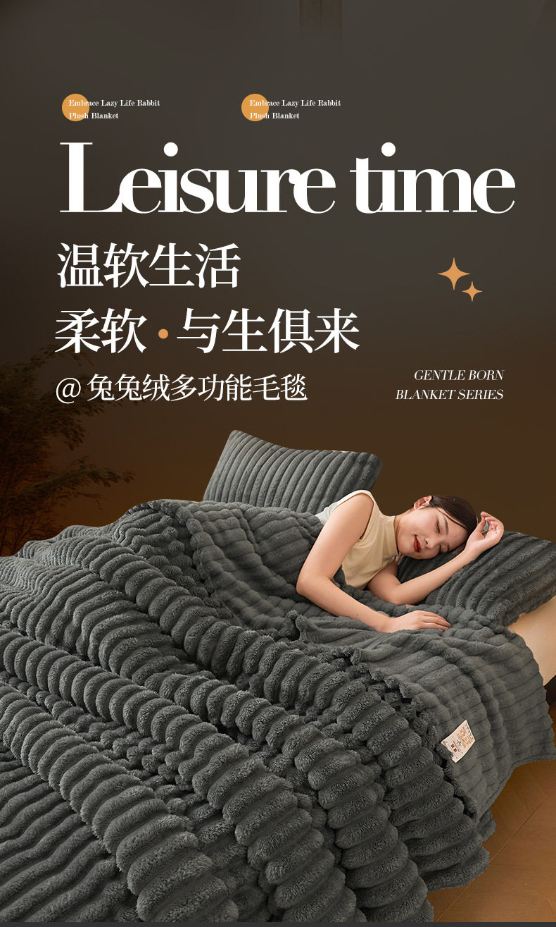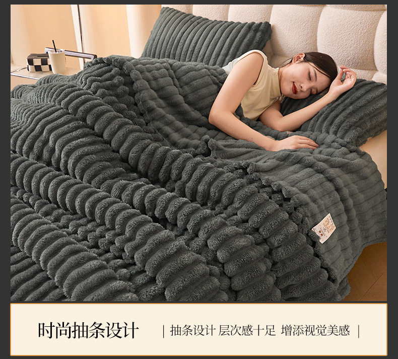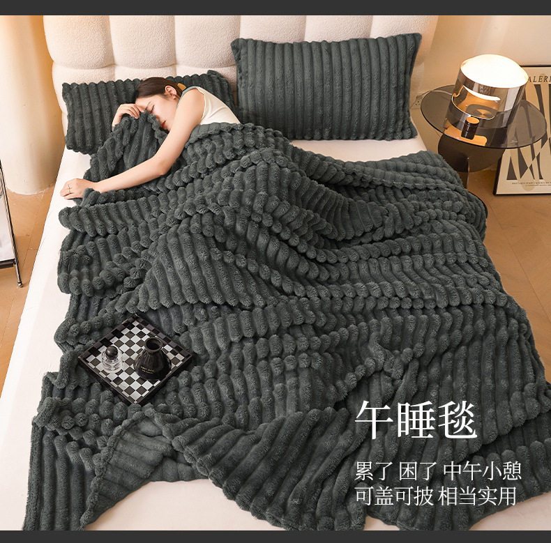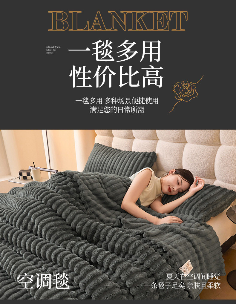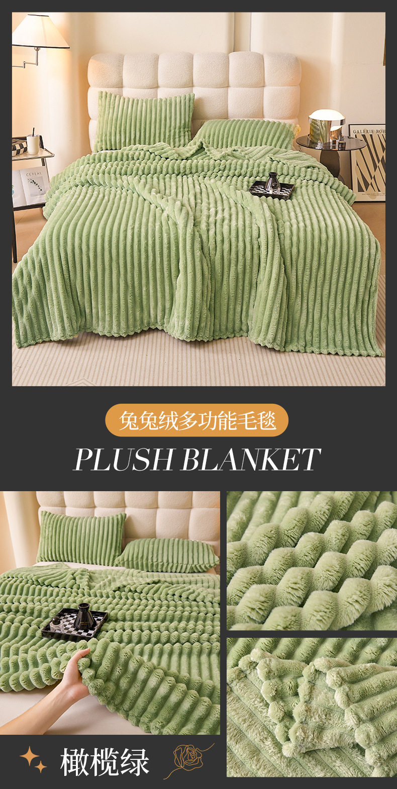 Autumn and Winter Solid Color Rabbit Fur Plush Blanket, Thickened and Warm Milk Velvet Nap Blanket, Cross-Border Foreign Trade Live Broadcast Flannel Blanket