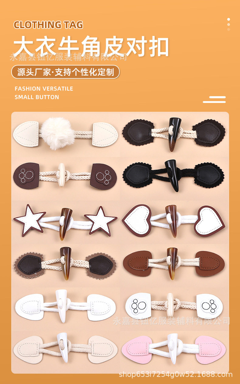 Horn Leather Resin Rope Coat Coat Coat Coat Buttons Clothing Buttons Leather Buttons Corner Buckle