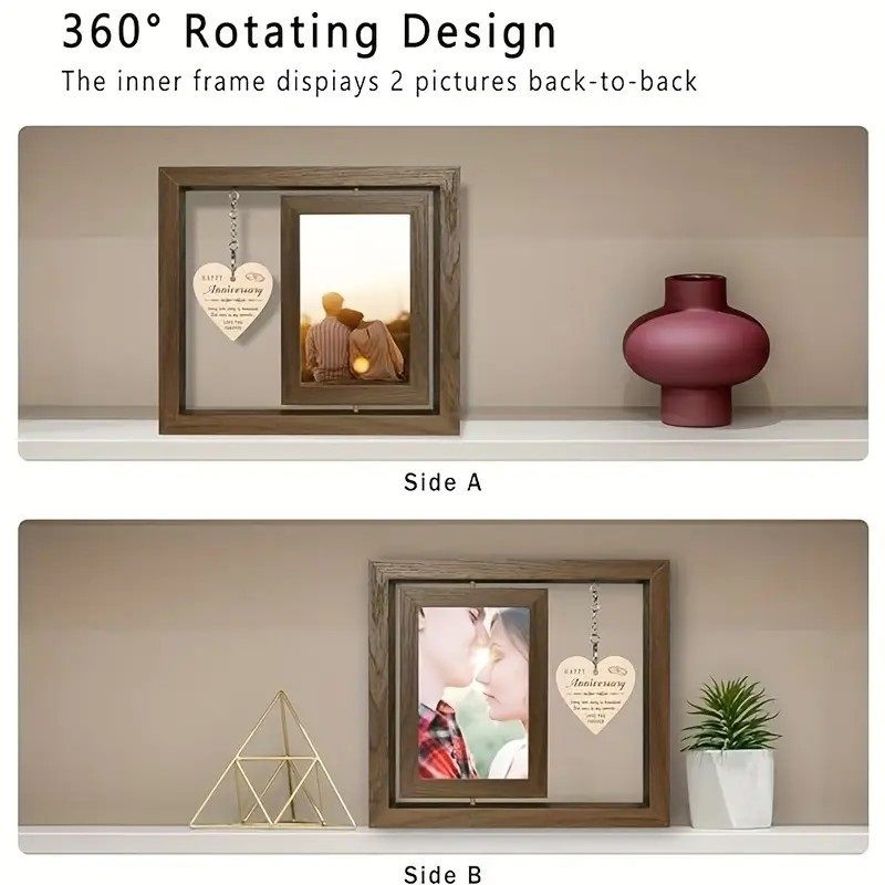 Cross-Border Wooden Rotating Commemorative Photo Frame Creative Heart-Shaped Pendant Photo Frame Display Stand Pet Photo Frame Christmas Wholesale