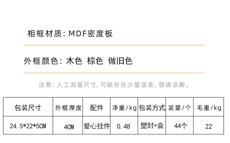 | Inner frame size | Wood color,Brown,Old color,Black |