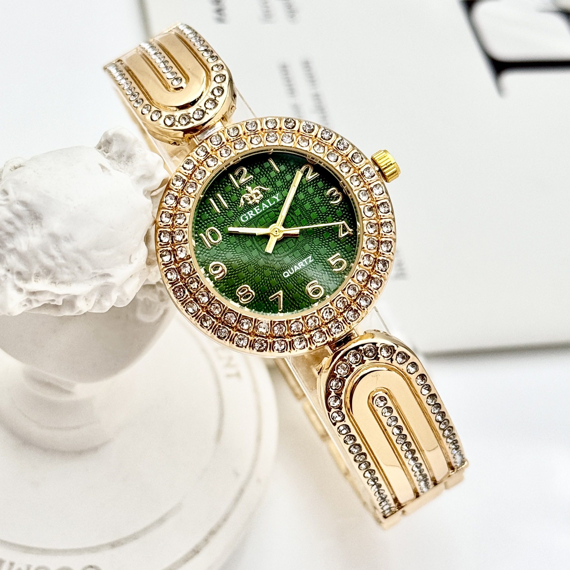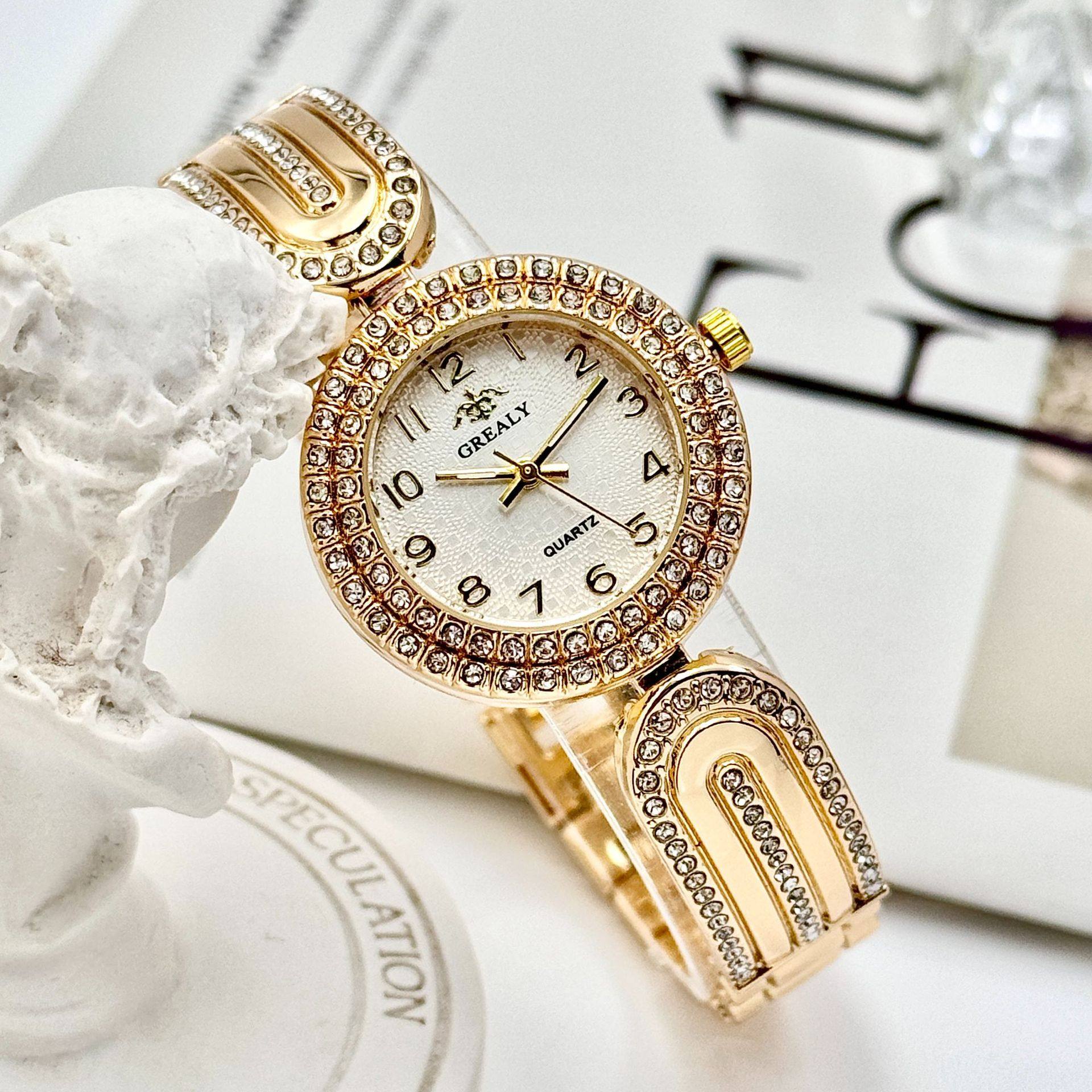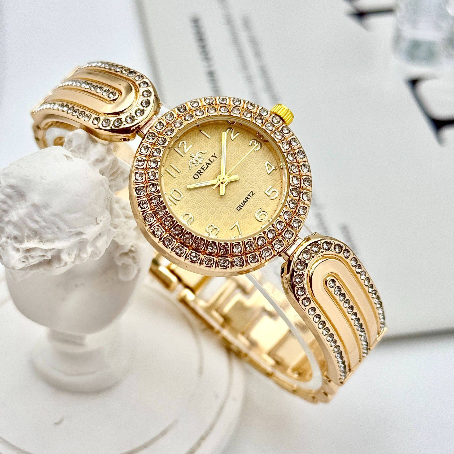 Grealy Export New Diamond-Encrusted Women's Watch High-End Casual Fashion Digital Dial Bracelet Watch Women's Accessible Luxury