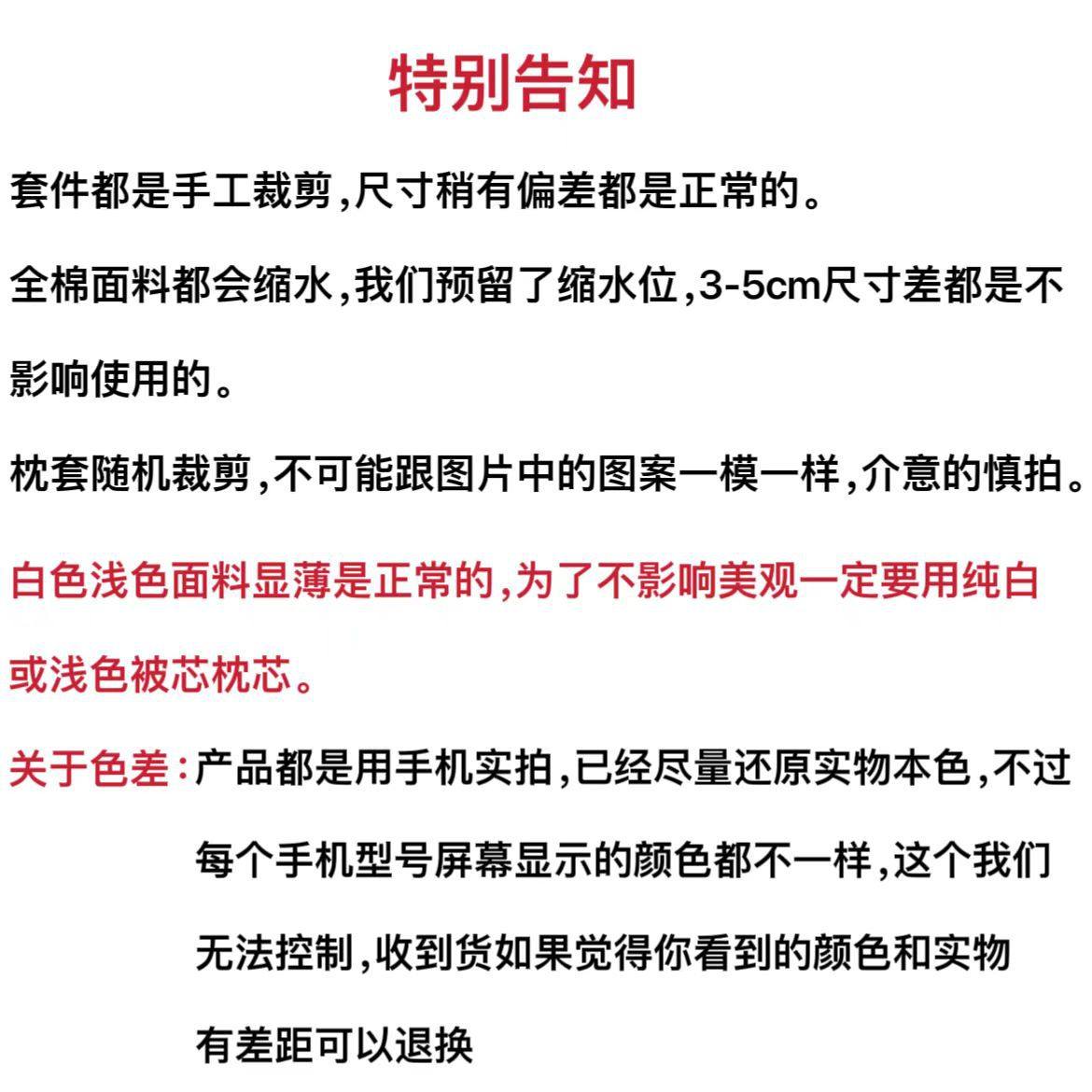 | Dimensions | 1.2m bed sheet three-piece set [quilt cover 150*200],1.5m bed sheet four-piece set [quilt cover 200*230],1.8m bed sheet four-piece set [quilt cover 200*230],2.0m bed sheet four-piece set [quilt cover 220*240],1.5m fitted sheet set of four [quilt cover 200*230],1.8m fitted sheet set of four [quilt cover 200*230],1.8m large four-piece set [quilt cover 220*240] |