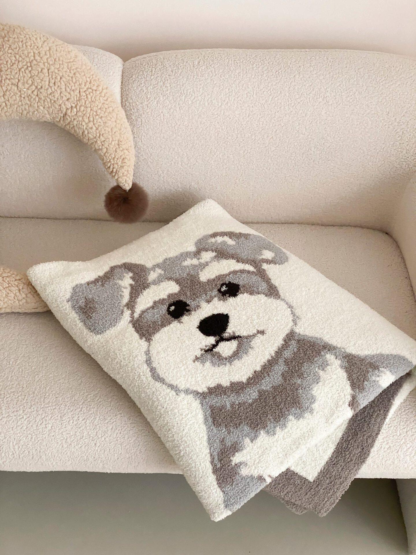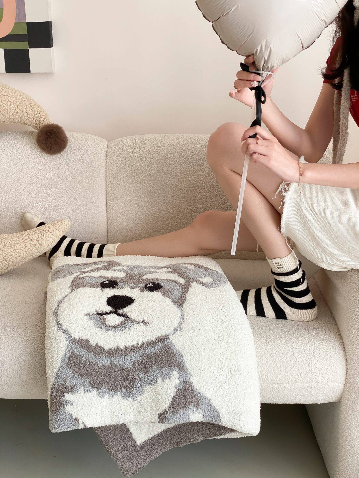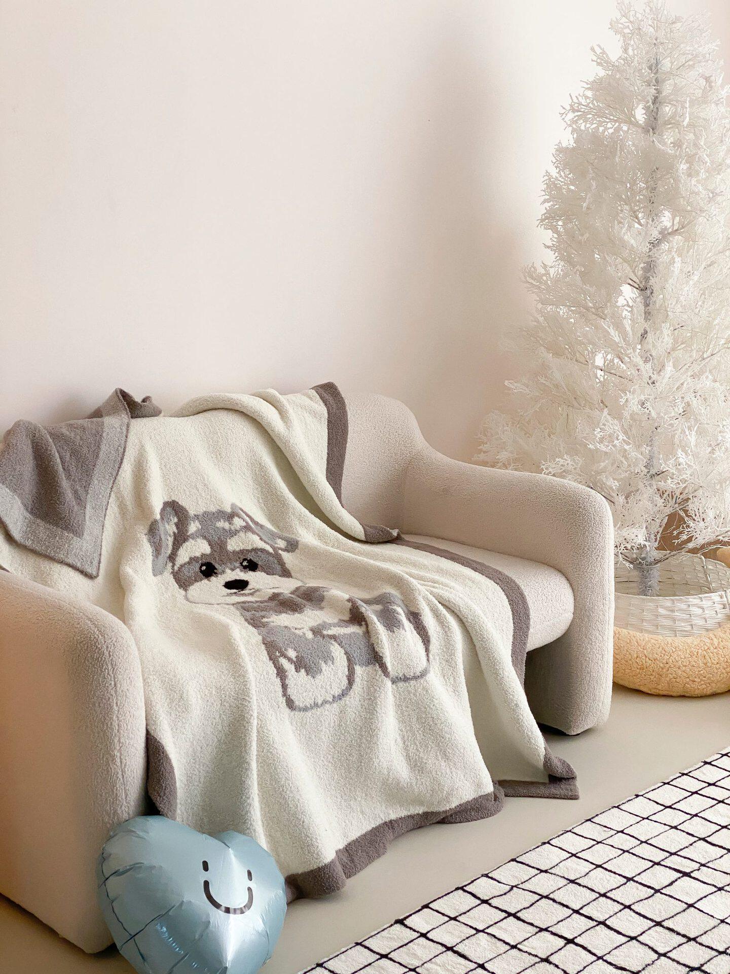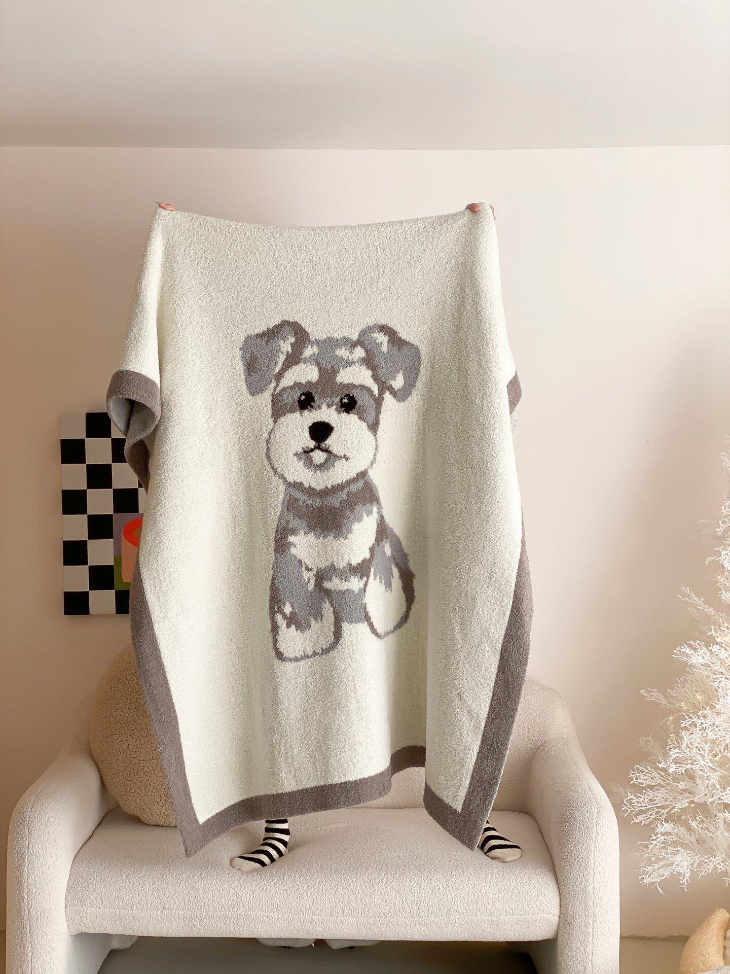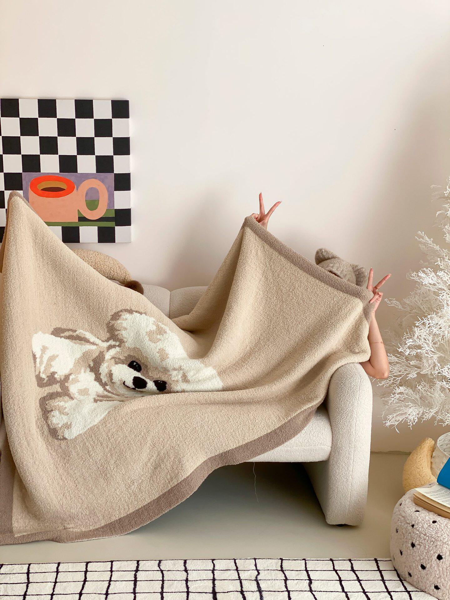 Super soft half velvet cartoon dog blanket yarn-dyed jacquard office warm nap blanket bedroom sofa blanket four seasons