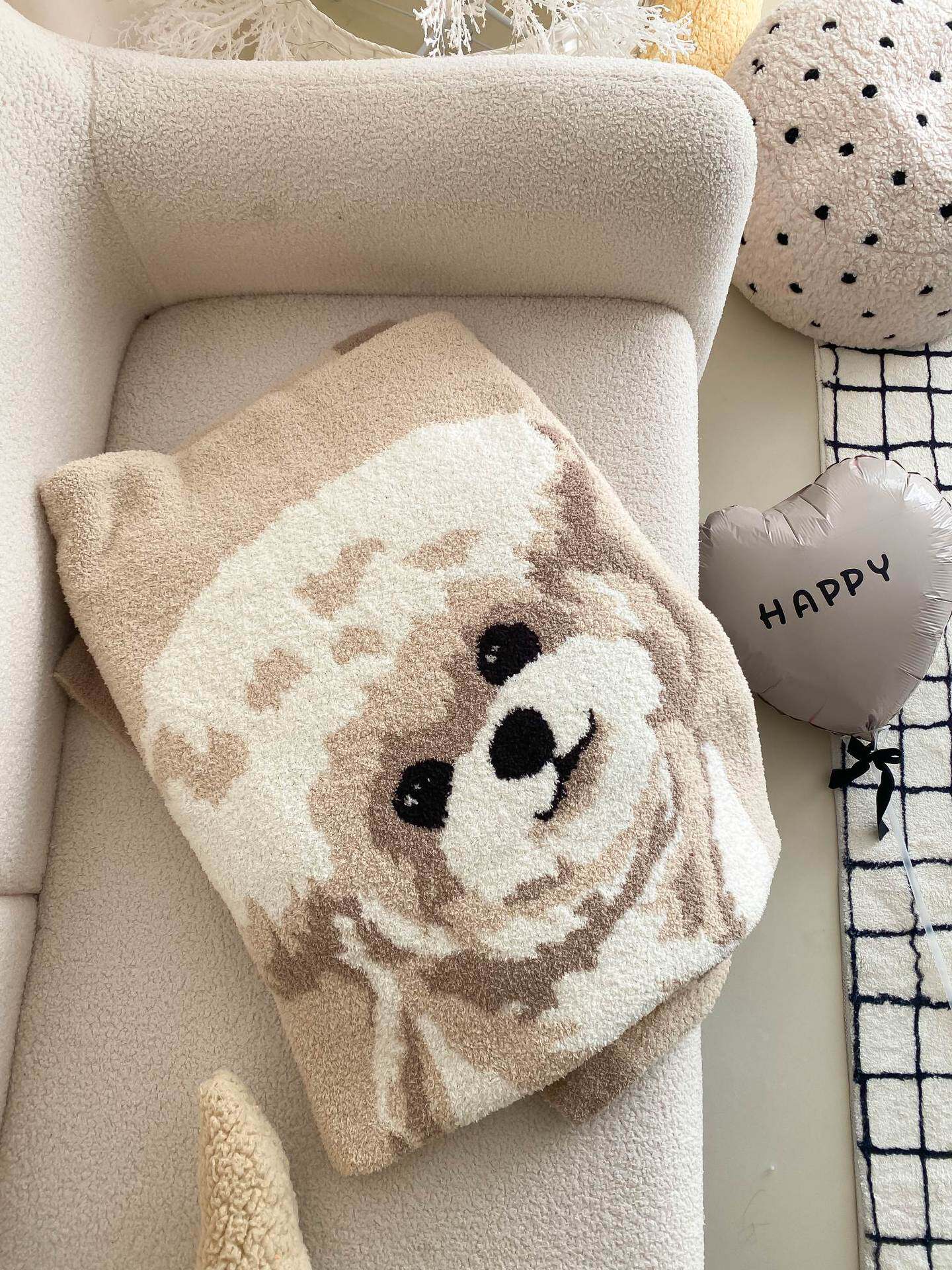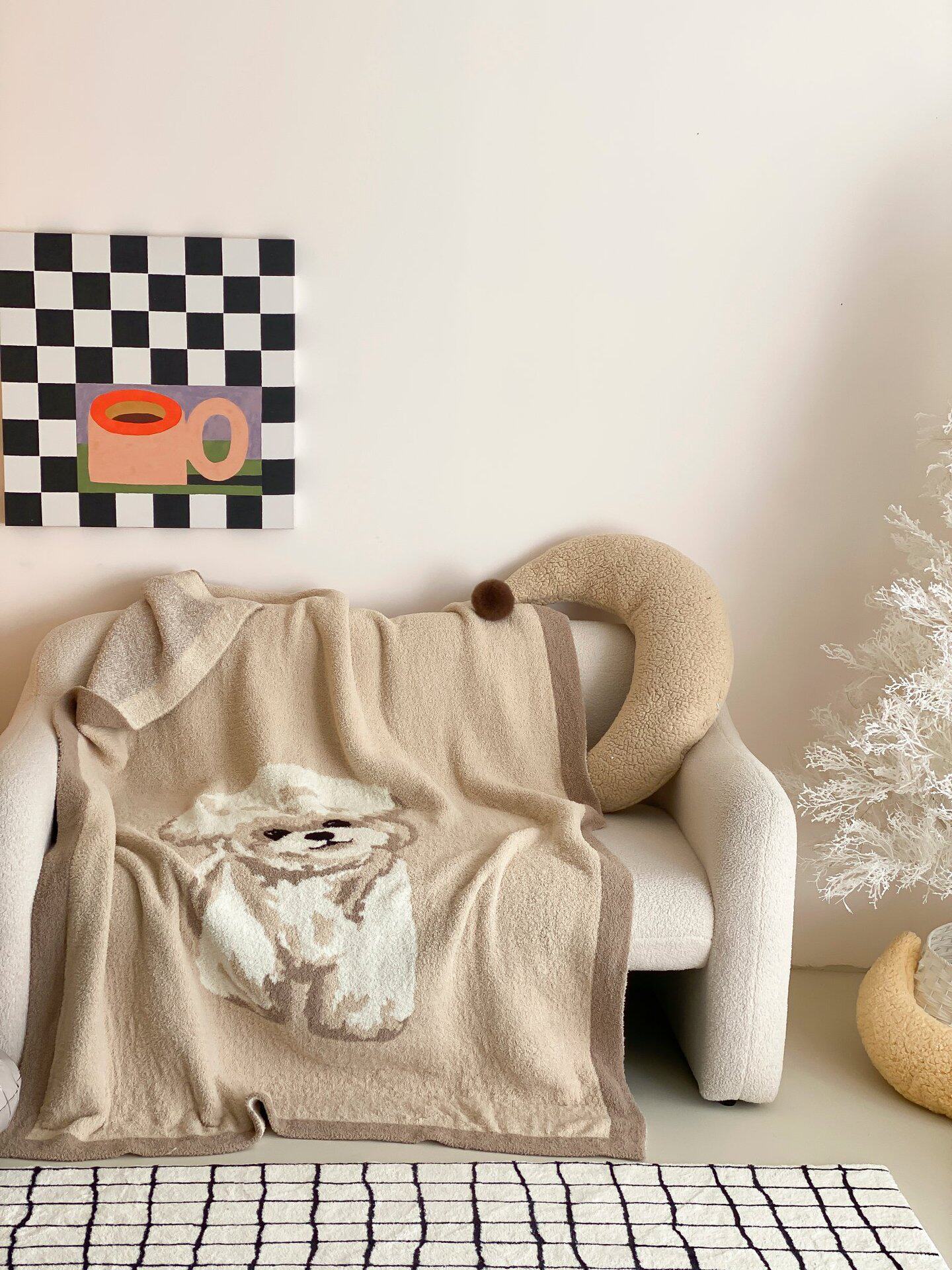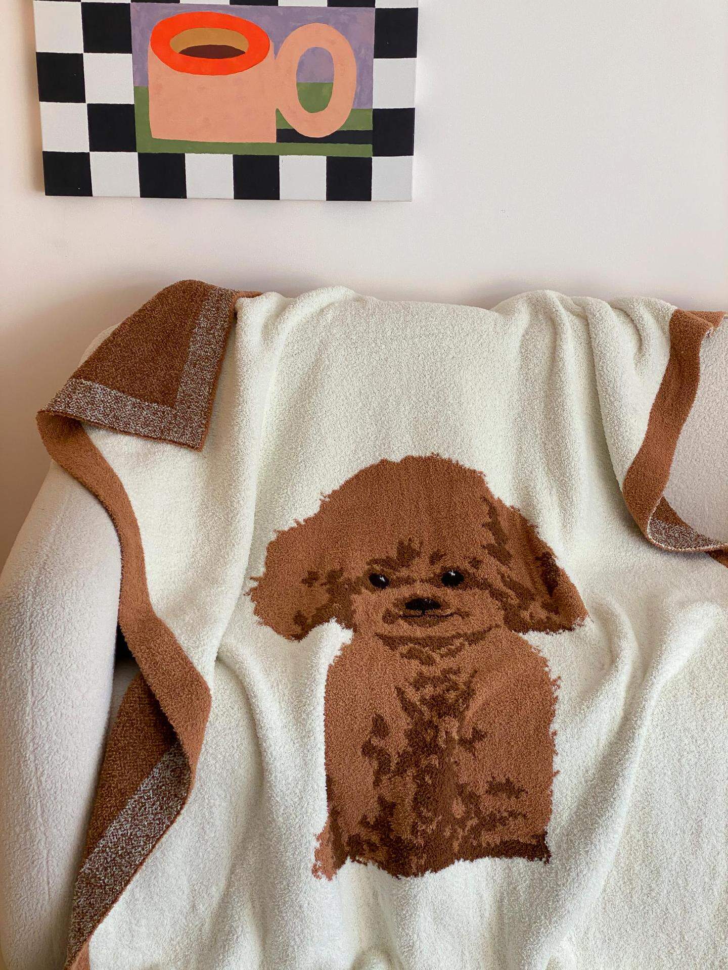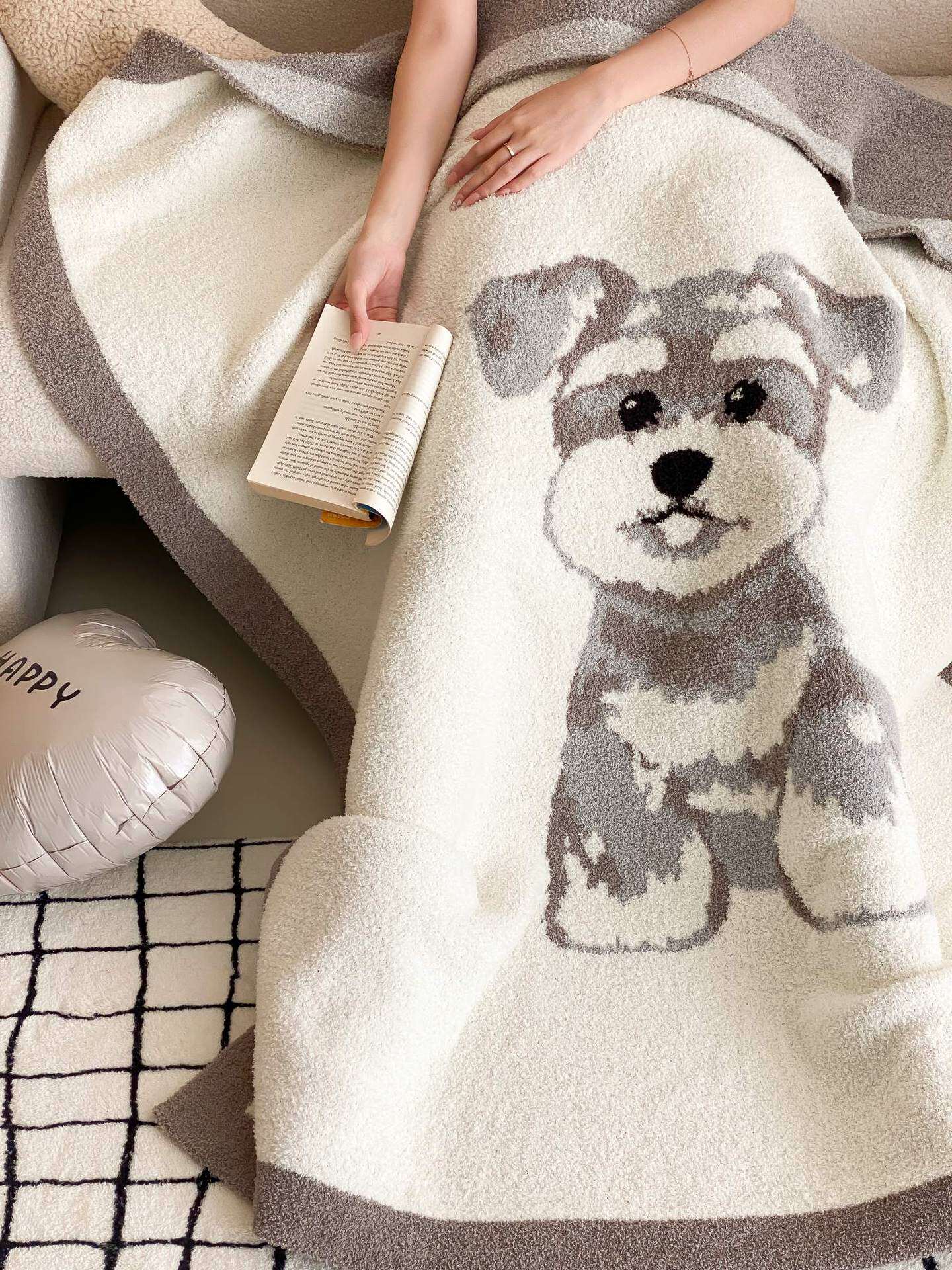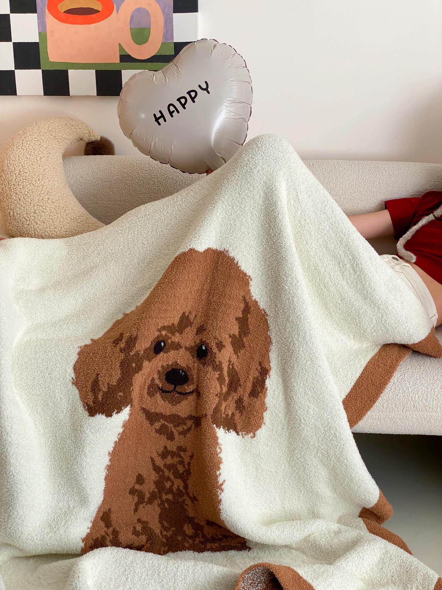 Super soft half velvet cartoon dog blanket yarn-dyed jacquard office warm nap blanket bedroom sofa blanket four seasons