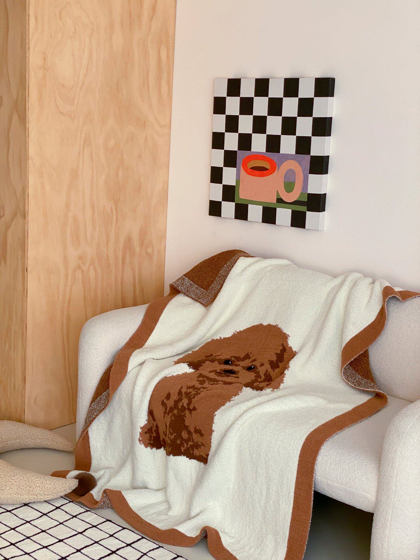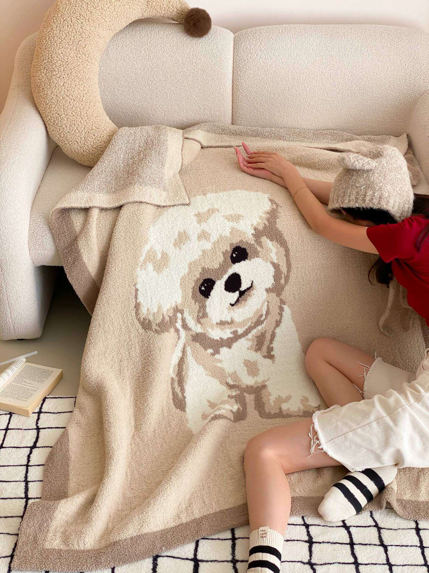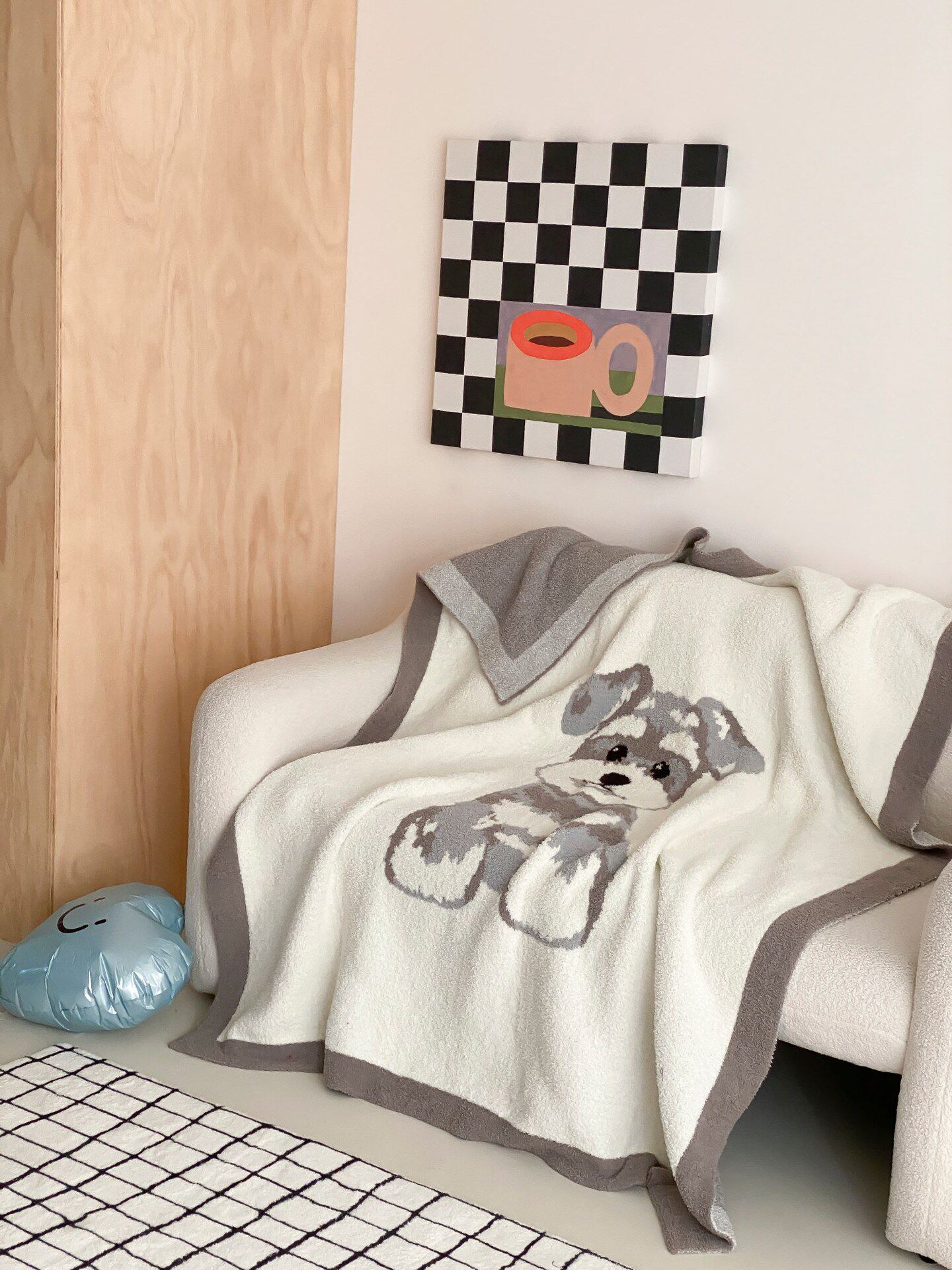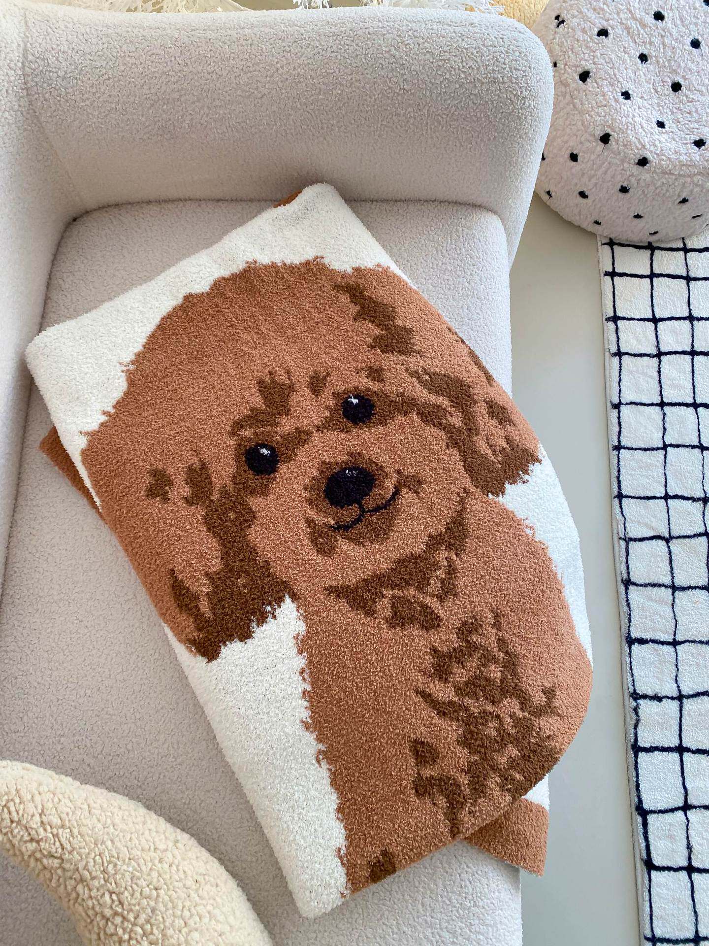 Super soft half velvet cartoon dog blanket yarn-dyed jacquard office warm nap blanket bedroom sofa blanket four seasons