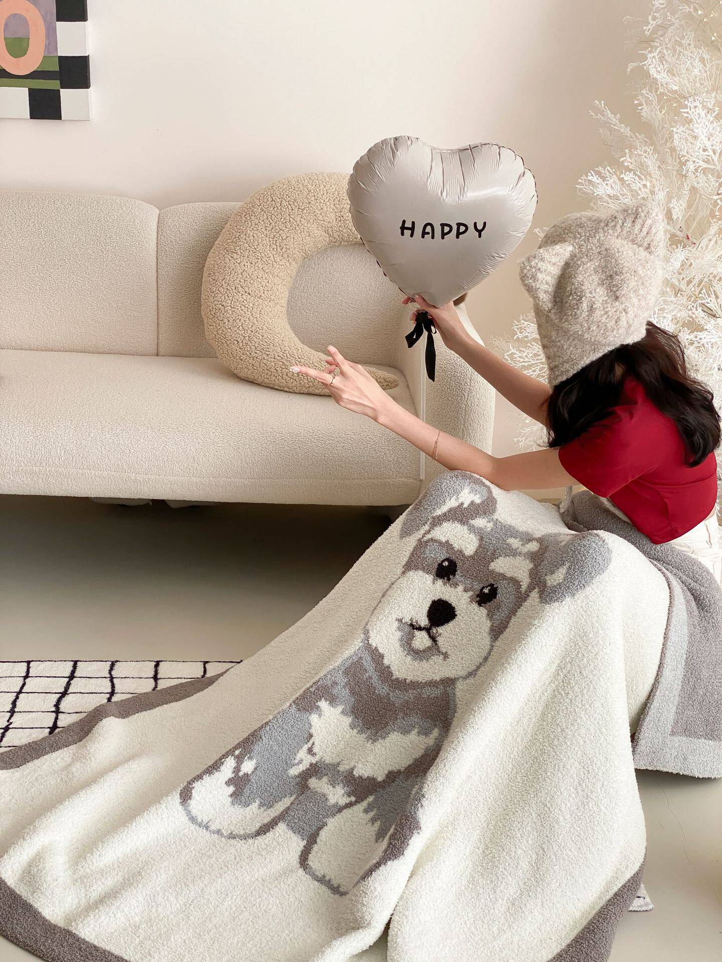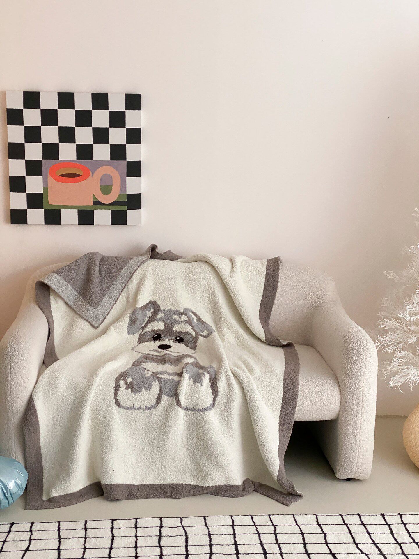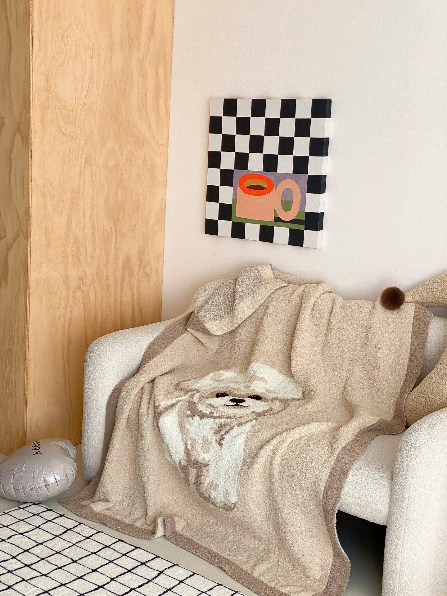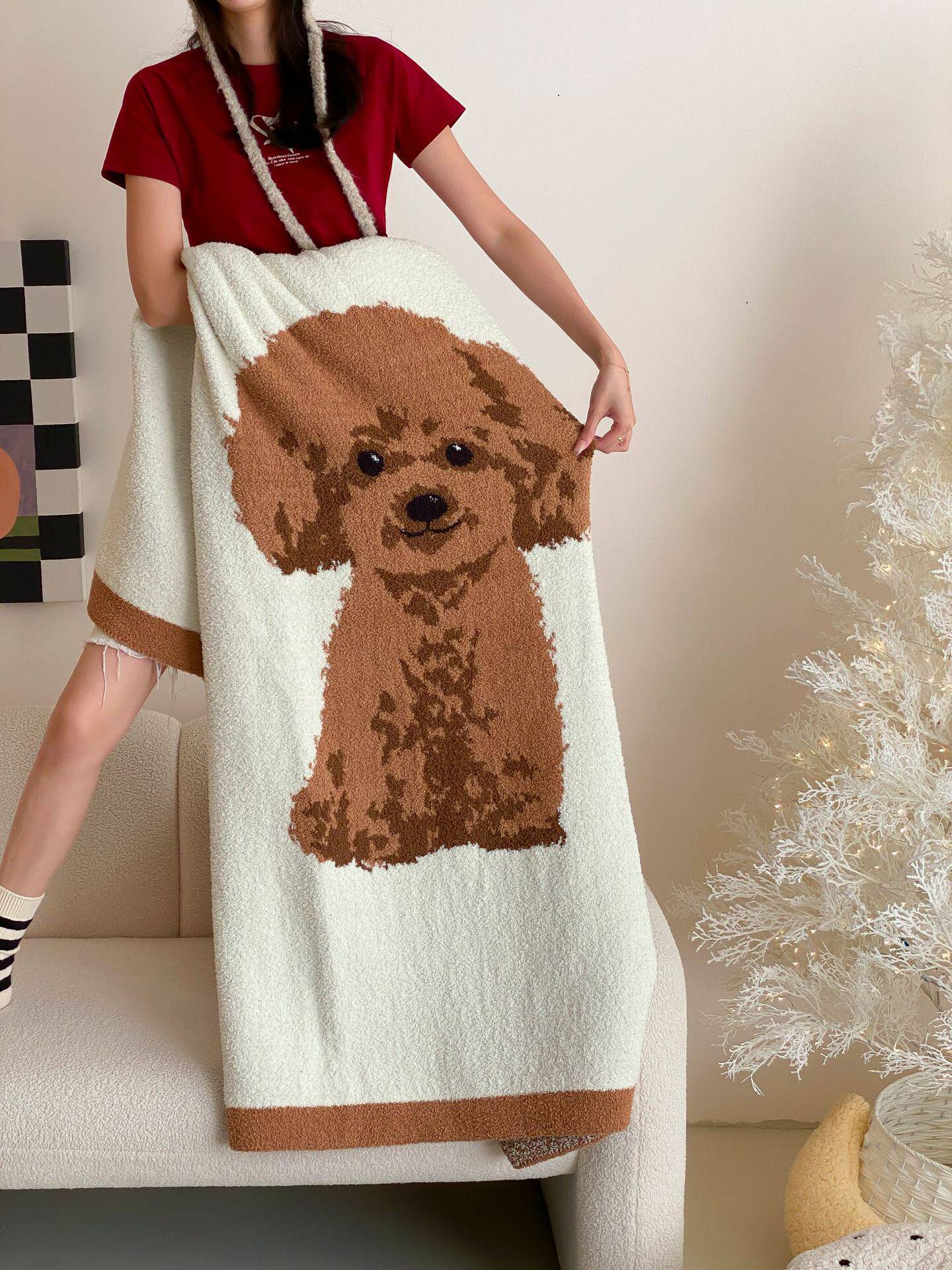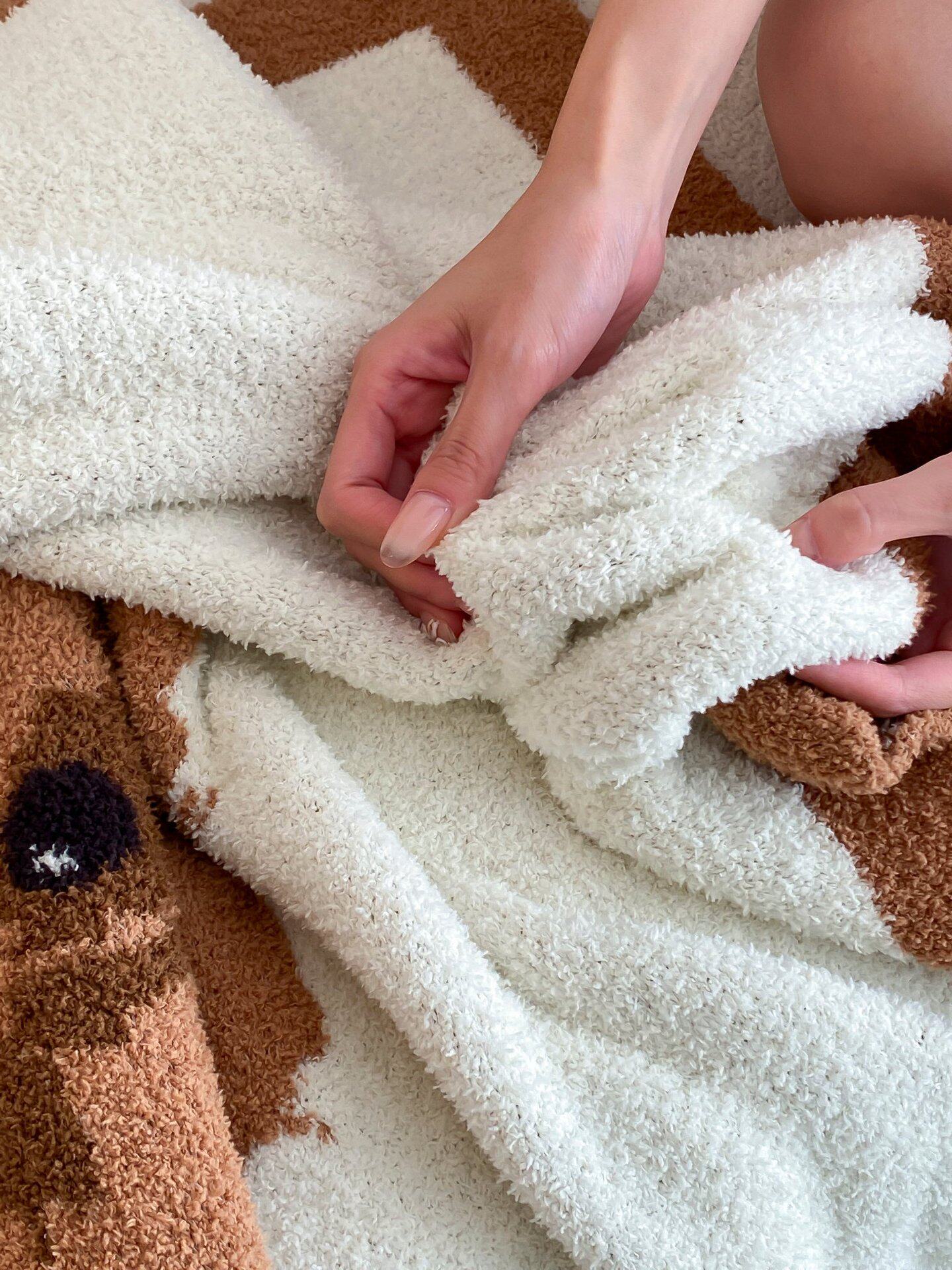 Super soft half velvet cartoon dog blanket yarn-dyed jacquard office warm nap blanket bedroom sofa blanket four seasons