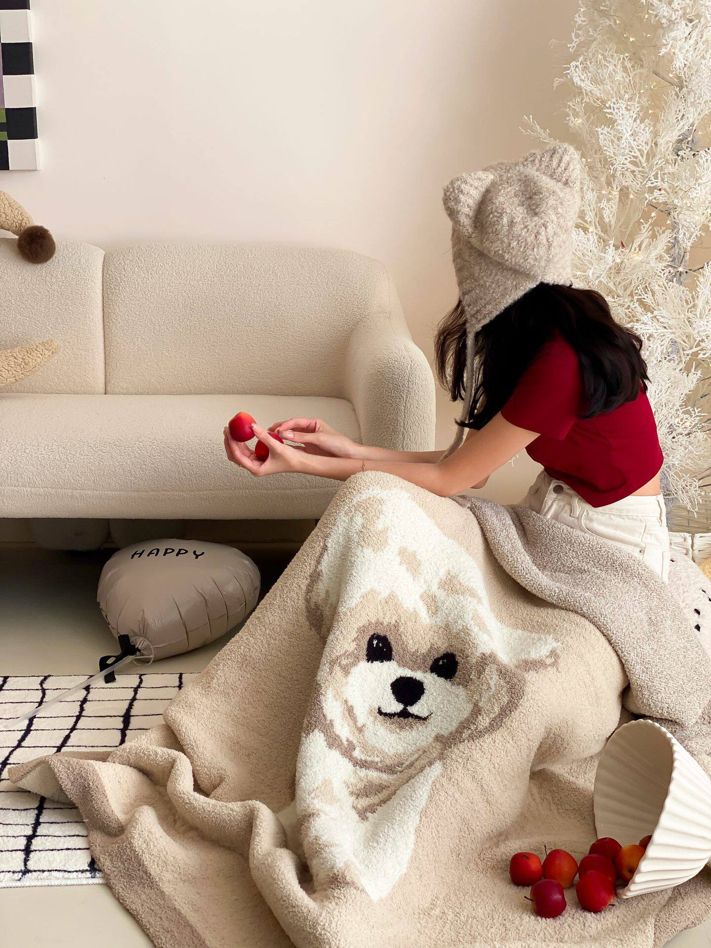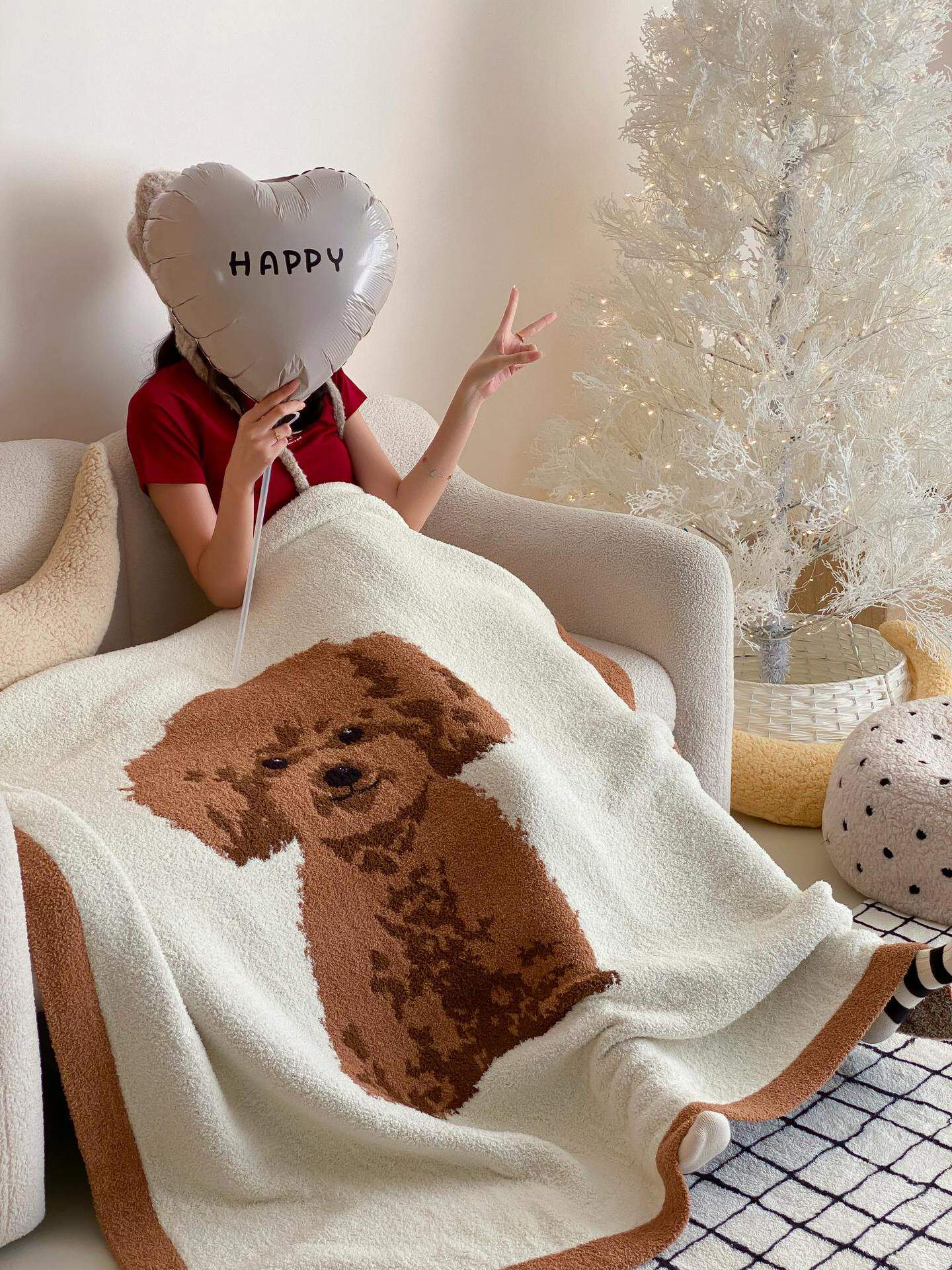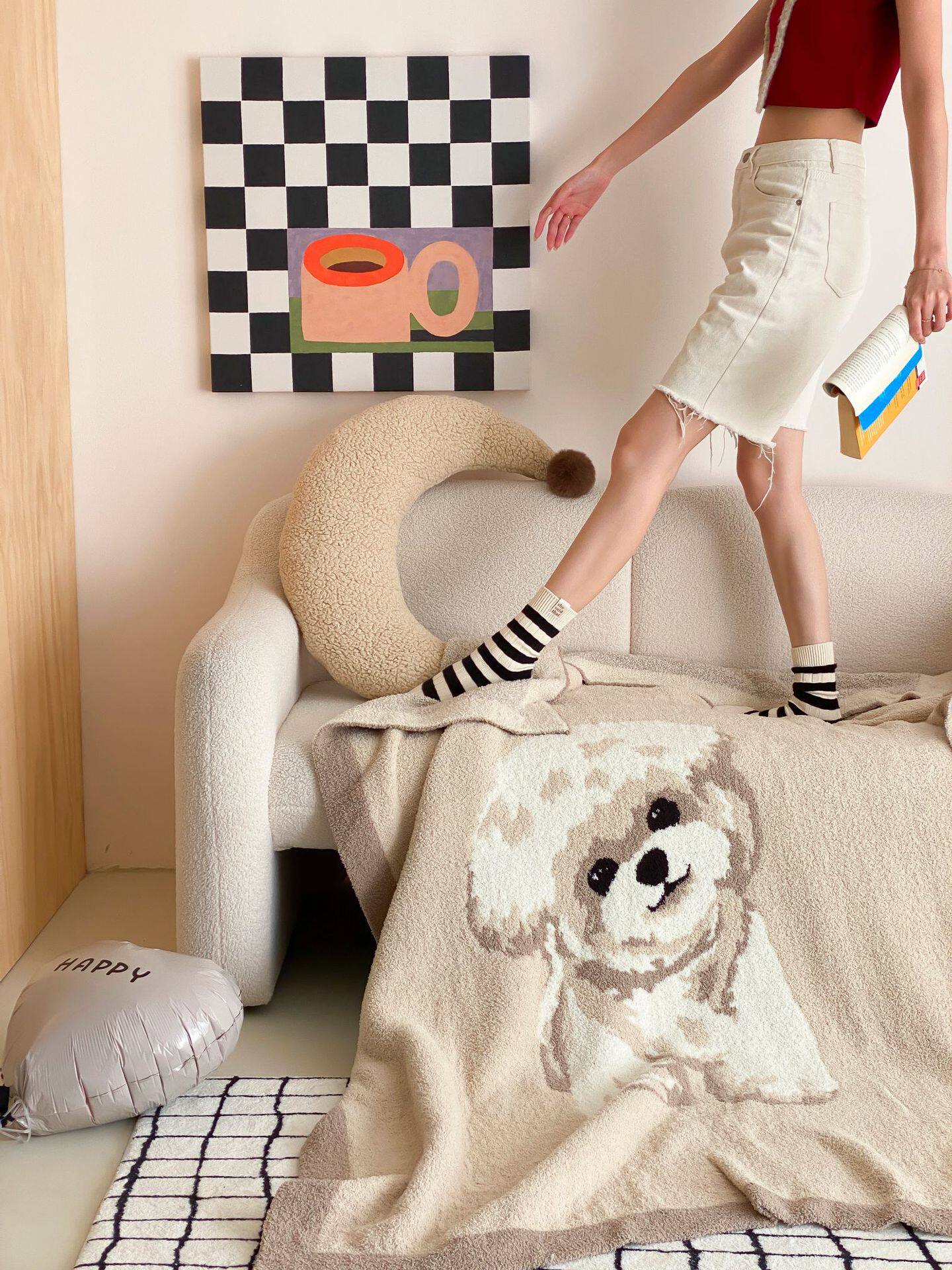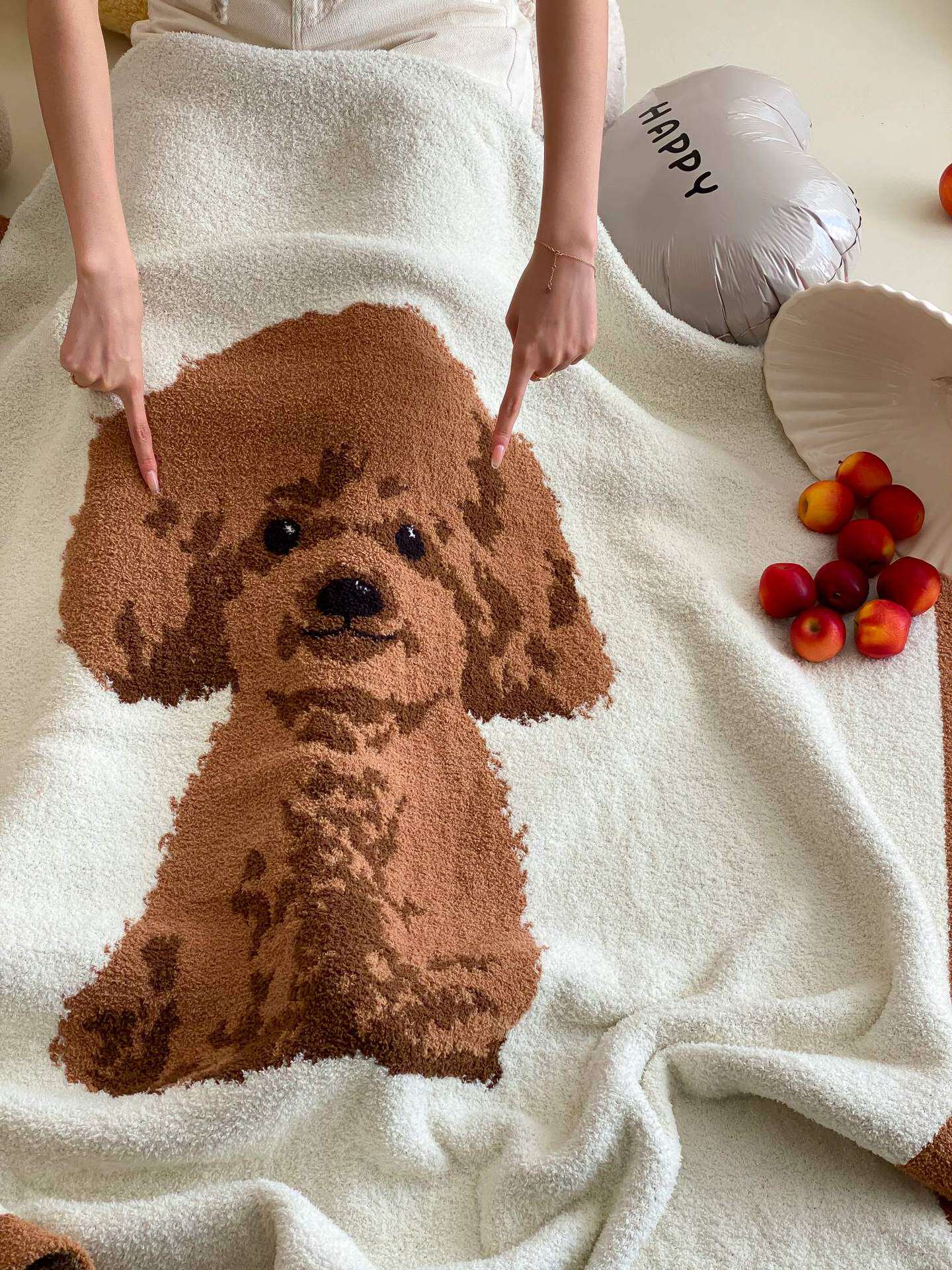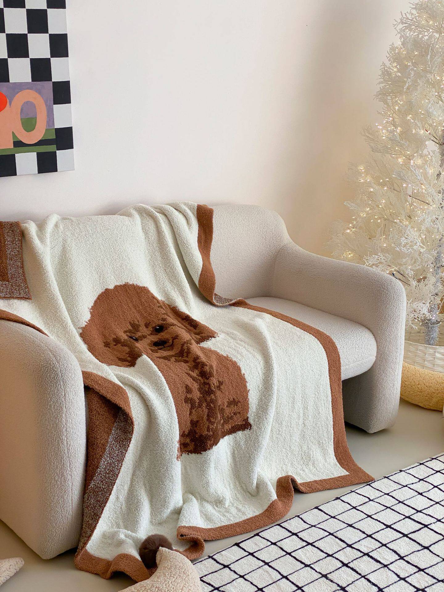 Super soft half velvet cartoon dog blanket yarn-dyed jacquard office warm nap blanket bedroom sofa blanket four seasons