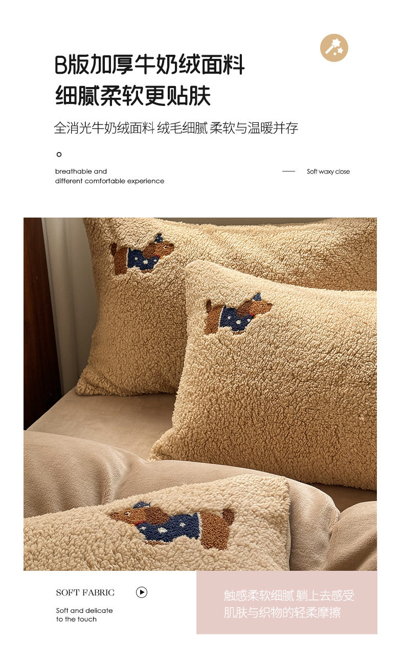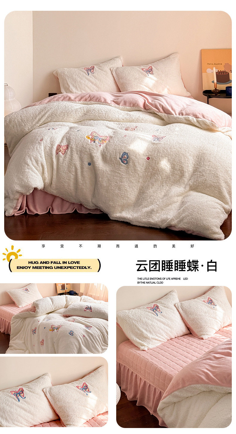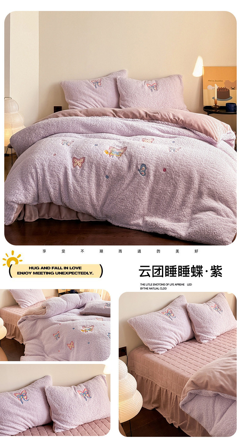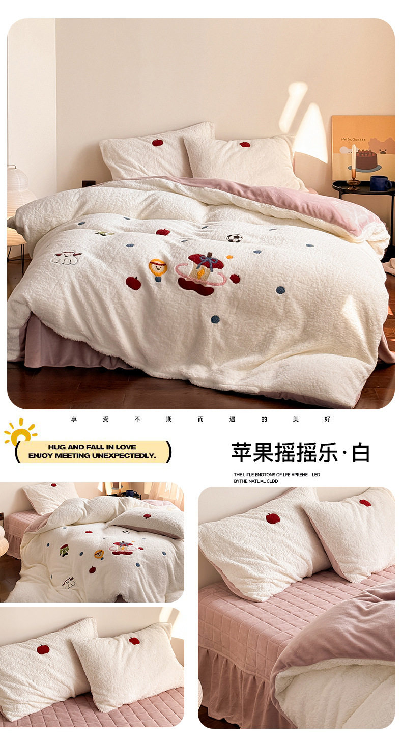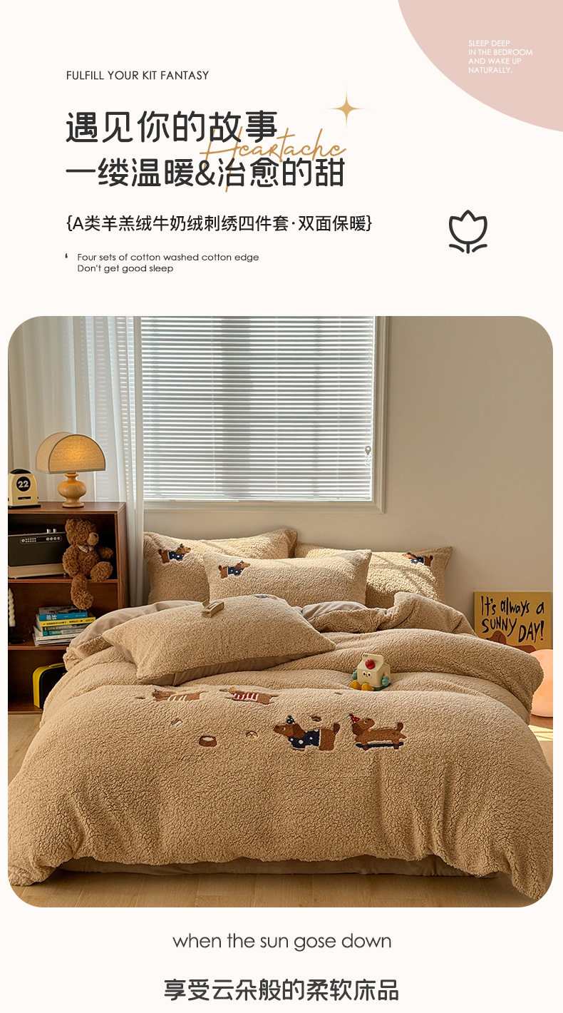 Lamb velvet four-piece set winter cartoon padded towel embroidered milk velvet sheets three-piece set wholesale embroidered quilt cover