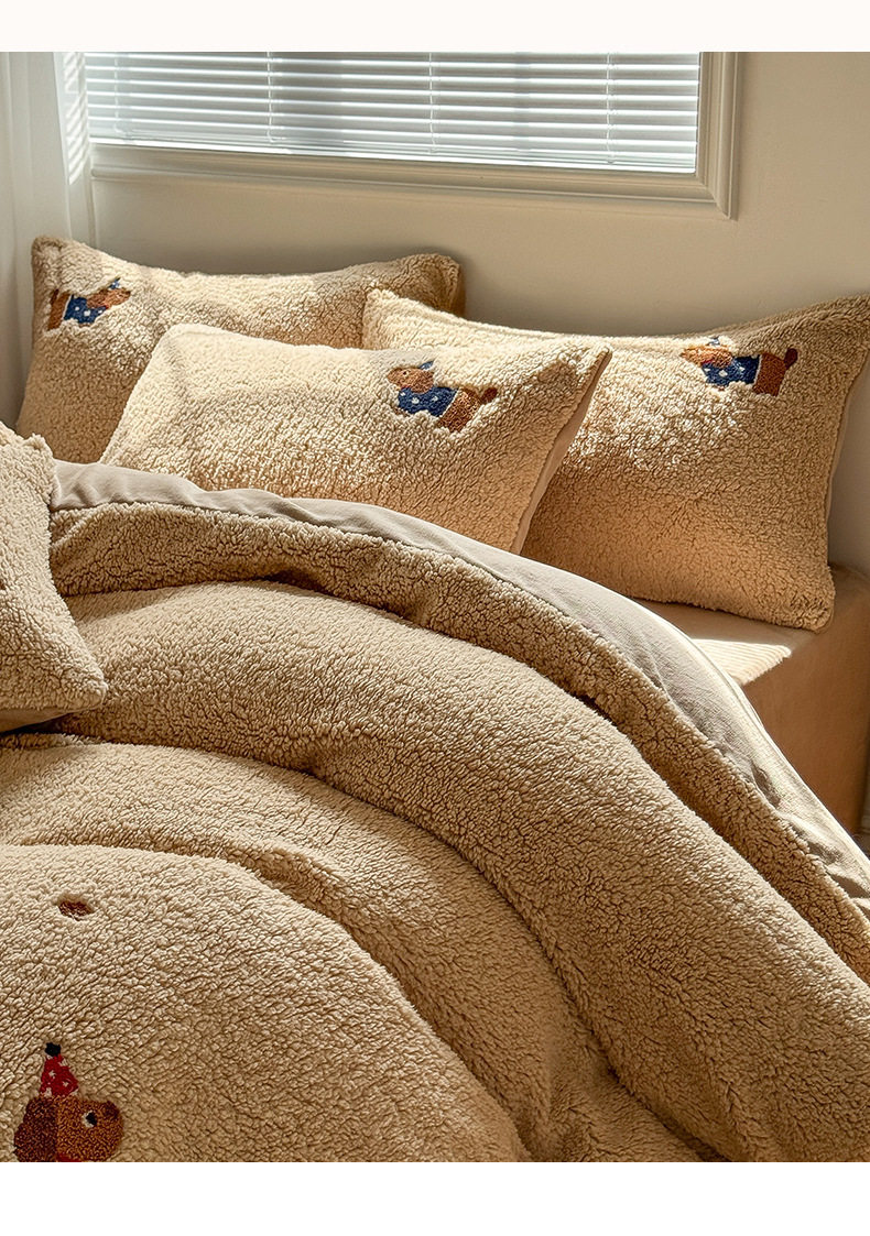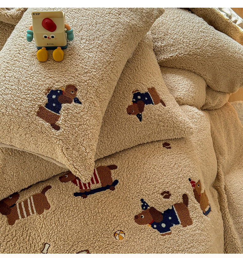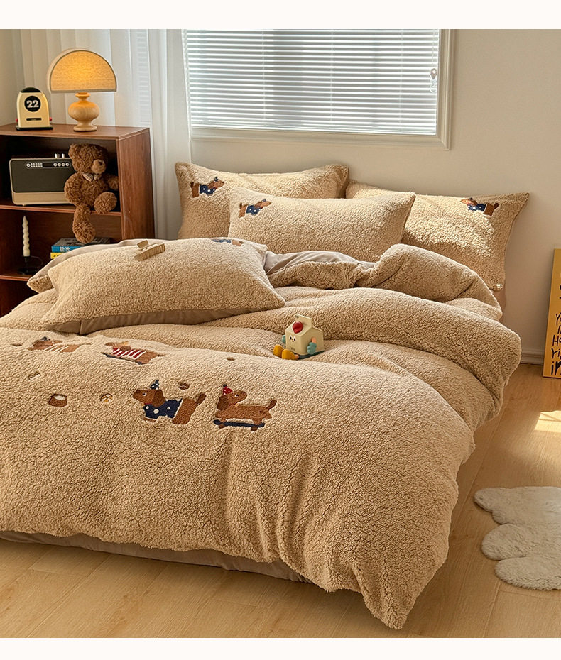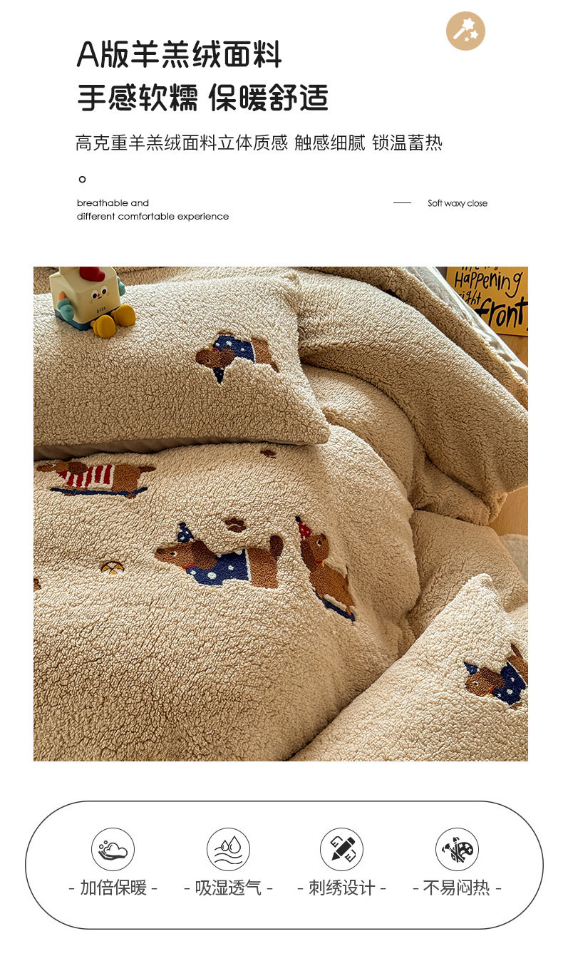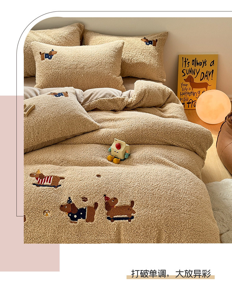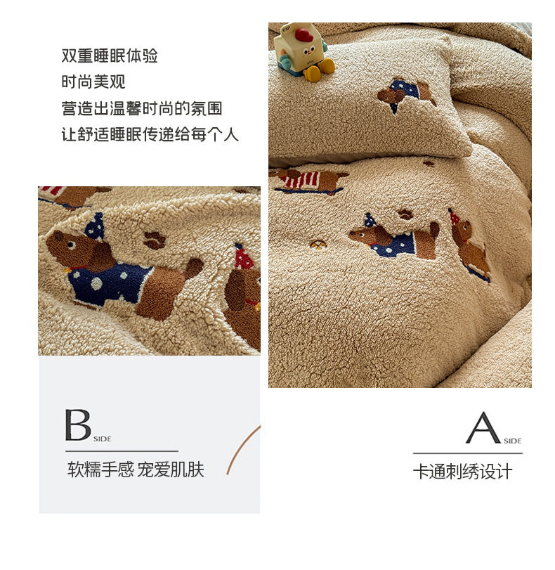 Lamb velvet four-piece set winter cartoon padded towel embroidered milk velvet sheets three-piece set wholesale embroidered quilt cover