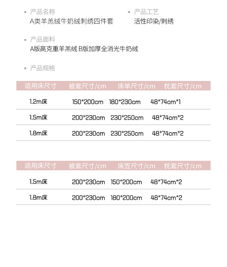 | Size specifications | 1.2m [bed sheets style] three-piece set [quilt cover 150*200cm],1.5m [bed sheets style] four-piece set [quilt cover 200*230cm],1.8m [bed sheets style] four-piece set [quilt cover 200*230cm],1.5m [fitted sheet] four-piece set [quilt cover 200*230cm],1.8m [fitted sheet] four-piece set [quilt cover 200*230cm] |