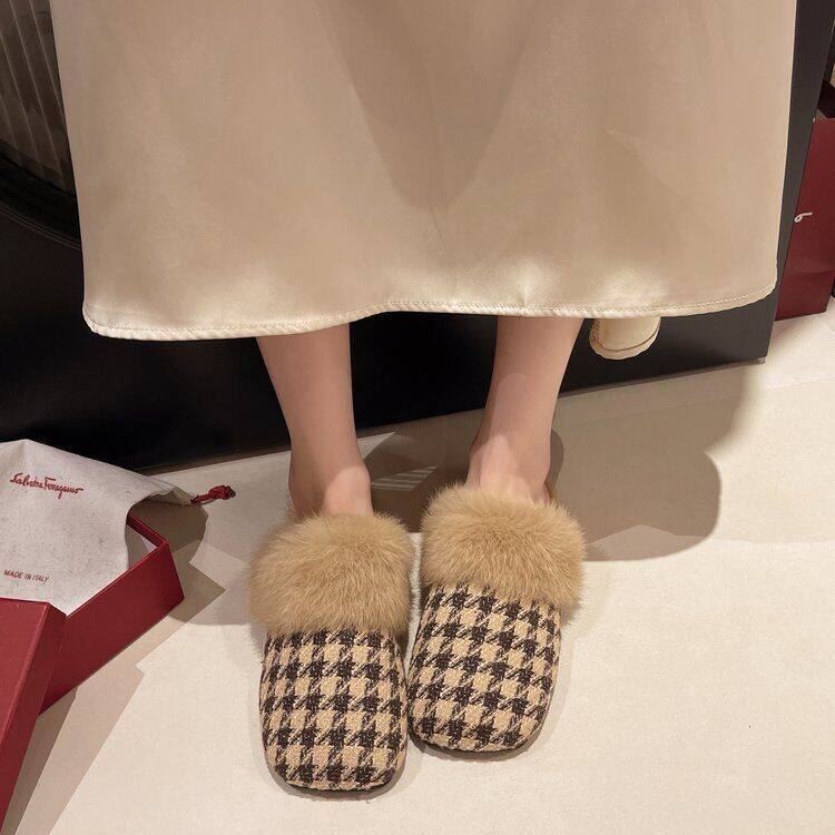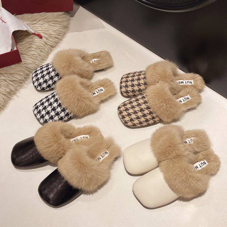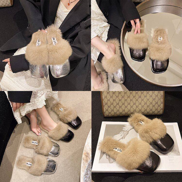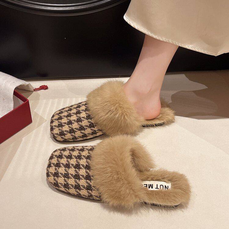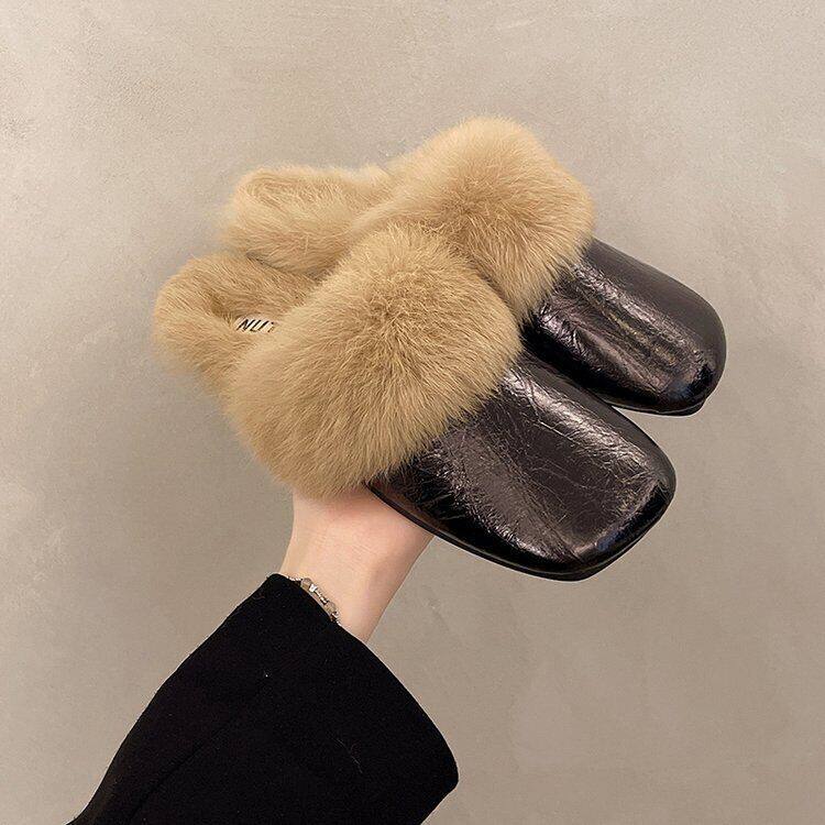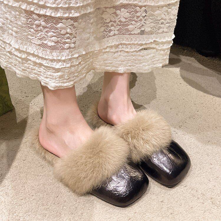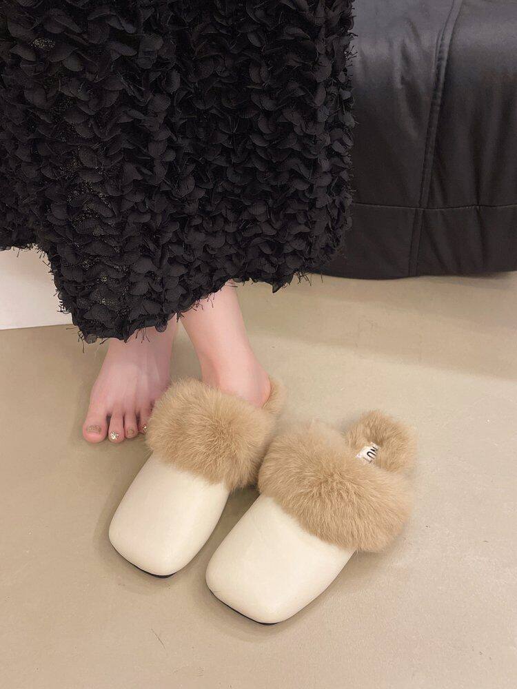 French Style Beautiful Baotou Autumn and Winter Maomao Slippers fleece-lined Women's Outside 2024 Flat New Mueller Lazy People Explosions Going Out