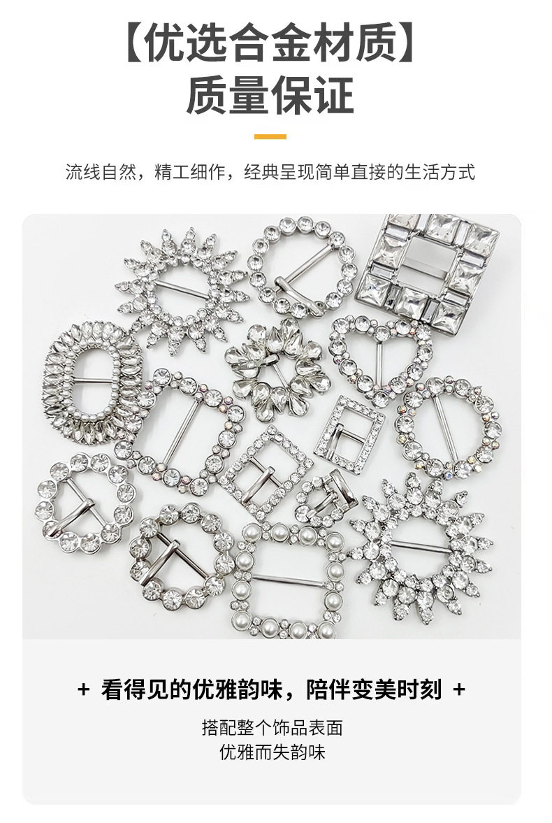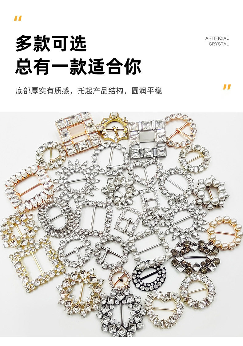 Color Rz001-black double circle oval diamond crossbar buckle/piece,Rz002-silver oval pearl marquise rhinestone crossbar buckle/piece,Rz003-gun black rectangular geometric glass rhinestone crossbar buckle/piece,Rz004 - gold square marquise glass rhinestone bar clasp/piece (small),Rz005-gold square marquise glass diamond horizontal bar buckle/piece (large),Rz006-silver square marquise glass diamond horizontal bar buckle/piece,Rz009-silver square glass square diamond horizontal bar buckle/piece,Rz010-gold square glass square diamond horizontal bar buckle/piece,Rz017-imitation gold round glass round square diamond crossbar buckle/piece,Rz018-imitation gold love glass round square diamond crossbar buckle/piece,Rz019-imitation gold square glass round square diamond crossbar buckle/piece,Rz020-(small) imitation gold round geometric glass rhinestone crossbar buckle/piece,Rz021-(large) imitation gold round geometric glass rhinestone crossbar buckle/piece,Rz022-(large) gun black round geometric glass rhinestone cross bar buckle/piece,Rz023-silver sunflower glass round diamond crossbar buckle/piece,Rz025-silver square pearl inlaid diamond horizontal bar buckle/piece,Rz026-ancient golden round octagonal flower plate pearl cross bar buckle/piece,Rz027-32mm light gold round pearl horizontal bar buckle/piece,Rz033-silver round diamond ab color diamond horizontal bar buckle/piece,Rz034-silver love round diamond ab color diamond horizontal bar buckle/piece,Rz035-silver square round diamond ab color diamond horizontal bar buckle/piece,Rz036-silver five-pointed star full diamond crossbar buckle/piece,Rz145-silver square melon seed-shaped glass rhinestone horizontal bar buckle/piece,Rz146-ancient golden irregular triangular oval diamond pin buckle/piece,Rz147-(outer) 20mm light gold round diamond edge pin buckle/piece,Rz148-(small) silver round glass large round diamond pin buckle (round convex surface)/piece,Rz149-(small) silver round glass large round diamond pin buckle (smooth surface)/piece,Rz150 - (large) outer diameter 36mm silver (hang plated) round pin buckle with diamond-accented edge / piece,Rz151-(large) outer 36mm light gold round diamond edge pin buckle/piece,Rz152-imitation gold round glass round square diamond pin buckle/piece,Rz177-diamond-encrusted triangular three-speed adjustment japanese pin buckle/piece,Rz194-11x17 silver japanese diamond edge pin buckle/piece,Rz157-16x21 silver japanese diamond edge pin buckle/piece,Rz158-19x25 silver japanese diamond edge pin buckle/piece