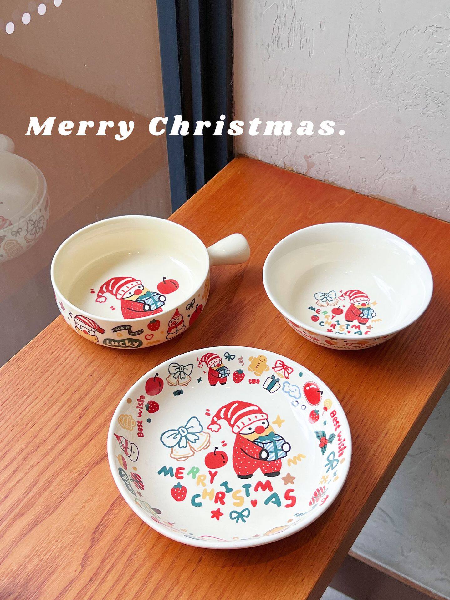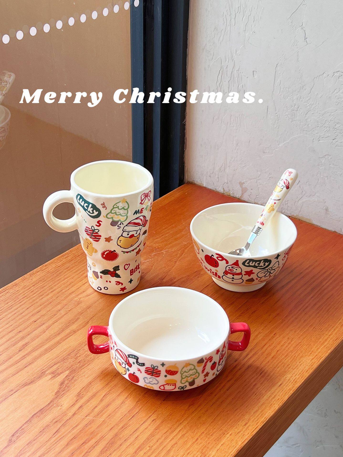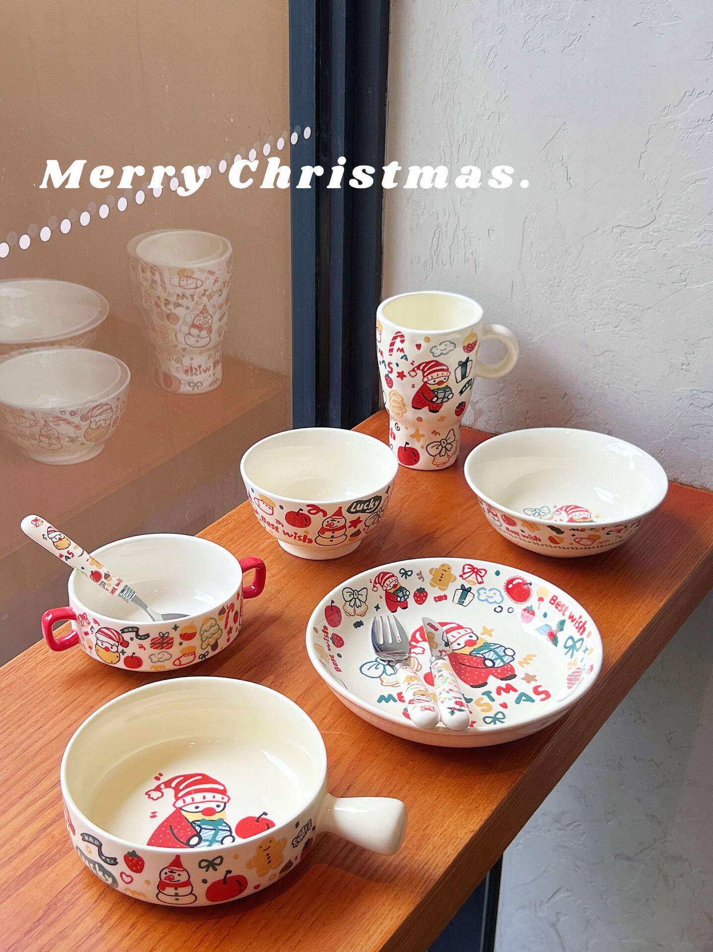 Christmas Gift Tableware High Beauty Value Ritual Sense Household One-person suit Ceramic Neat Bowl Rice Bowl Mug