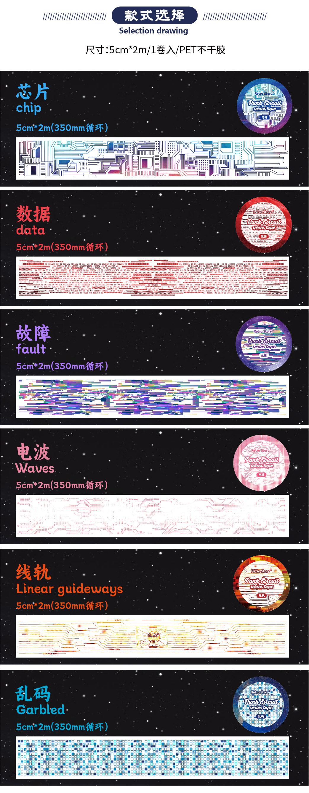 Retro Story PET Tape Punk Circuit Series Punk Theme Hand Account Material Cycle Post 6