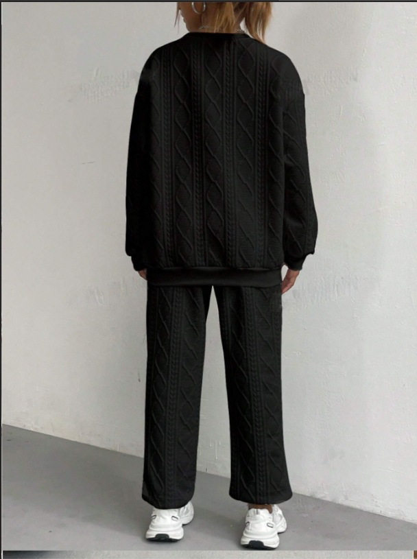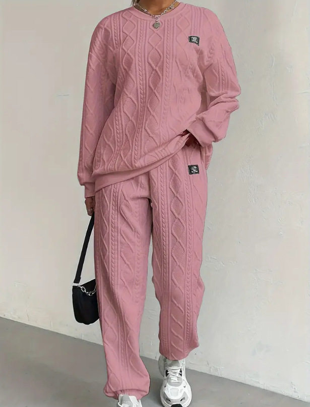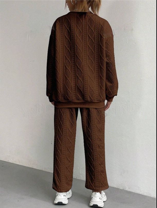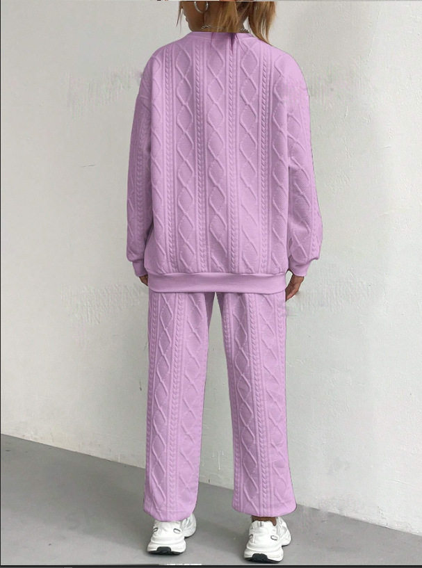Amazon 2024 autumn and winter new European and American cross-border women's jacquard long sleeve casual crew neck sweater pants suit