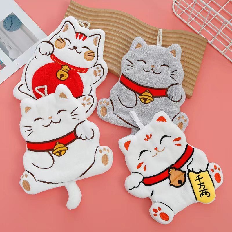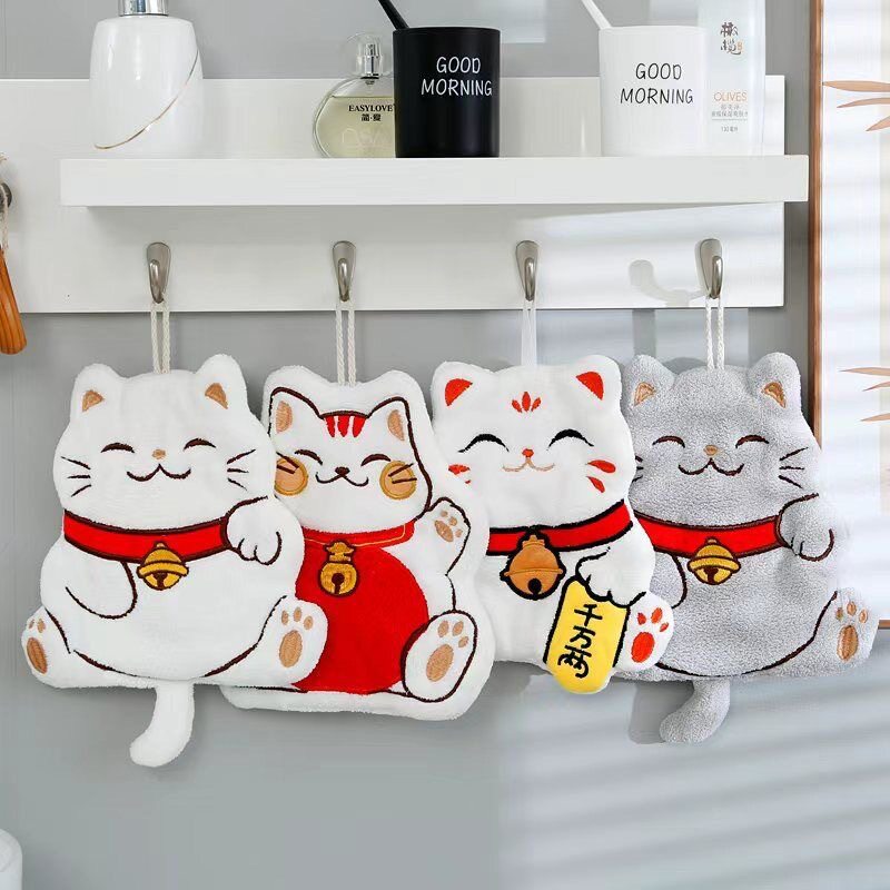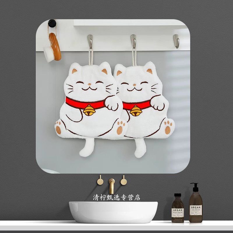 Lucid Cat Wall-mounted Convenient Hand Towel Cute Children's Toilet and Kitchen Dual-use Cartoon Towel for Hair