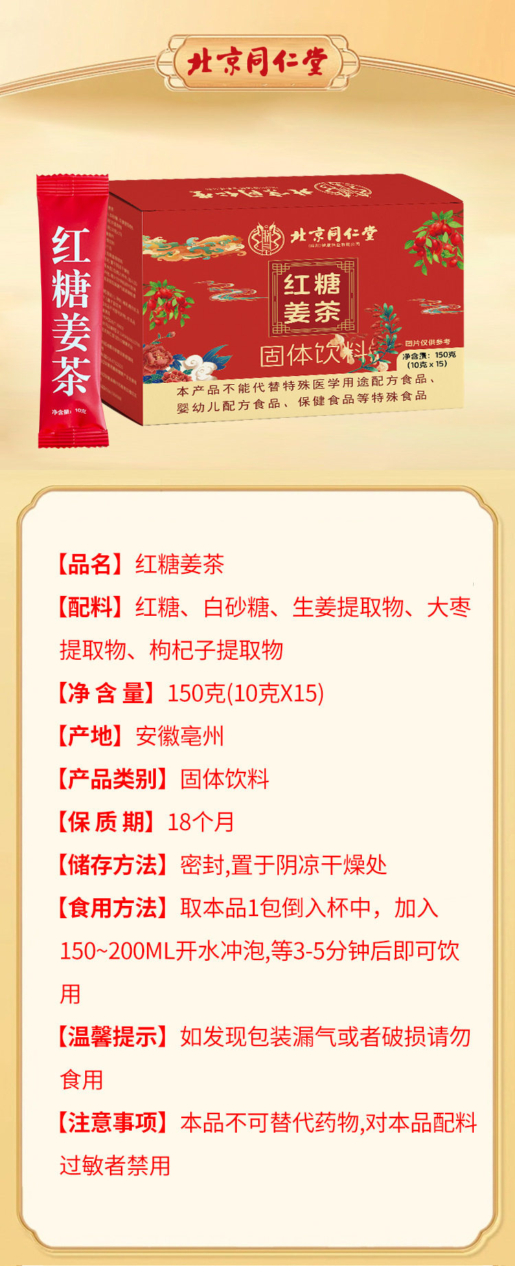 Beijing Tongrentang (Sichuan) Health Pharmaceutical Brown Sugar Ginger Tea 15 Sticks/Box for Women during Menstruation, Black Sugar Brown Sugar Ginger