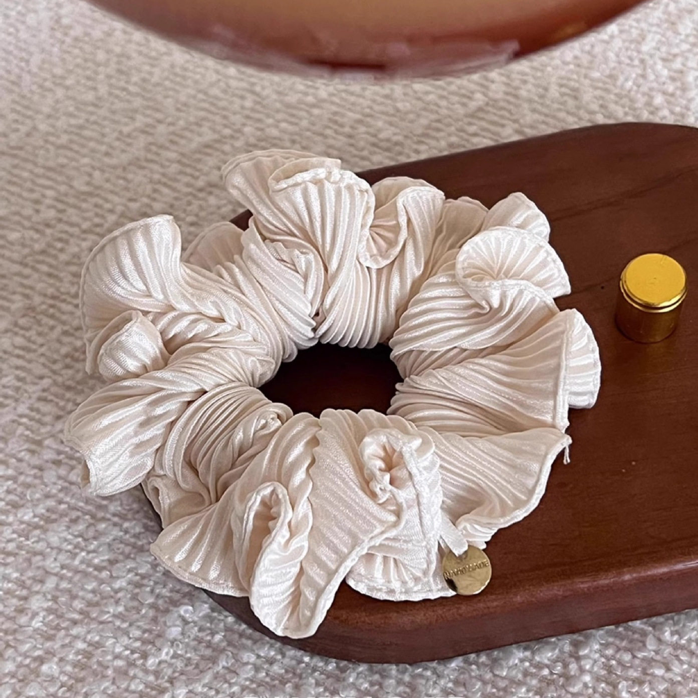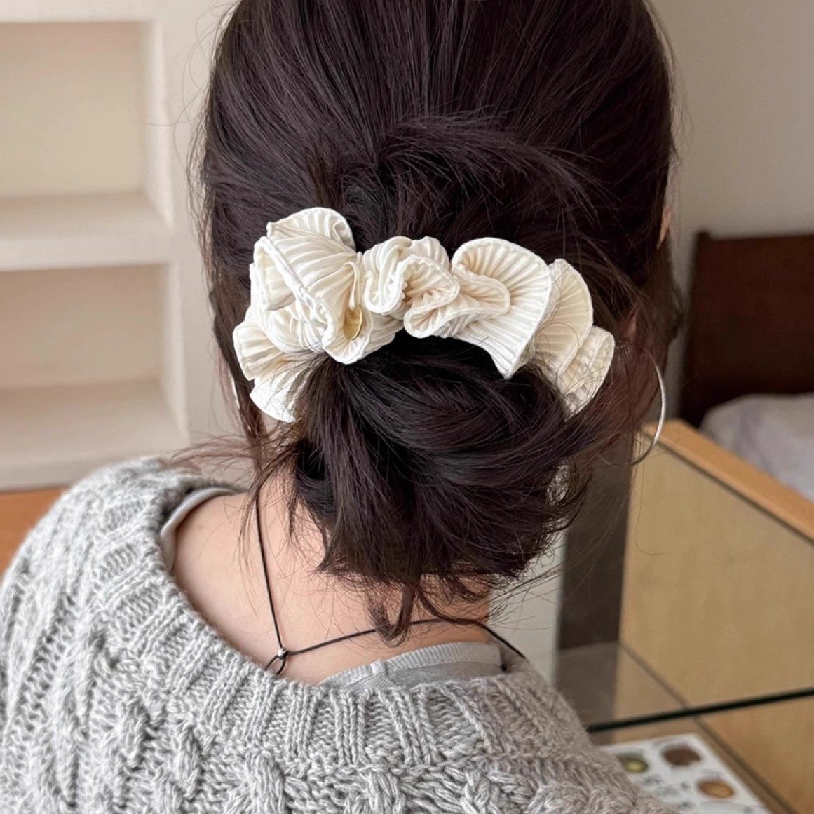 Gentle Pleated Head Flower Large Intestine Hair Ring Internet Celebrant 2024 New Style Ball Head Striped Hair Ring Hair Rope Tie Hair Rope