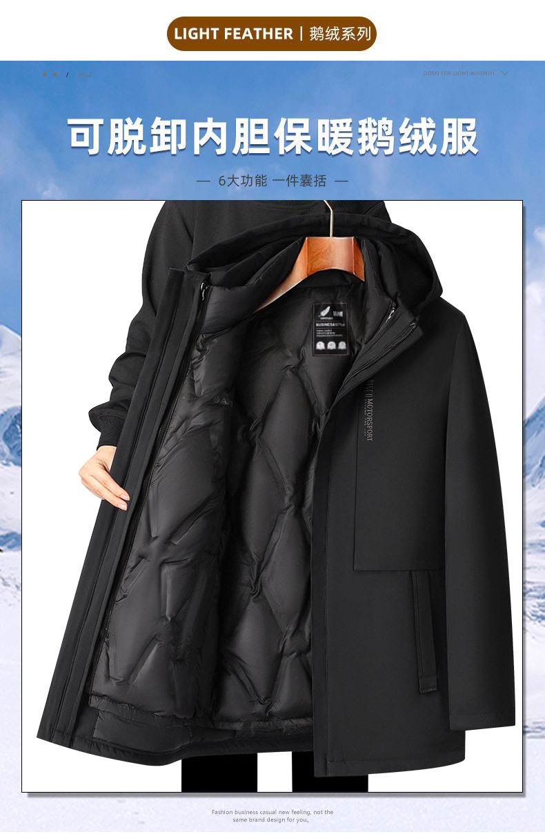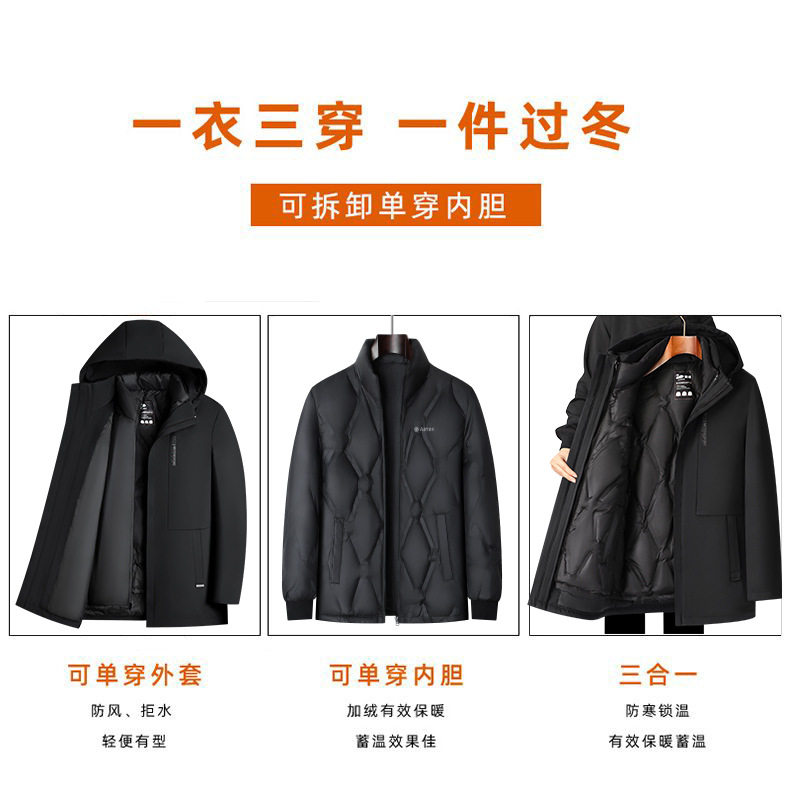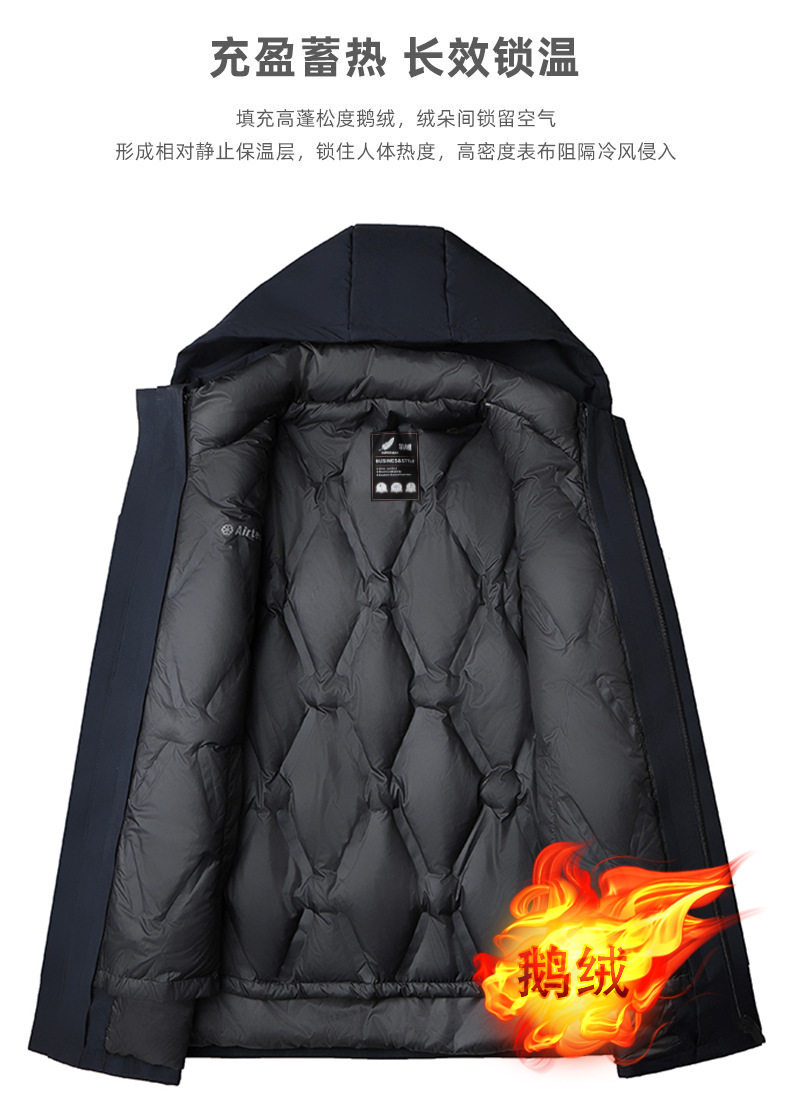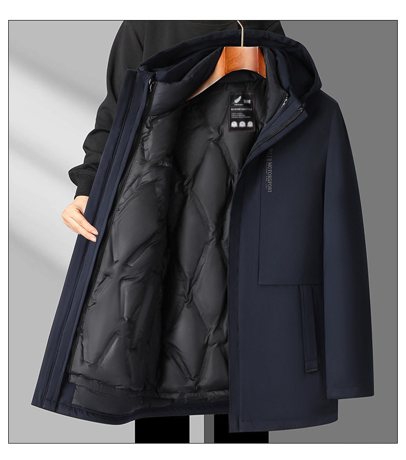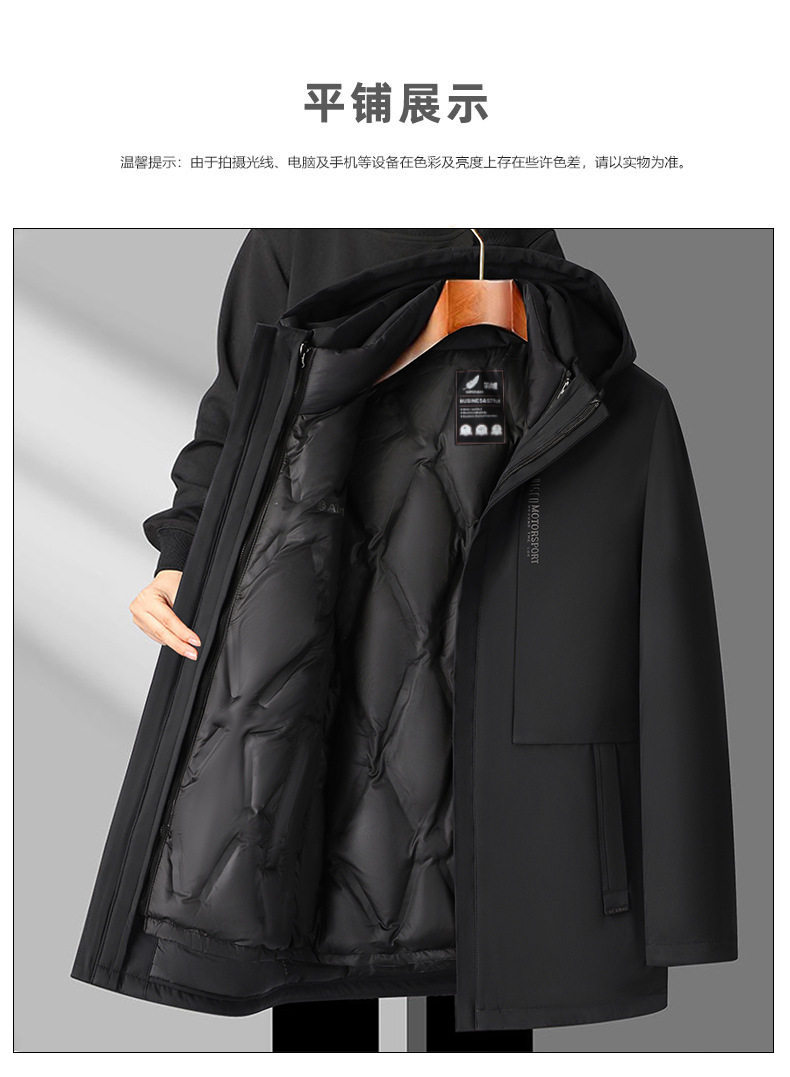 Winter down Jacket for Men, Mid-Length, Hooded, Warm and Thickened Coat for Winter, Suitable for Middle-Aged and Elderly Men, Goose Down, Cold-Proof