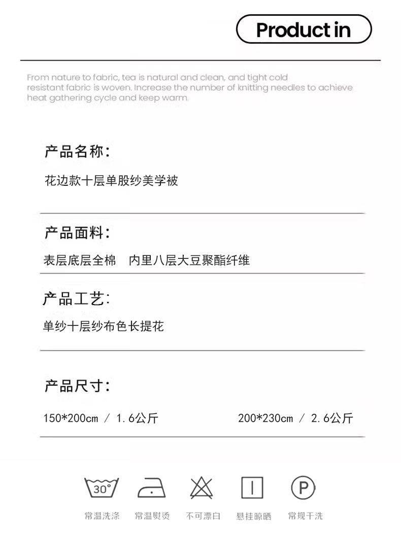 French Ten-layer Single-strand Yarn Aesthetic Lace Light Luxury Pure Cotton Cotton Gauze Spring and Autumn Single Quilt Double Winter Quilt